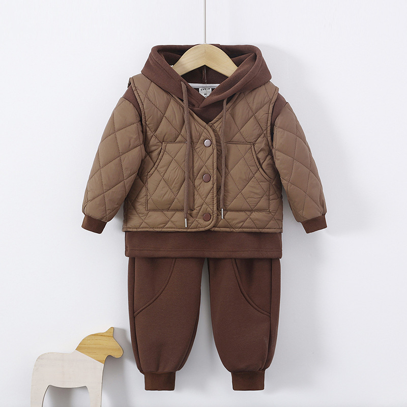 男童加绒套装洋气新款2025冬装宝宝加厚马甲冬季夹棉儿童三件套潮