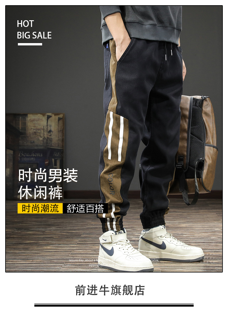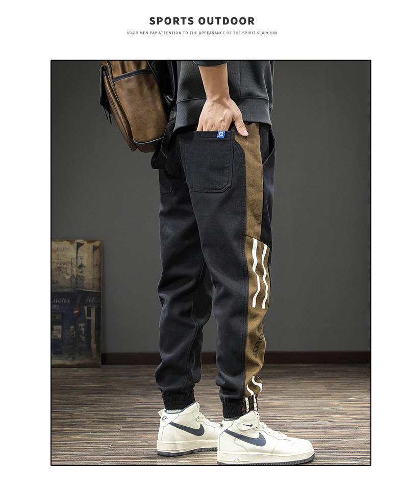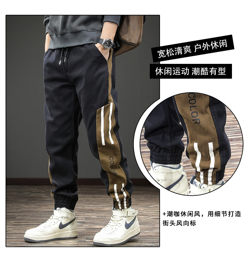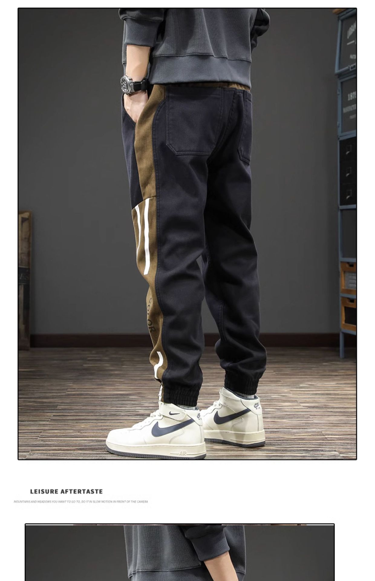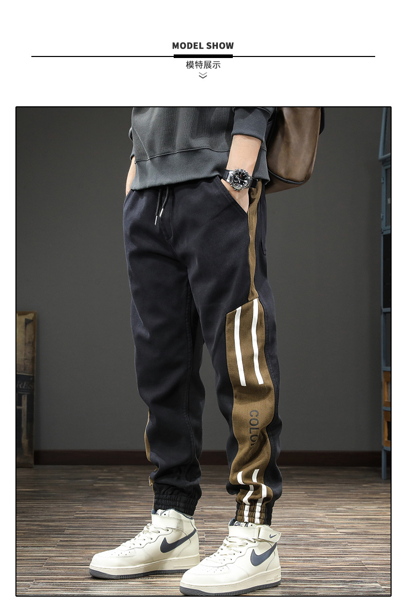 2024 년 조수 브랜드 봄과 가을 툴링 발가락 캐주얼 바지 남성 스트라이프 플러스 사이즈 가을 새로운 러피 잘 생긴 할란 스포츠 바지스토어 가기