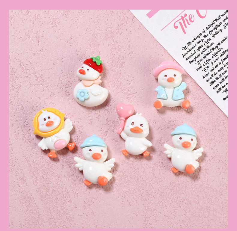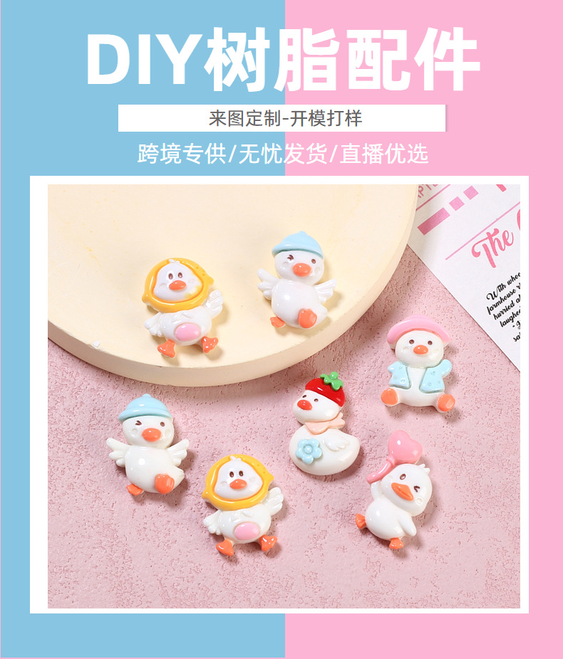수지 액세서리 도매 크림 젤 헤어 클립 수제 diy 냉장고 스티커 장식 소재 만화 작은 흰색 오리 나들이