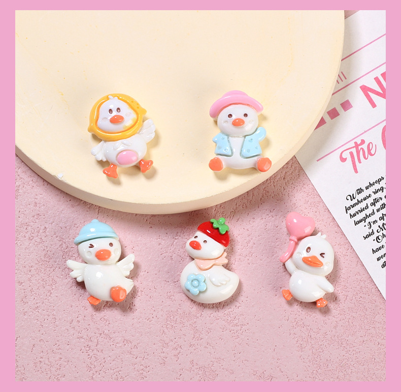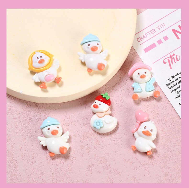 수지 액세서리 도매 크림 젤 헤어 클립 수제 diy 냉장고 스티커 장식 소재 만화 작은 흰색 오리 나들이스토어 가기