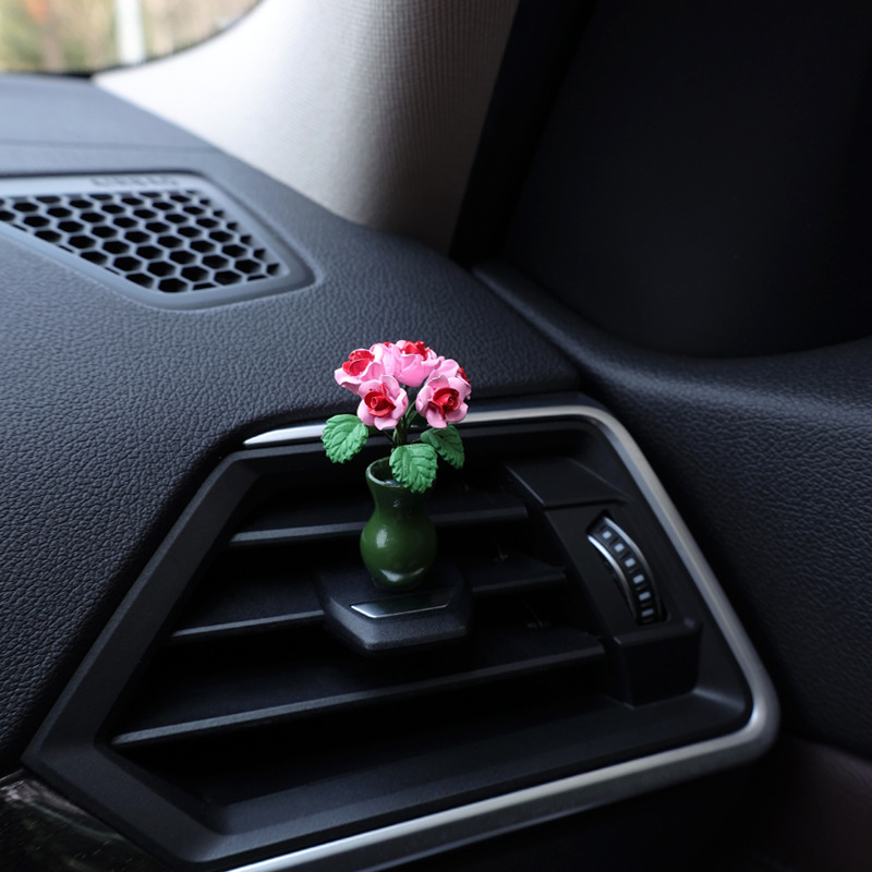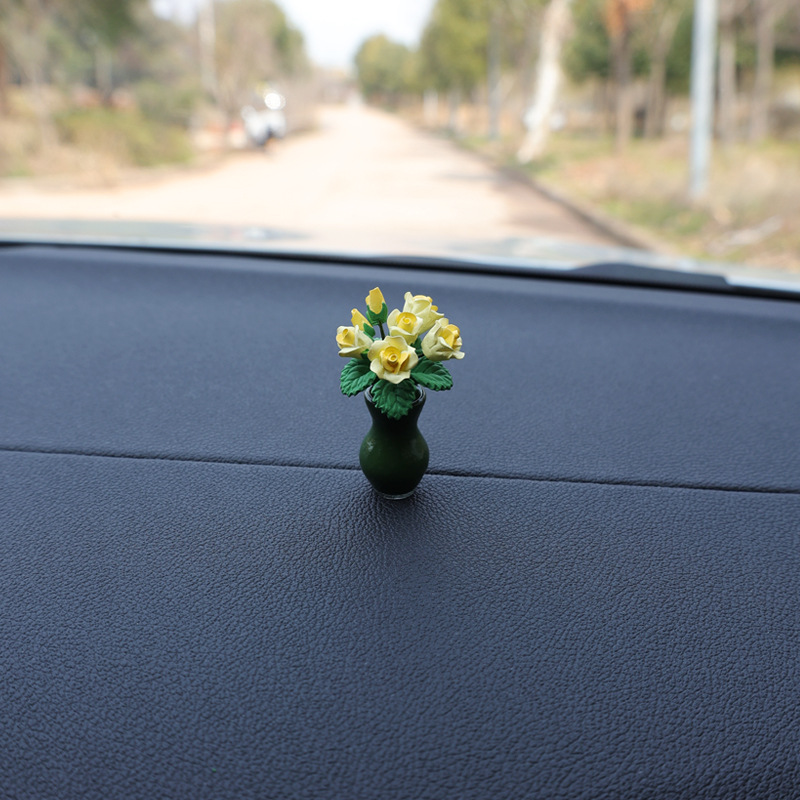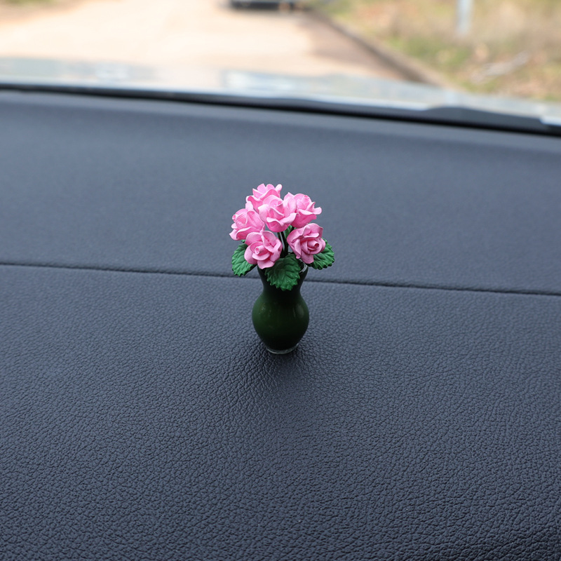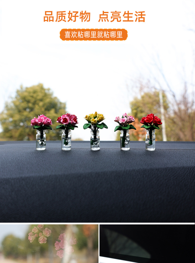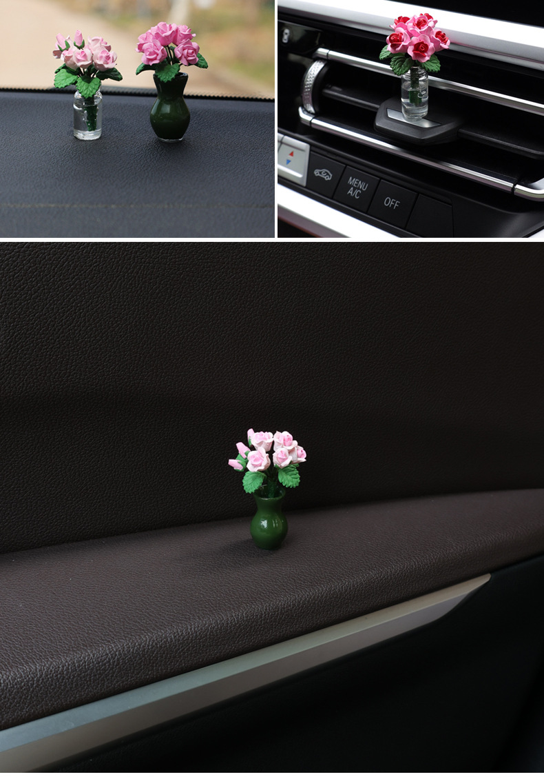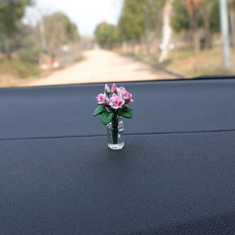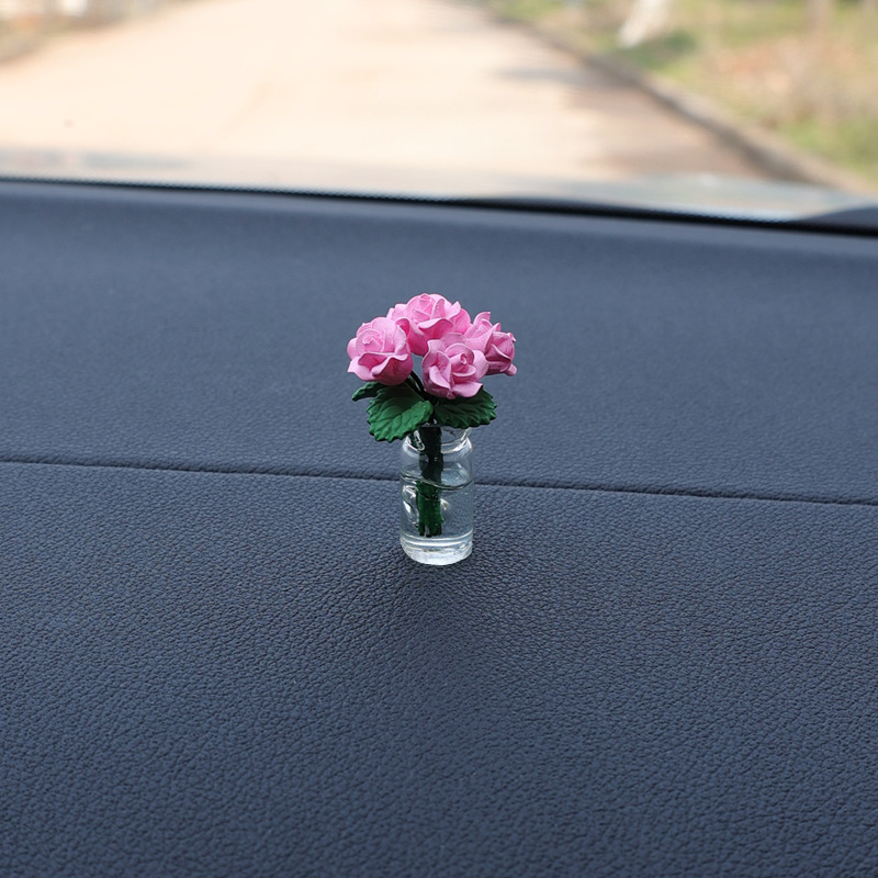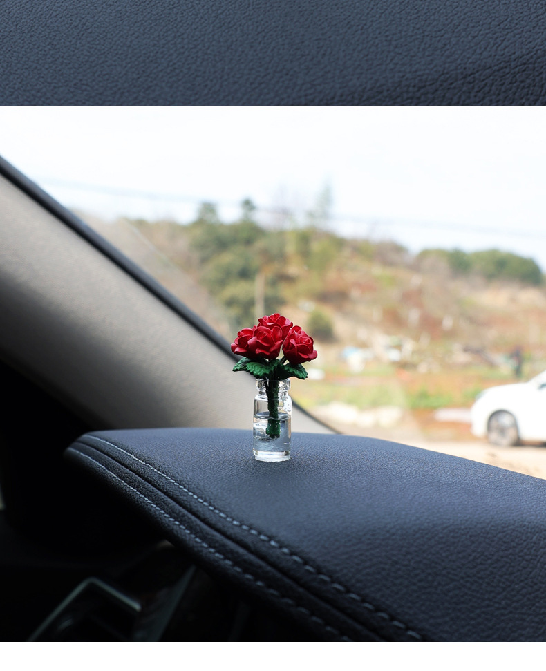 자동차 센터 콘솔 장식 장식 장식 장식 귀여운 자동차 미니 작은 꽃병 장미 꽃 여성 자동차 장식품