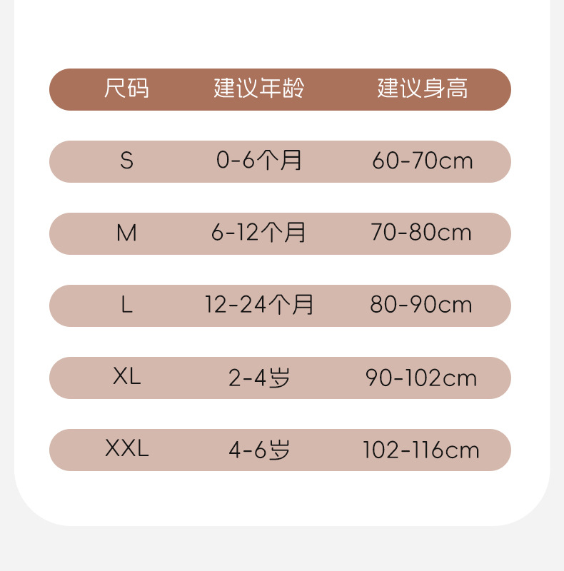• 사이즈 S-15(0-6개월에 적합)는 가랑이를 열 수 있습니다.