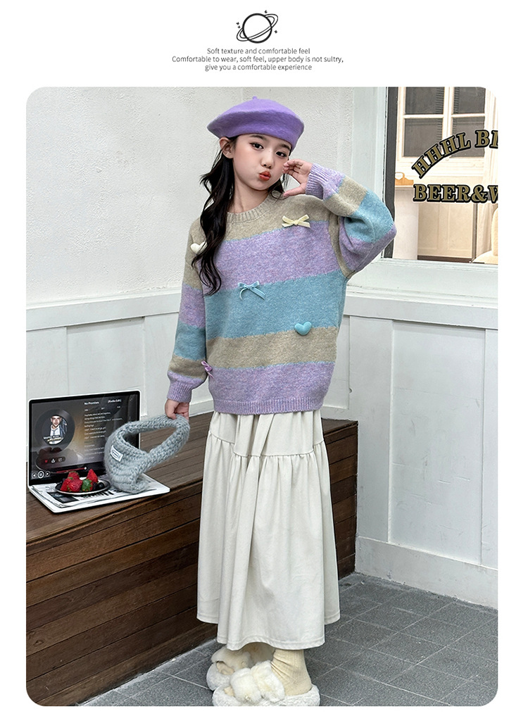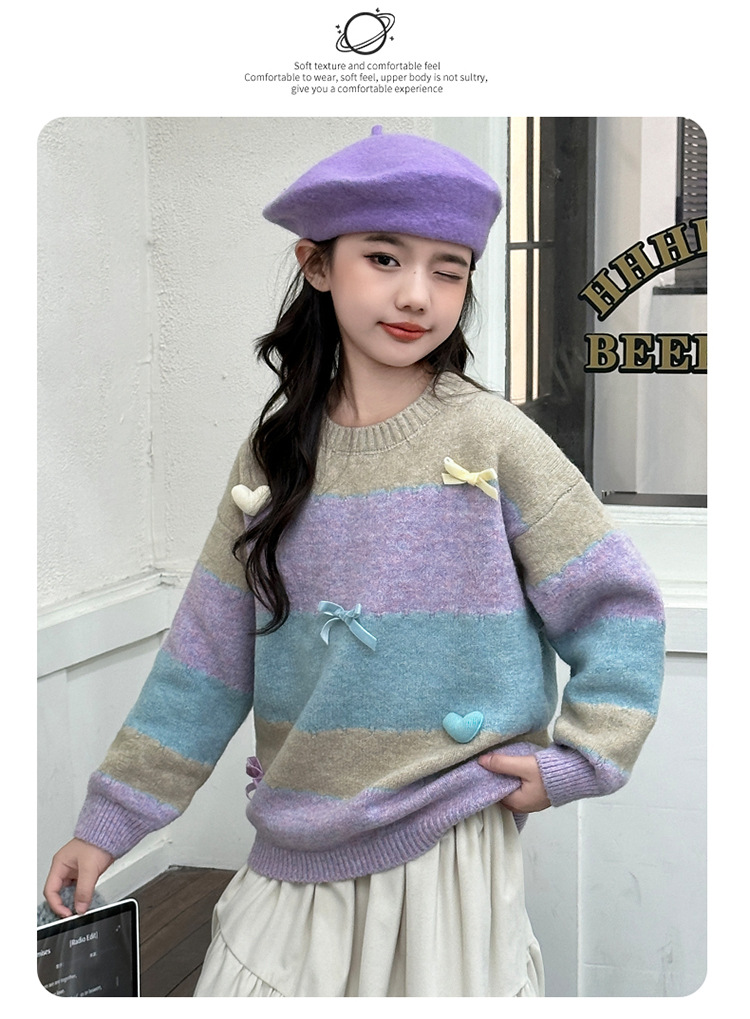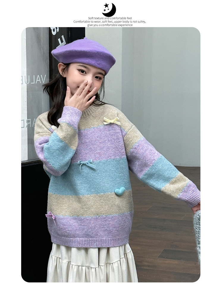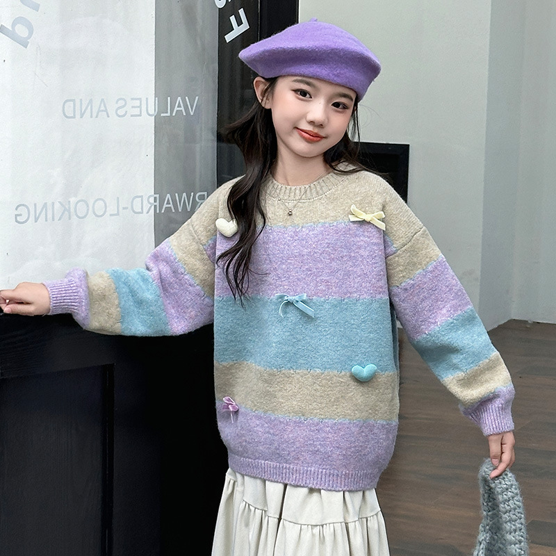 소녀들의 가을과 겨울 2024 대형 어린이와 소녀를위한 새로운 어린이 서양식 니트 스웨터 양모베이스 탑 트렌디스토어 가기