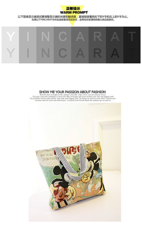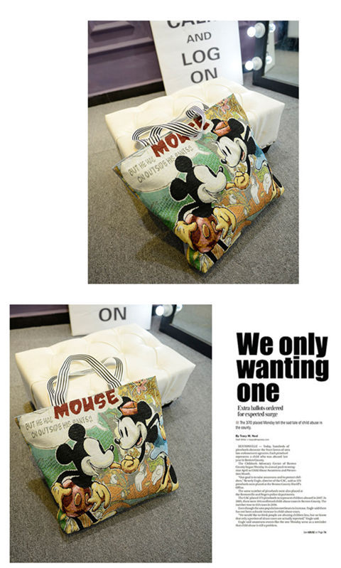 캔버스 가방 여성 패션 캐주얼 어깨 가방 작업 토트 가방 핸드백 캔버스 가방 만화 자수 가방스토어 가기