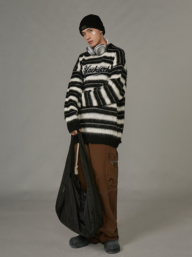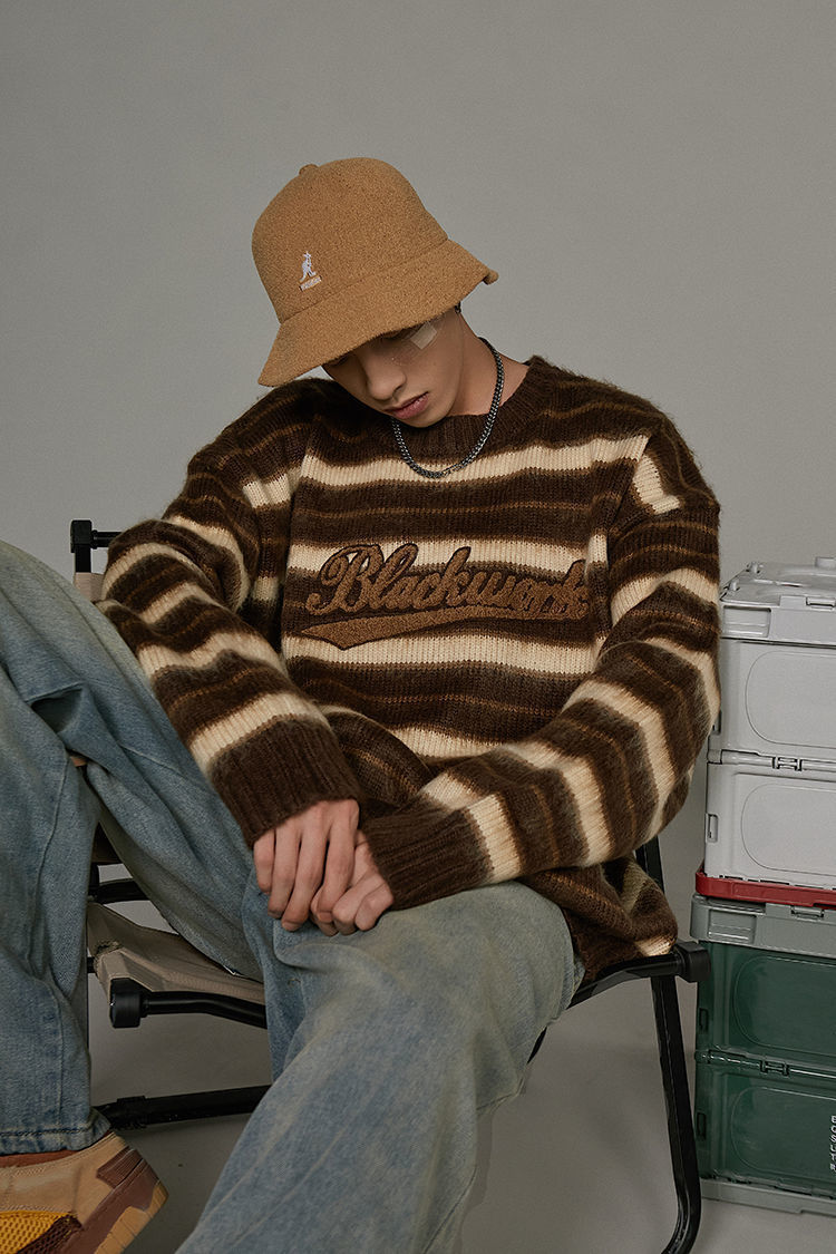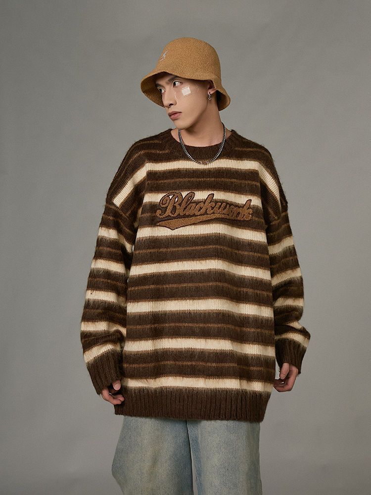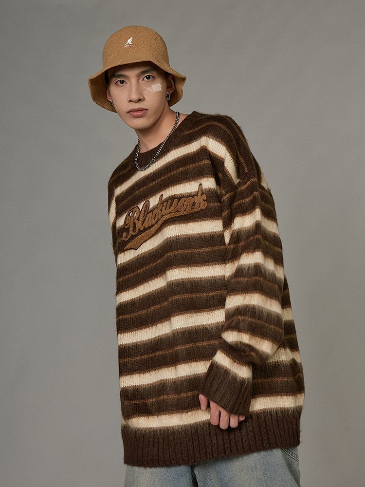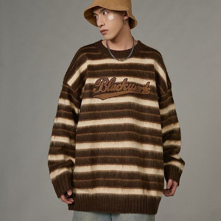 아메리칸 스타일 레트로 스트라이프 라운드 넥 루즈 스웨터 남성과 여성의 오버 사이즈 간단한 니트 셔츠 탑 커플의 세련된 재킷