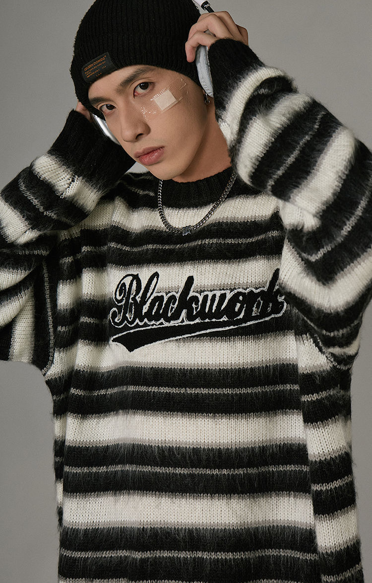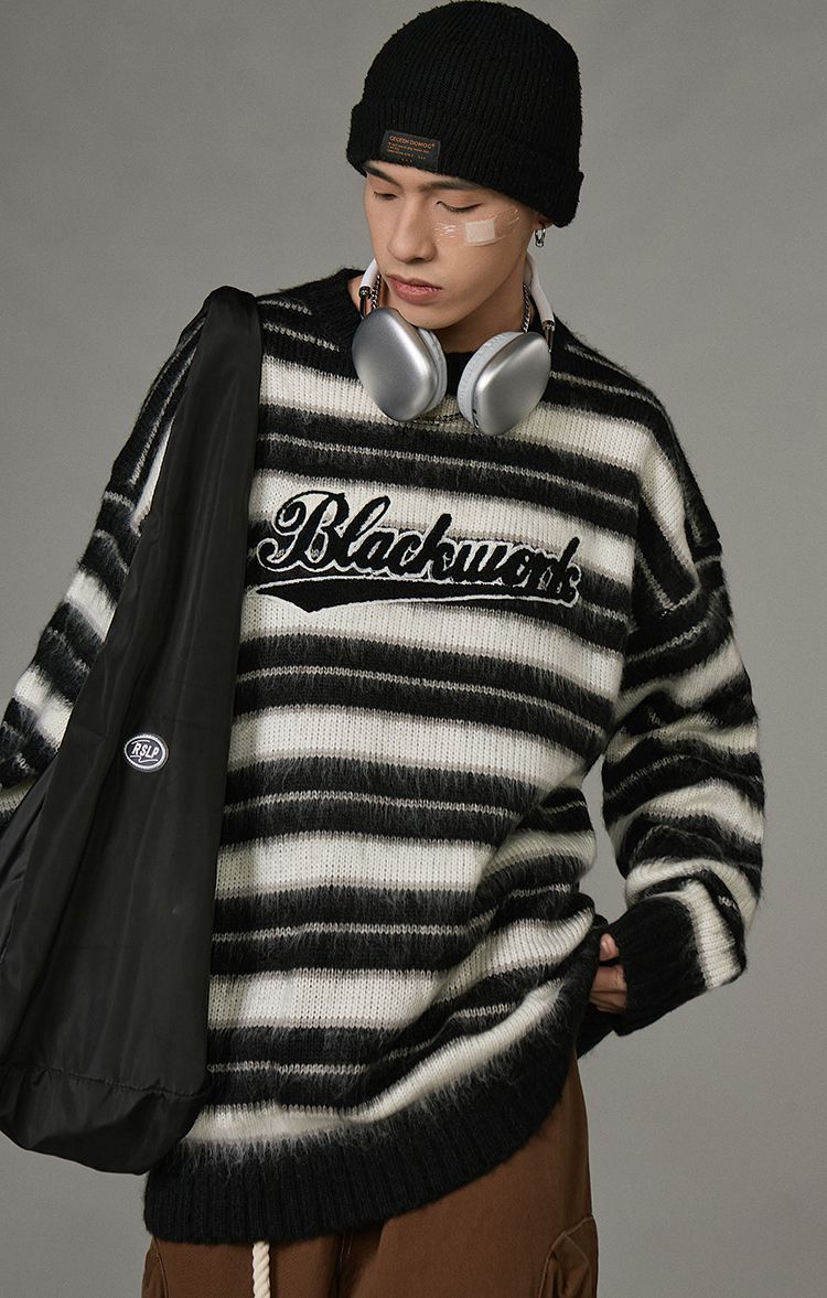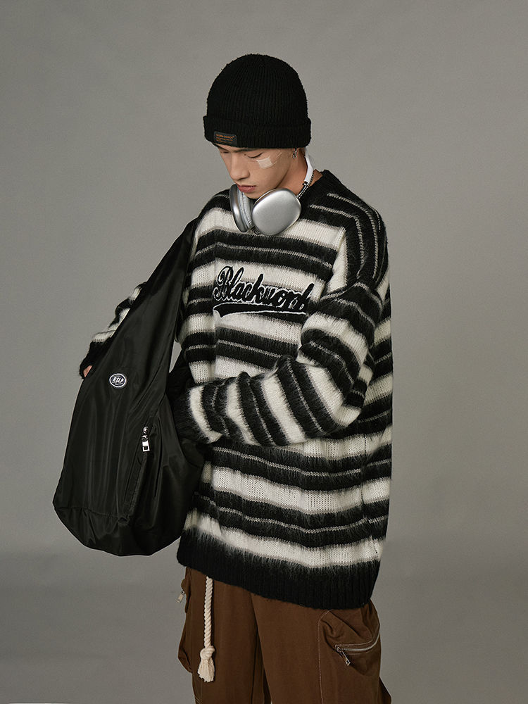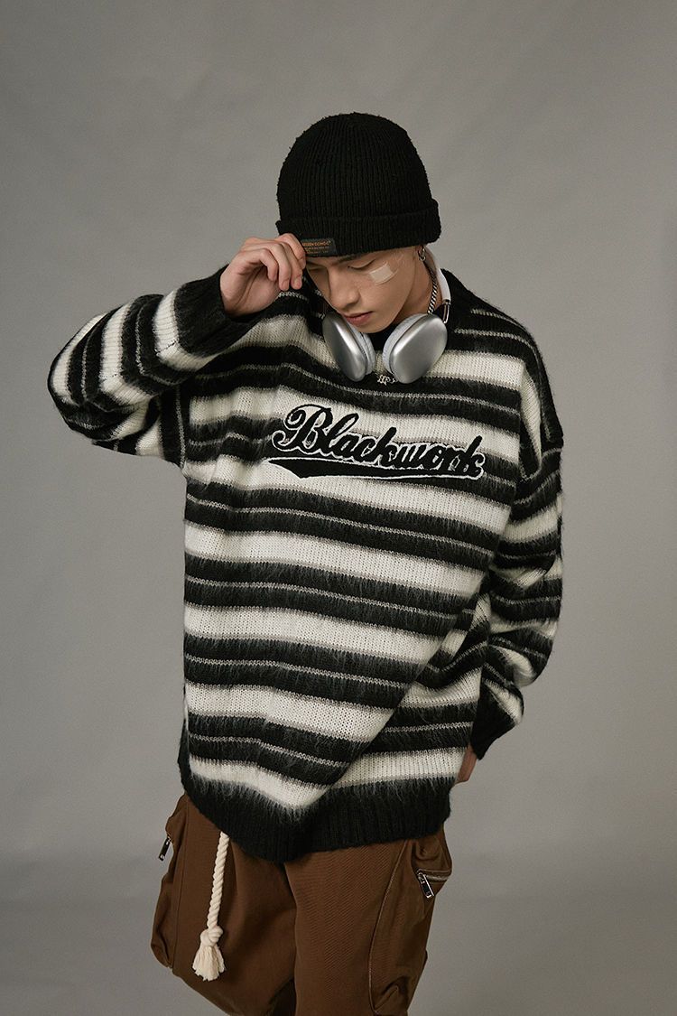 아메리칸 스타일 레트로 스트라이프 라운드 넥 루즈 스웨터 남성과 여성의 오버 사이즈 간단한 니트 셔츠 탑 커플의 세련된 재킷
