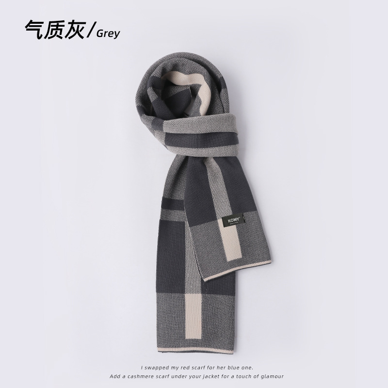 고급 캐시미어 스카프 남성용 가을 겨울 2025 신상 다용도 따뜻한 두꺼운 격자무늬 니트 방풍 스카프 롱 스타일스토어 가기