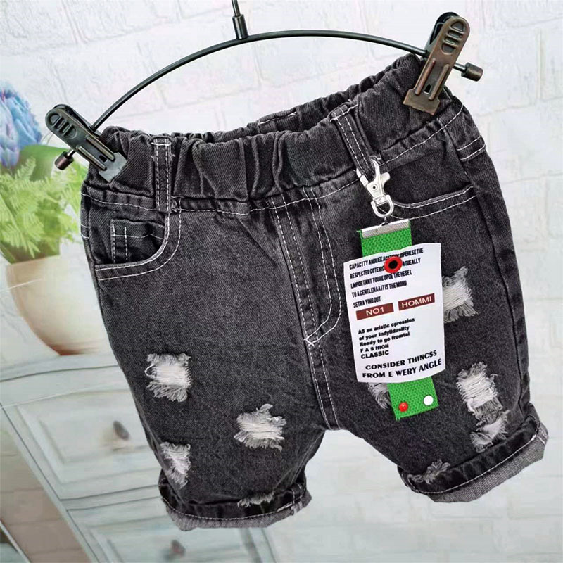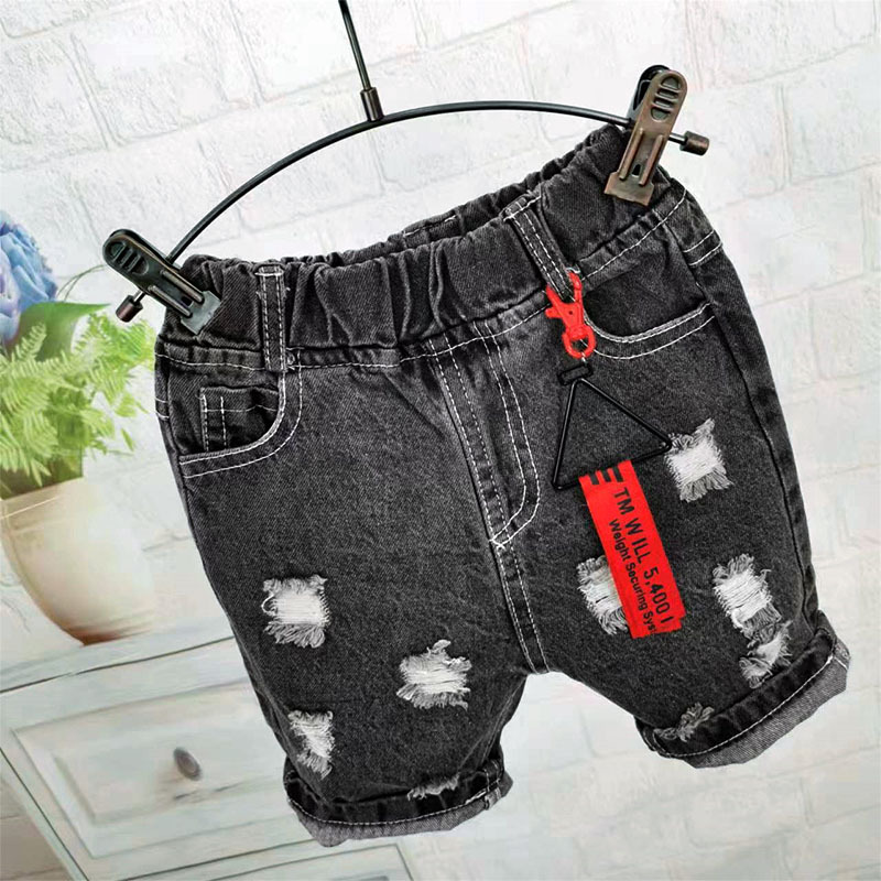 여름 반바지 2024 어린이 검은 데님 바지 소년 중년 및 중년 어린이 구멍 바지 유행 서양식 한국 스타일스토어 가기