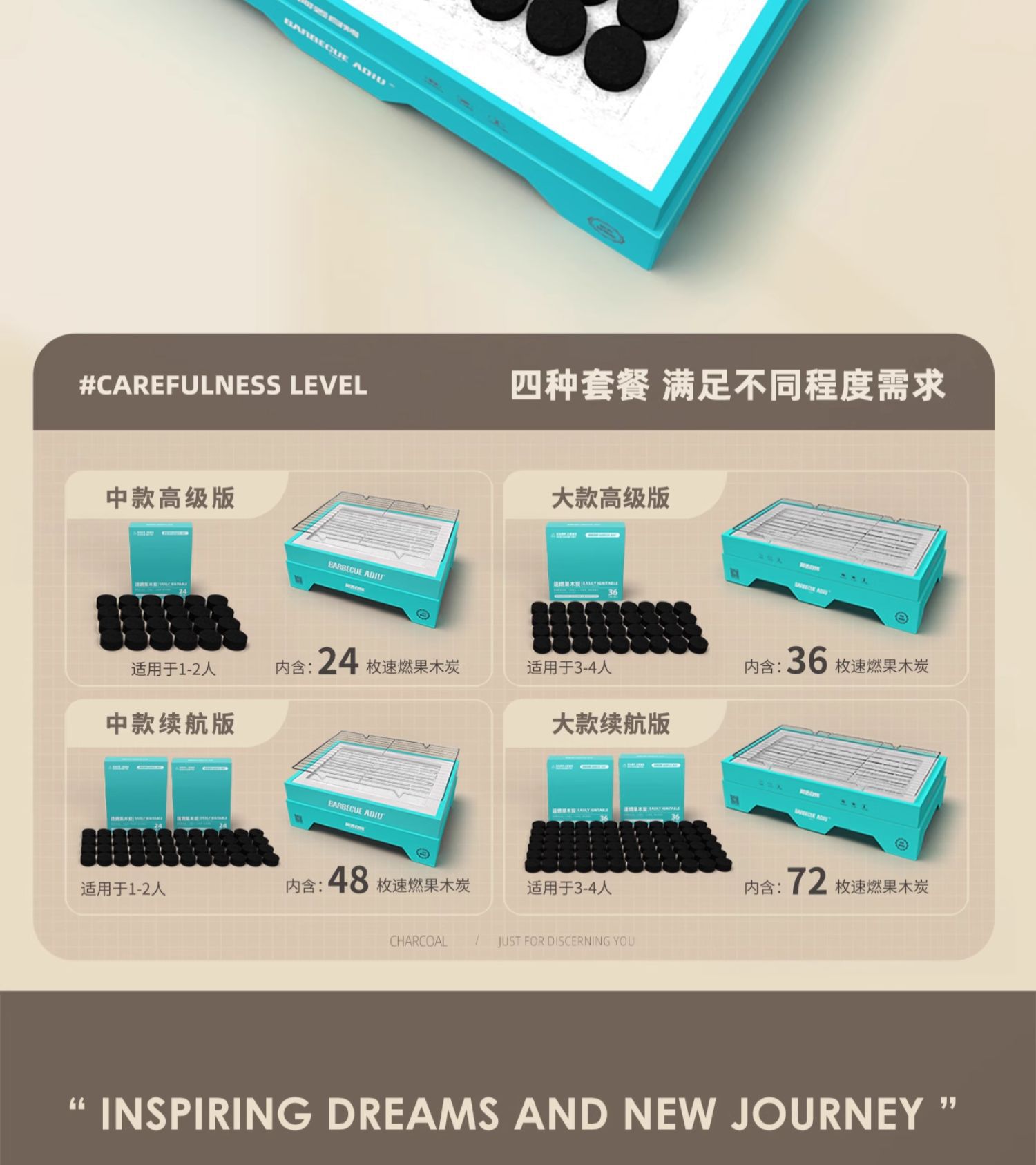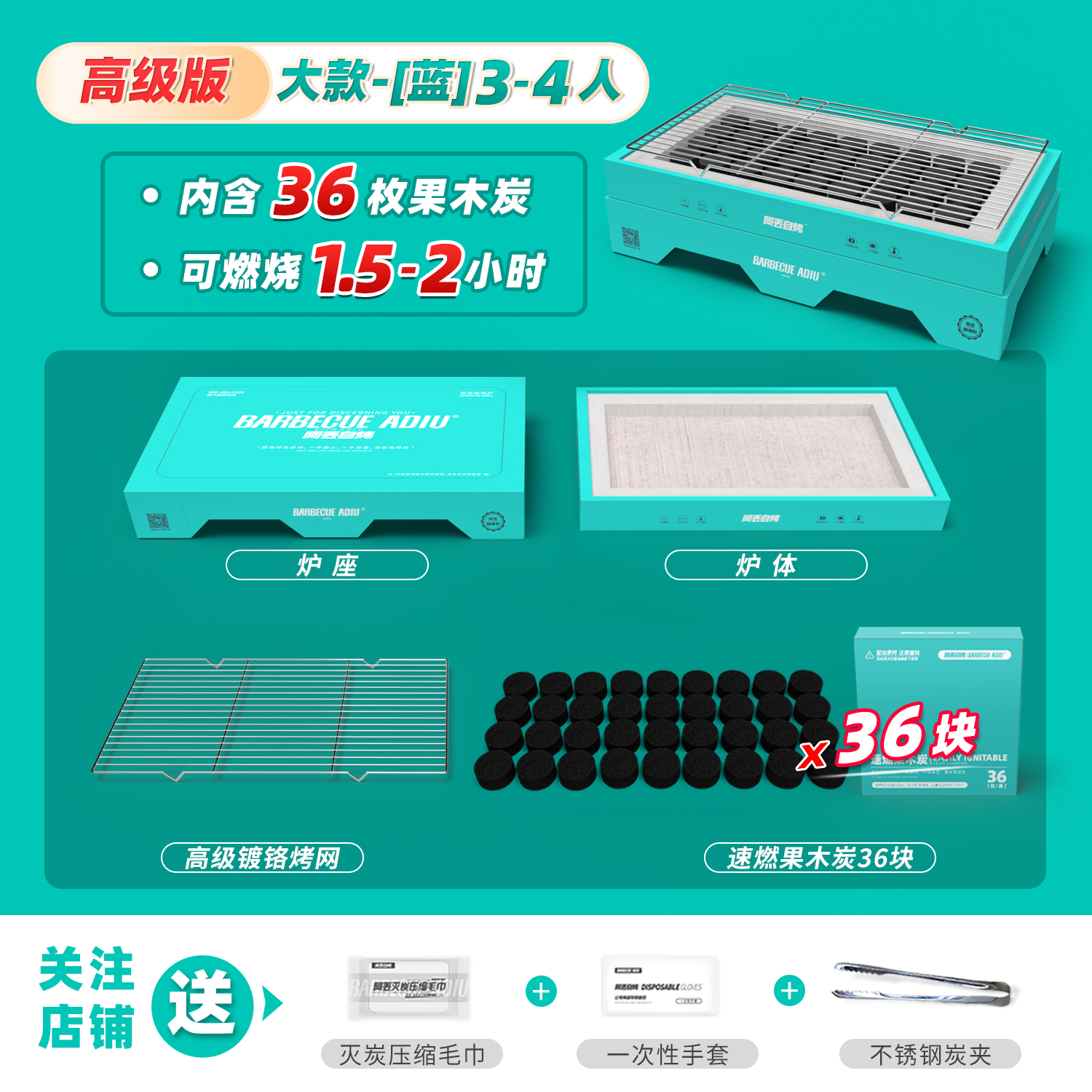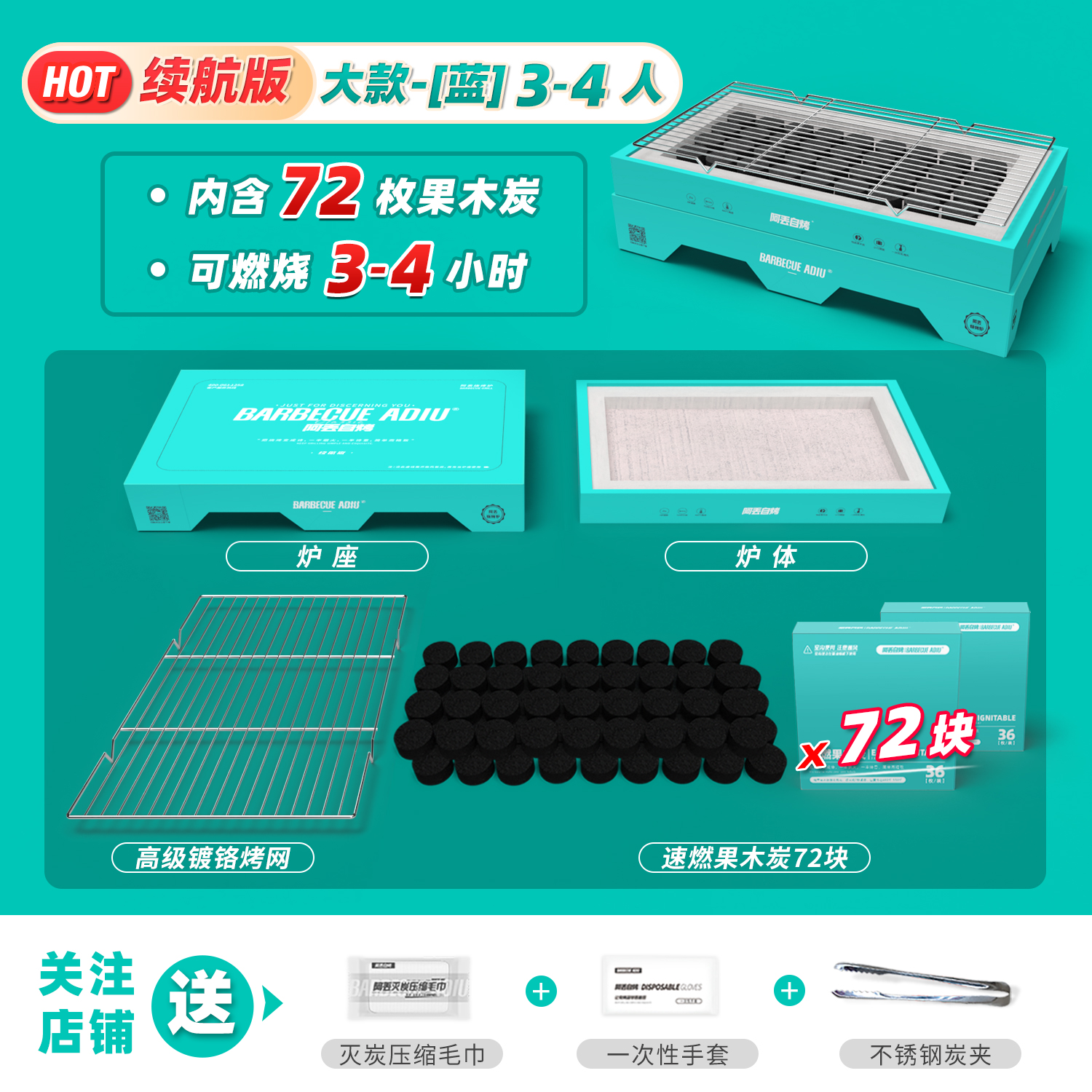 • 3-4인용 [대형모델-블루] 배터리 수명 버전(3~4시간 굽는 숯 포함)