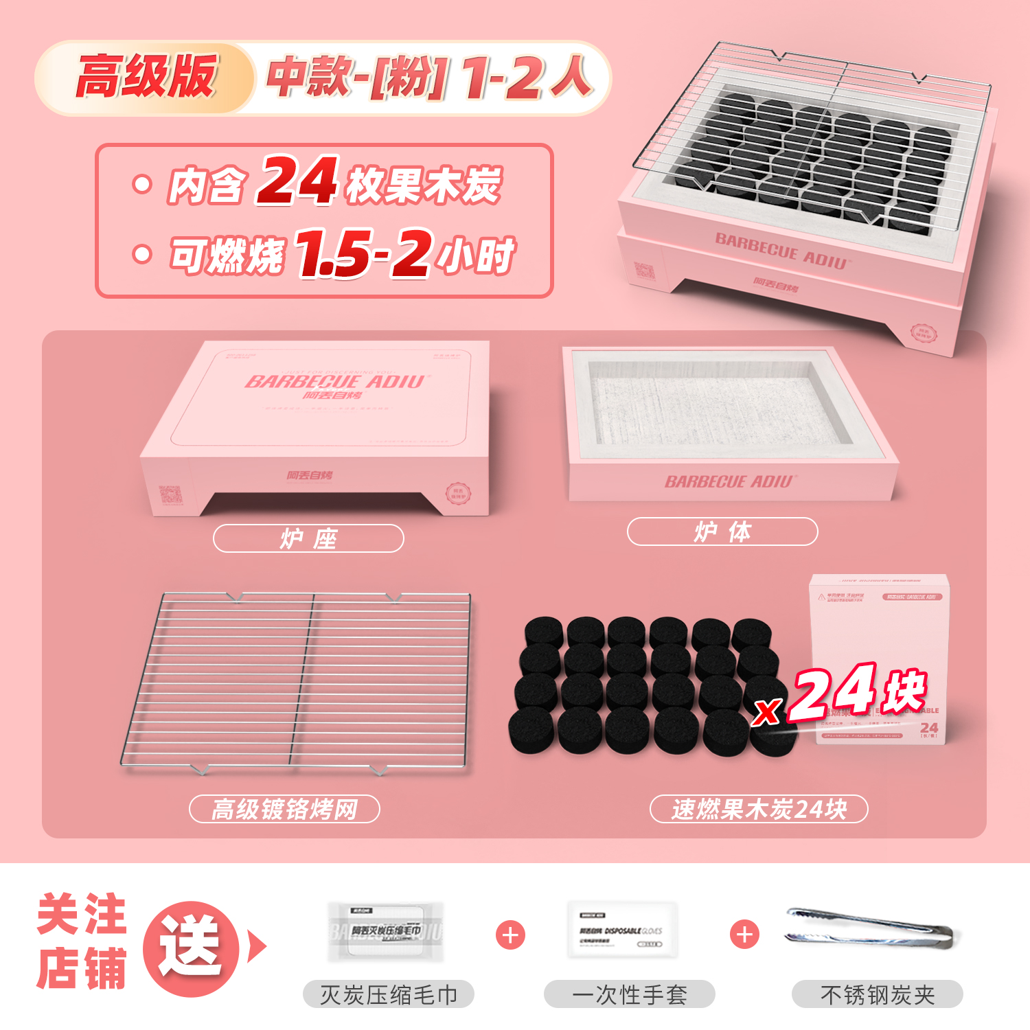 • 1~2인용 [중형-핑크] 배터리 수명 버전 (숯 포함, 3~4시간 굽기 가능)