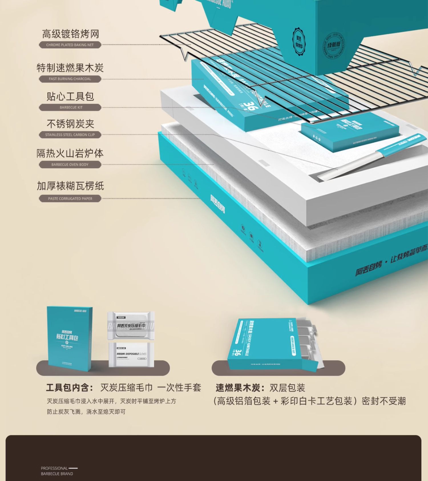 • 1~2인용 [중형-블루] 배터리 수명 버전(숯 포함, 3~4시간 굽기 가능)