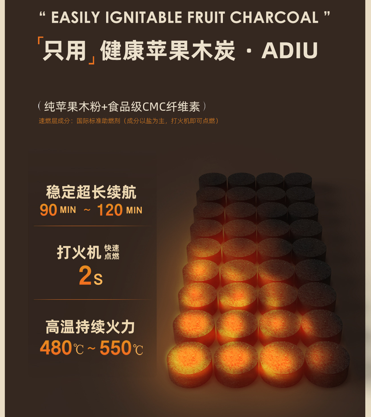 • 5~7인용 신제품 [CITY-RED]로 업그레이드 및 더 깊은 화력(70개 숯 함유)