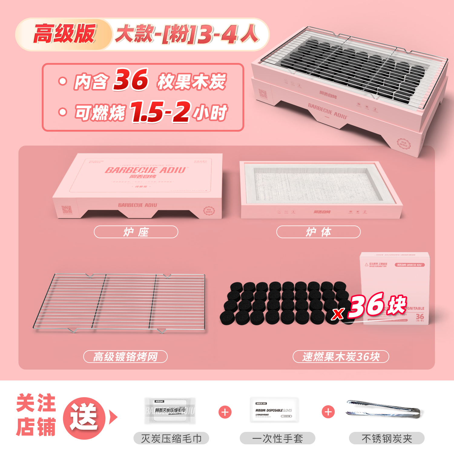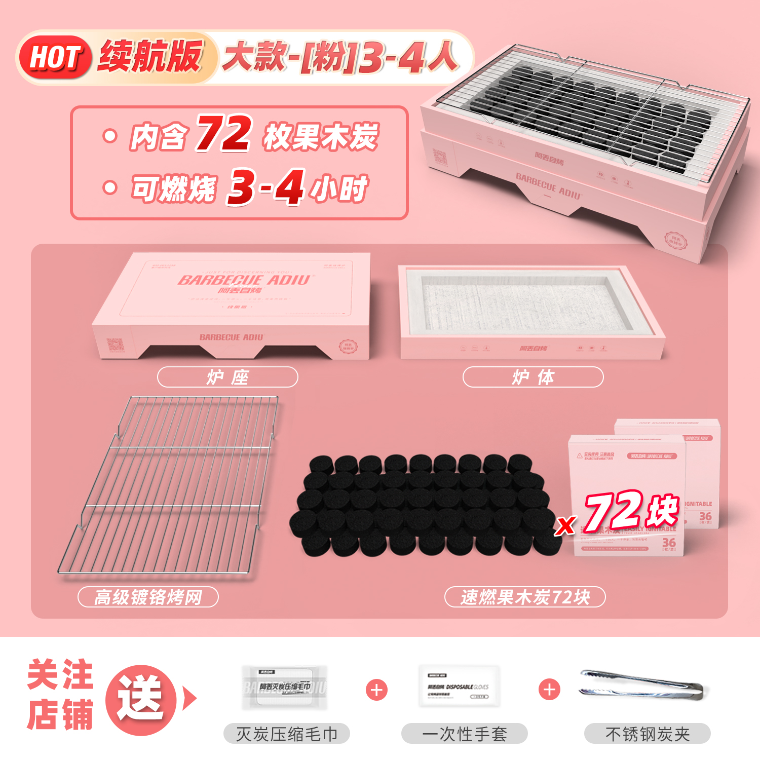 • 3~4인용 [대형-핑크] 배터리 수명 버전(3~4시간 굽는 숯 포함)