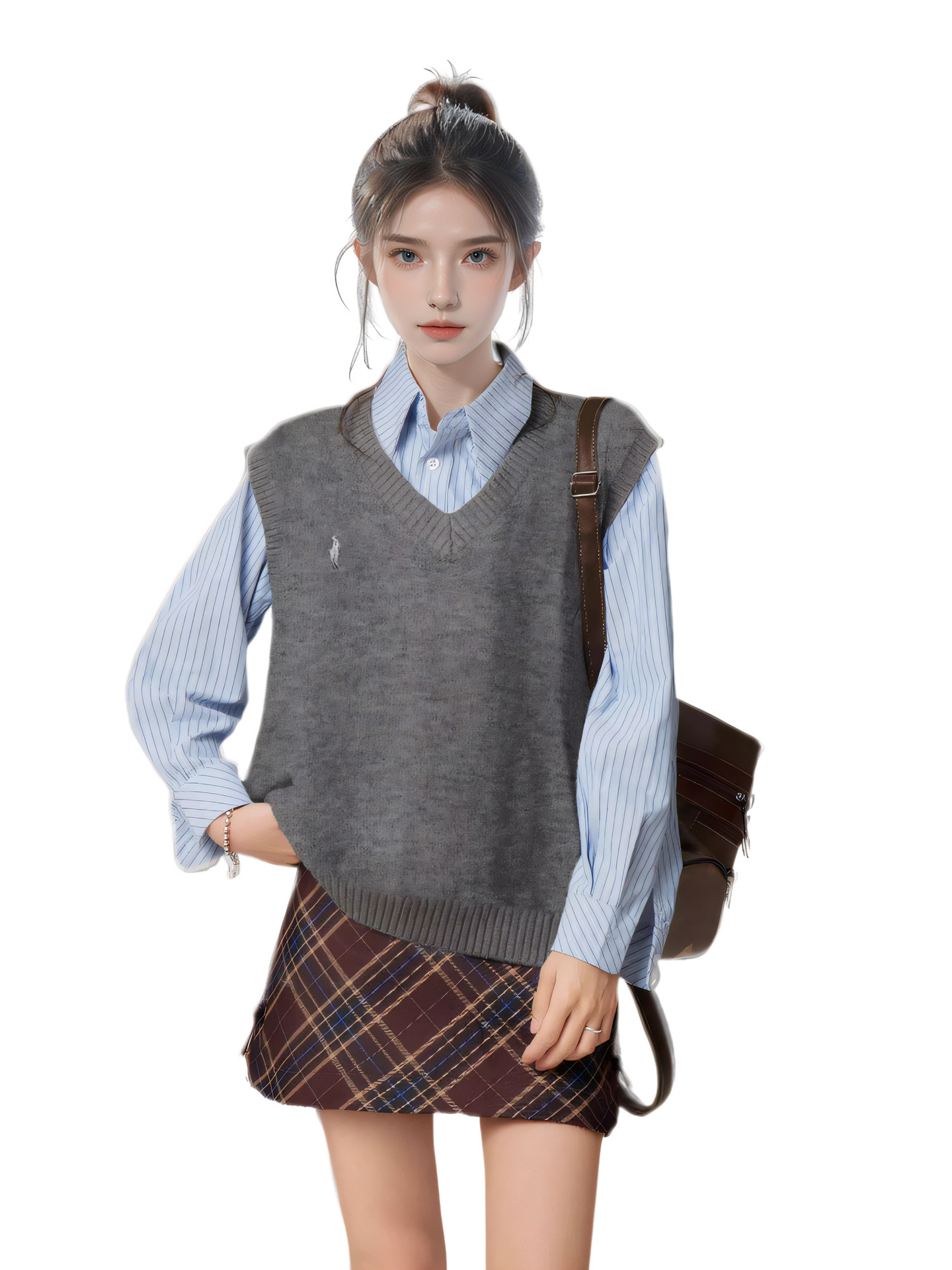 티베트 블루 V-넥 니트 조끼 여성 봄 가을 가을 겨울 2024 새로운 도착 스택 셔츠 스웨터 민소매 탑