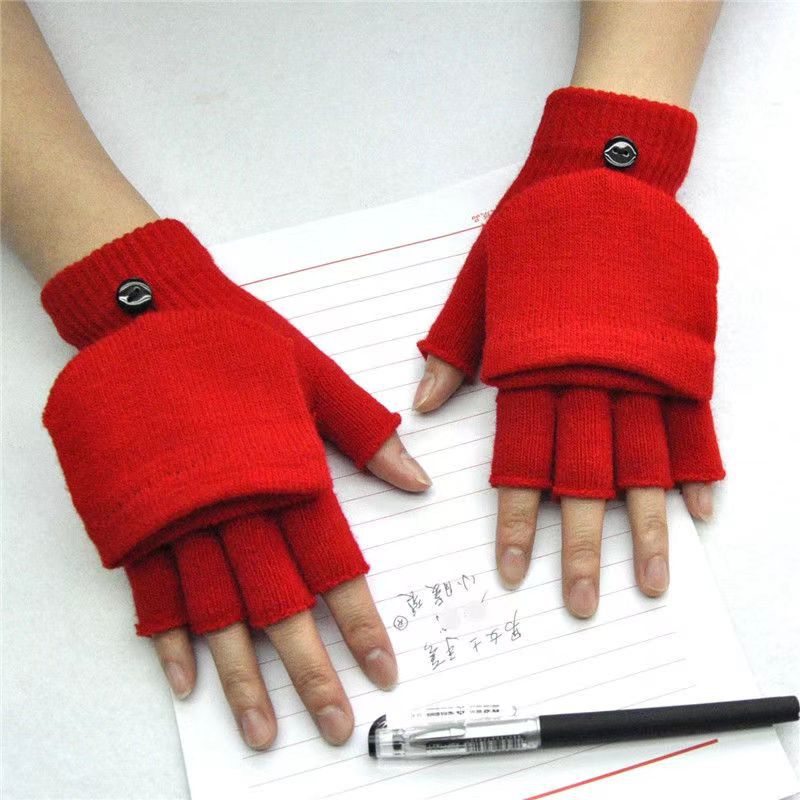 학생들이 글쓰기를 할 수 있는 성인용 겨울 방한 및 따뜻한 플립탑 반손가락 장갑 미끄럼 방지 반손가락 니트 모직 장갑