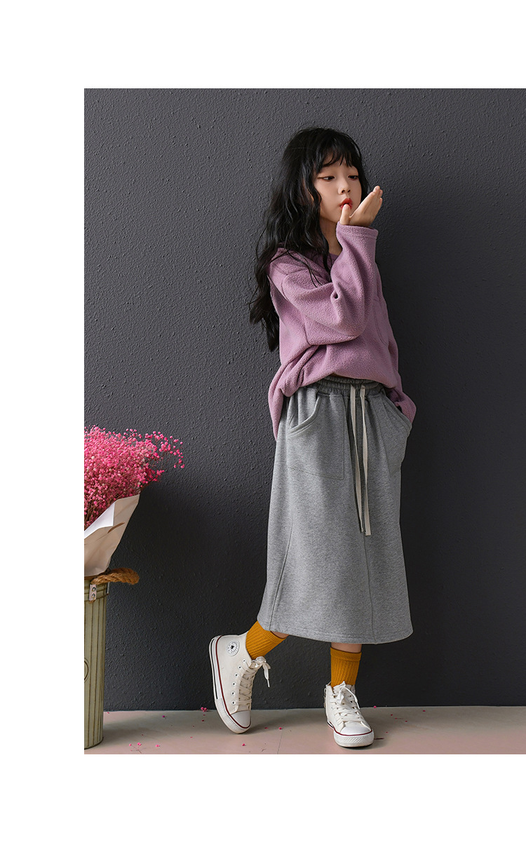소녀 한국 스타일 캐주얼 스커트 세트 느슨한 단순 양털 땀 올매치 따뜻하고 캐주얼