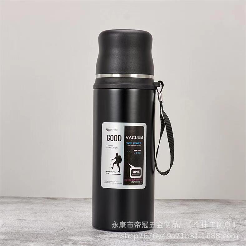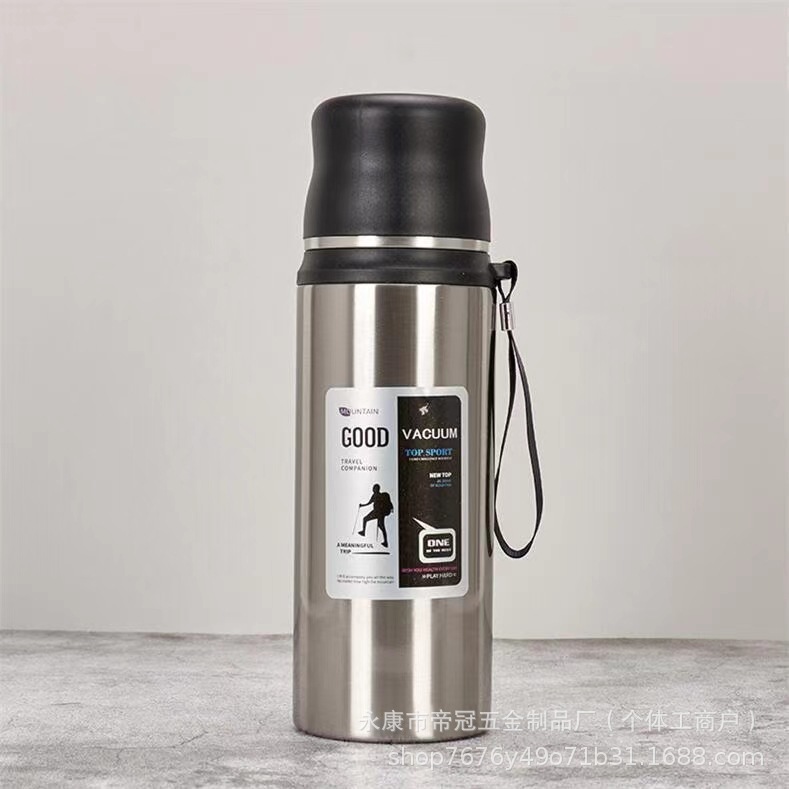 새로운 스테인레스 스틸 등산 냄비 프레스 워터 컵 더블 커버 자동차 스포츠 워터 컵 야외 휴대용 절연 주전자