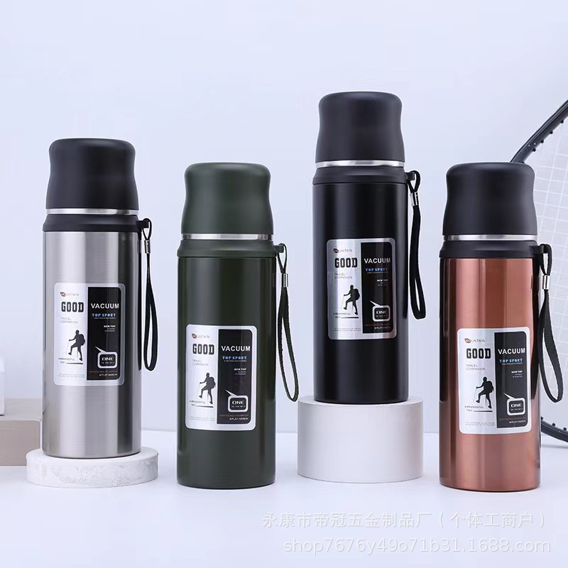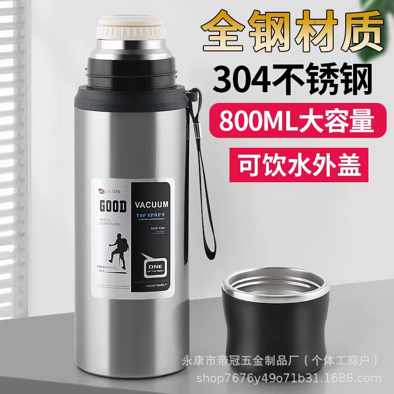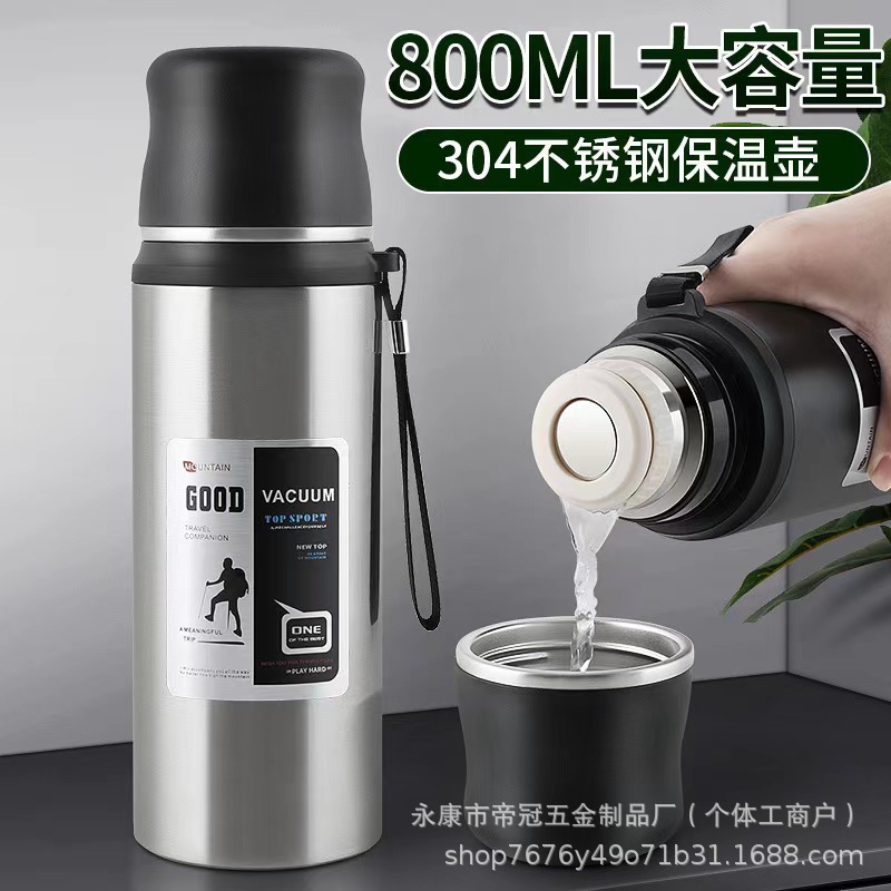 새로운 스테인레스 스틸 등산 냄비 프레스 워터 컵 더블 커버 자동차 스포츠 워터 컵 야외 휴대용 절연 주전자스토어 가기