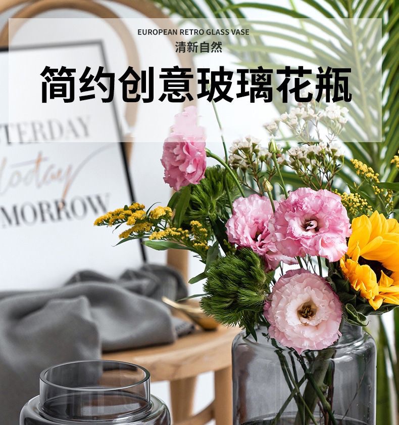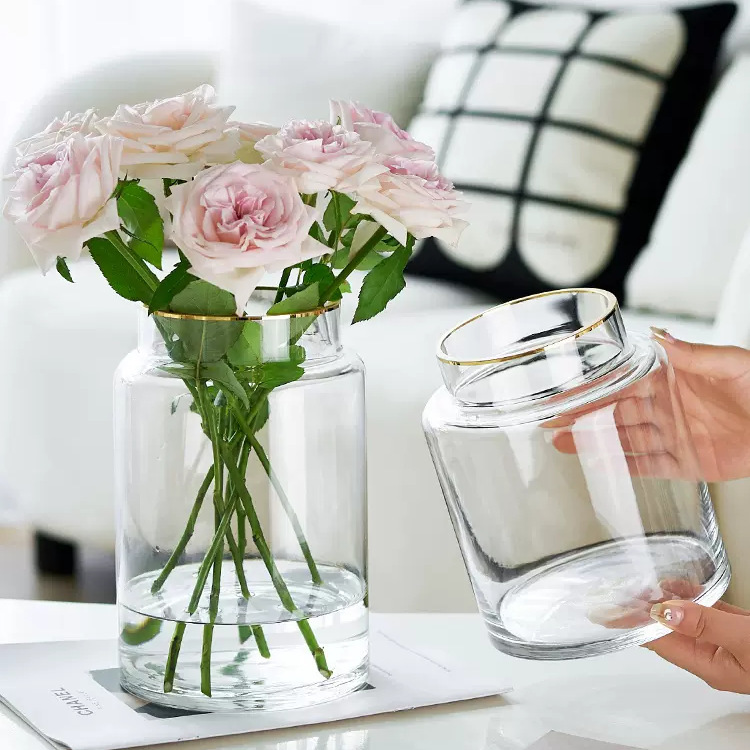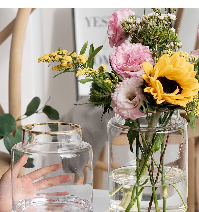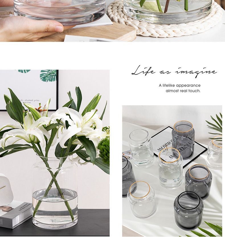 현대 심플 라이트 럭셔리 투명 유리 꽃병 거실 꽃 장식품 수경 수경 사이버 연예인 유리 병 식탁스토어 가기
