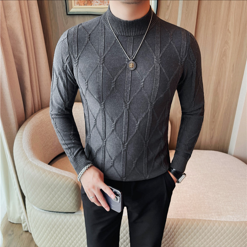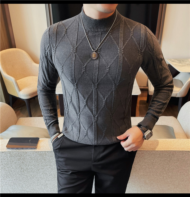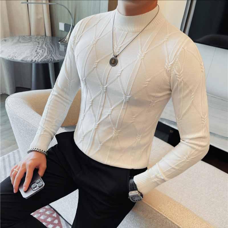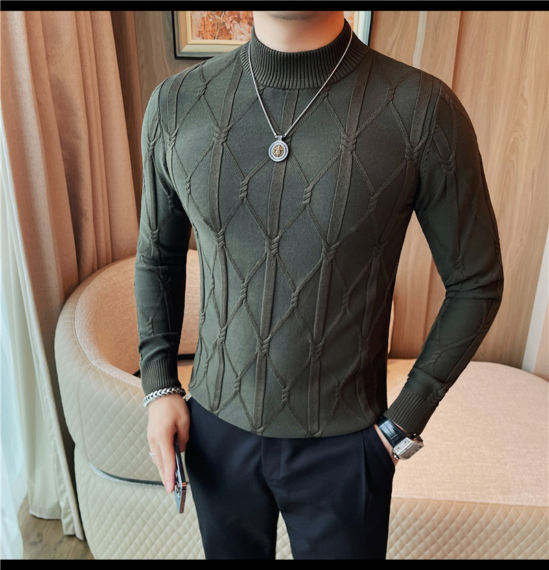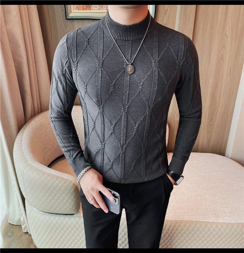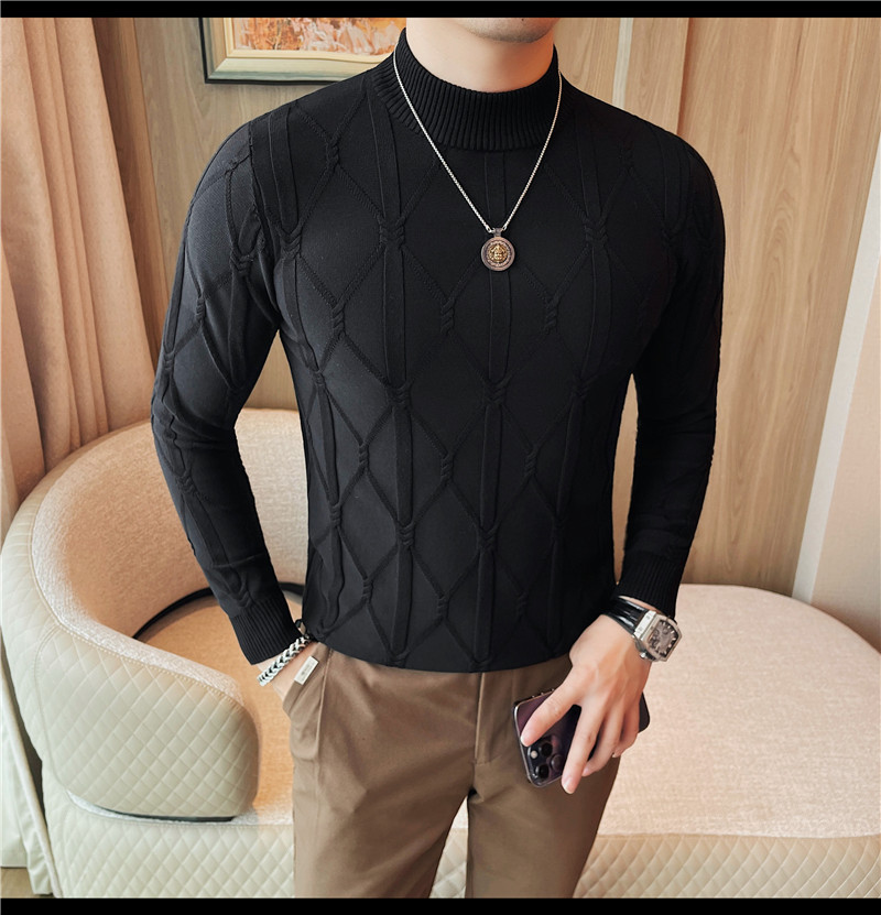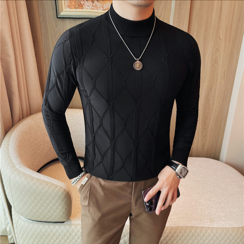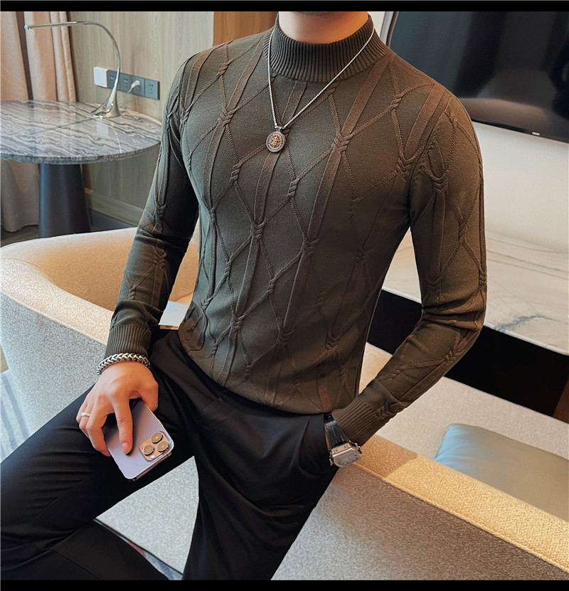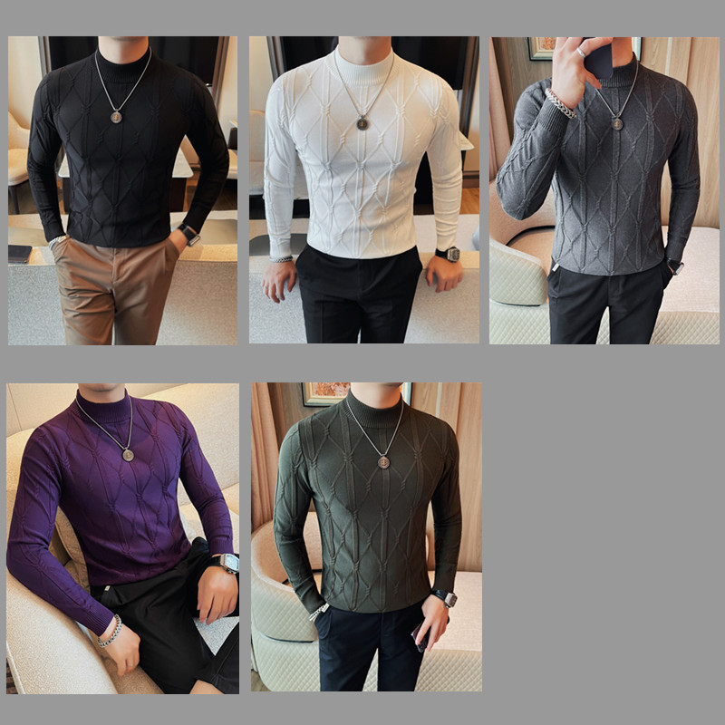 격자 무늬 자카드 긴팔 스웨터 남자 2024 가을 남자 패션 브랜드 슬림 올 매치 하프 터틀넥 스웨터베이스 셔츠