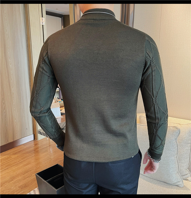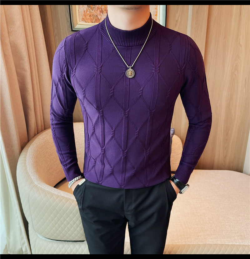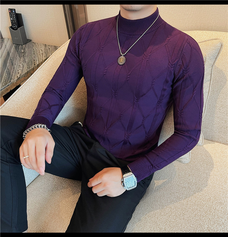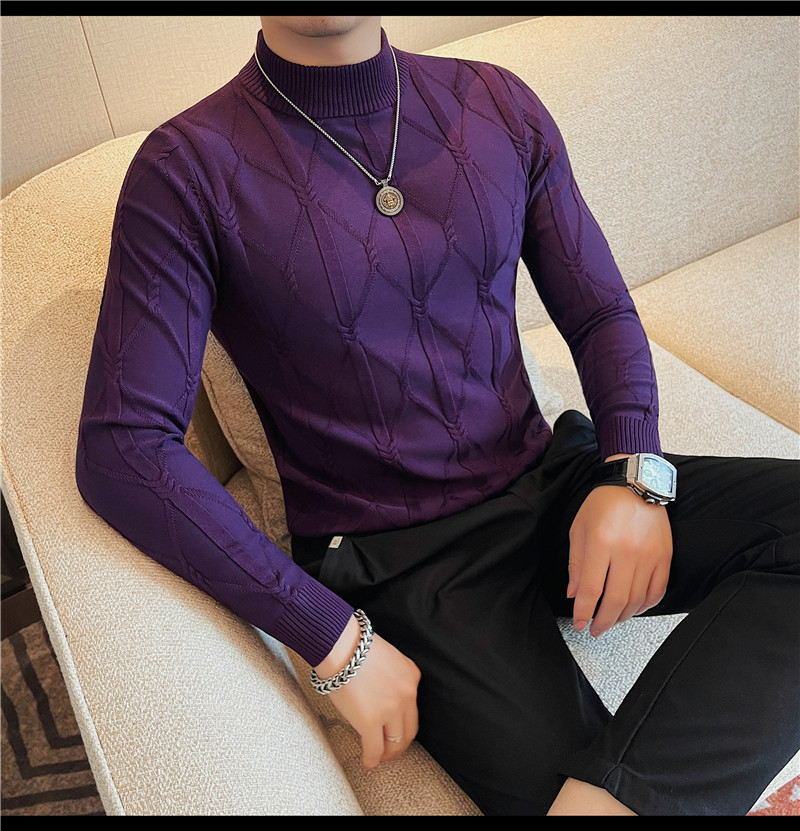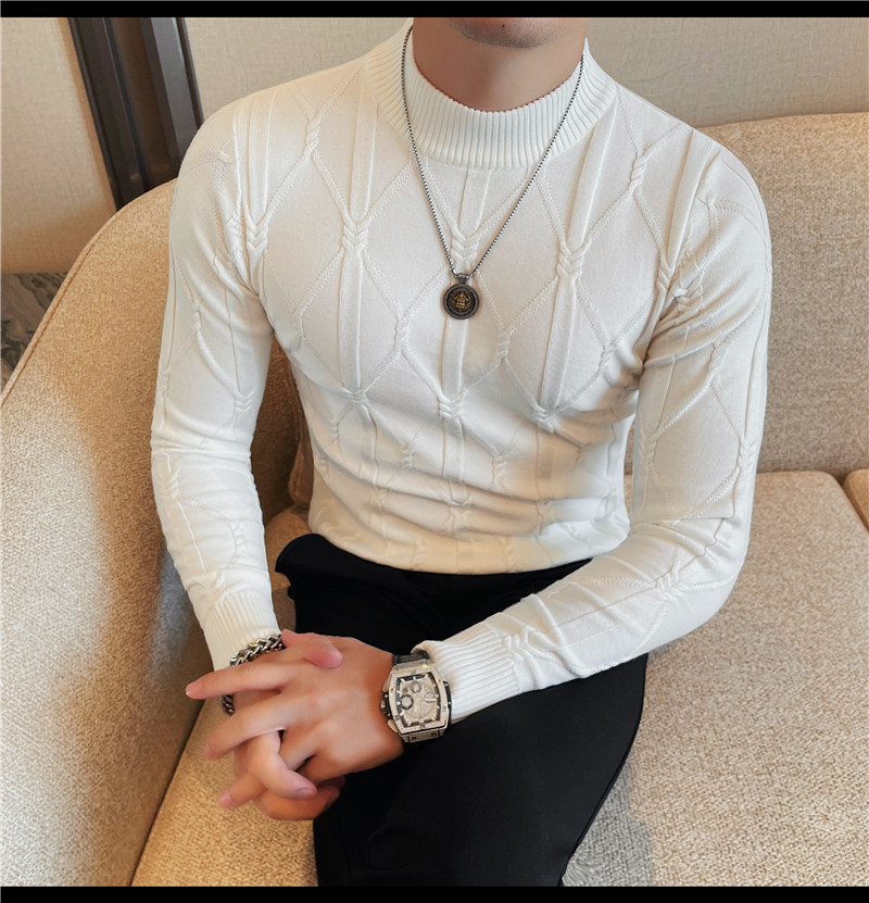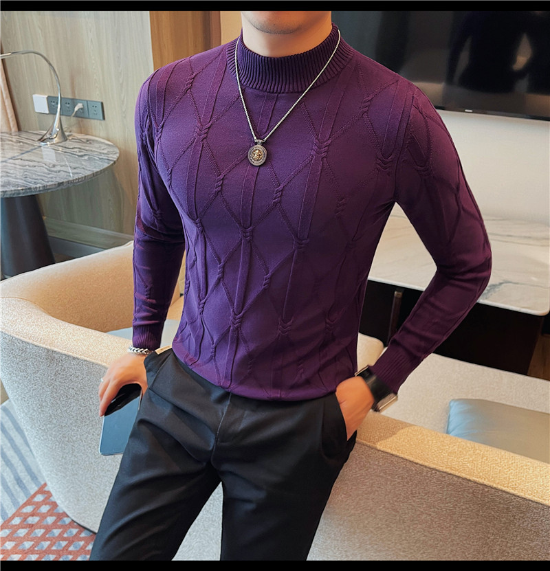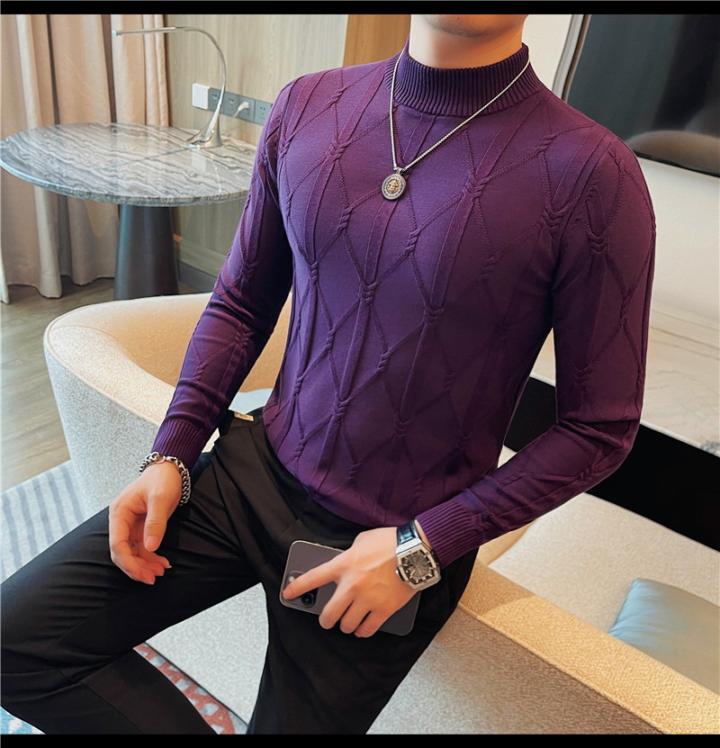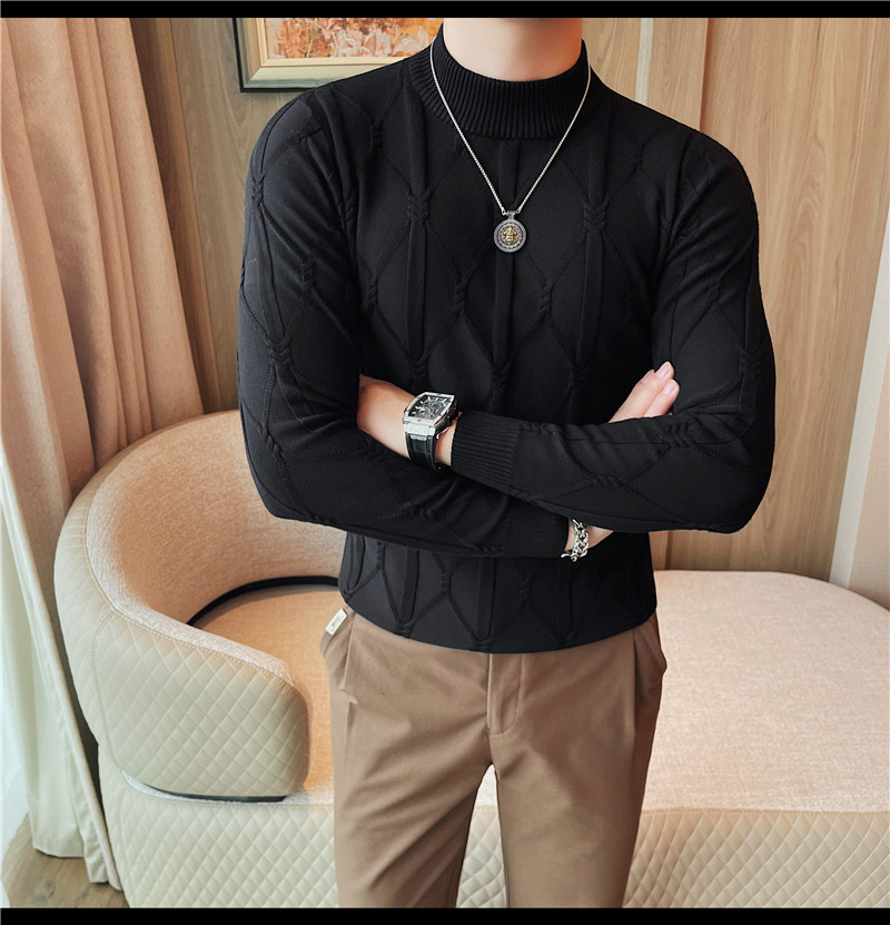 격자 무늬 자카드 긴팔 스웨터 남자 2024 가을 남자 패션 브랜드 슬림 올 매치 하프 터틀넥 스웨터베이스 셔츠