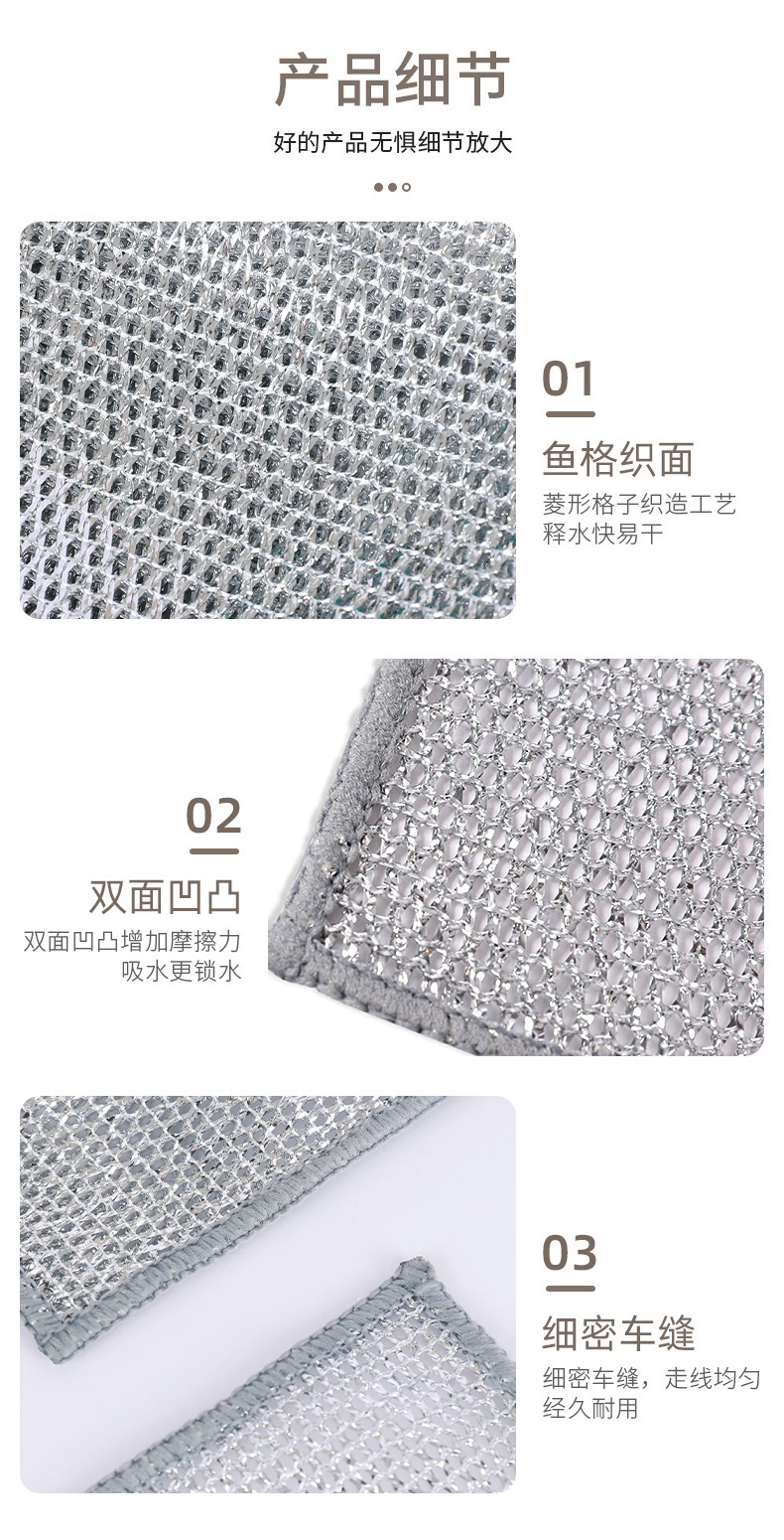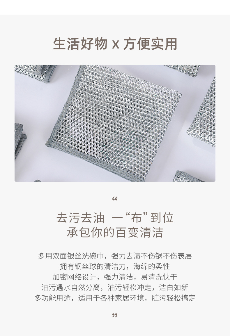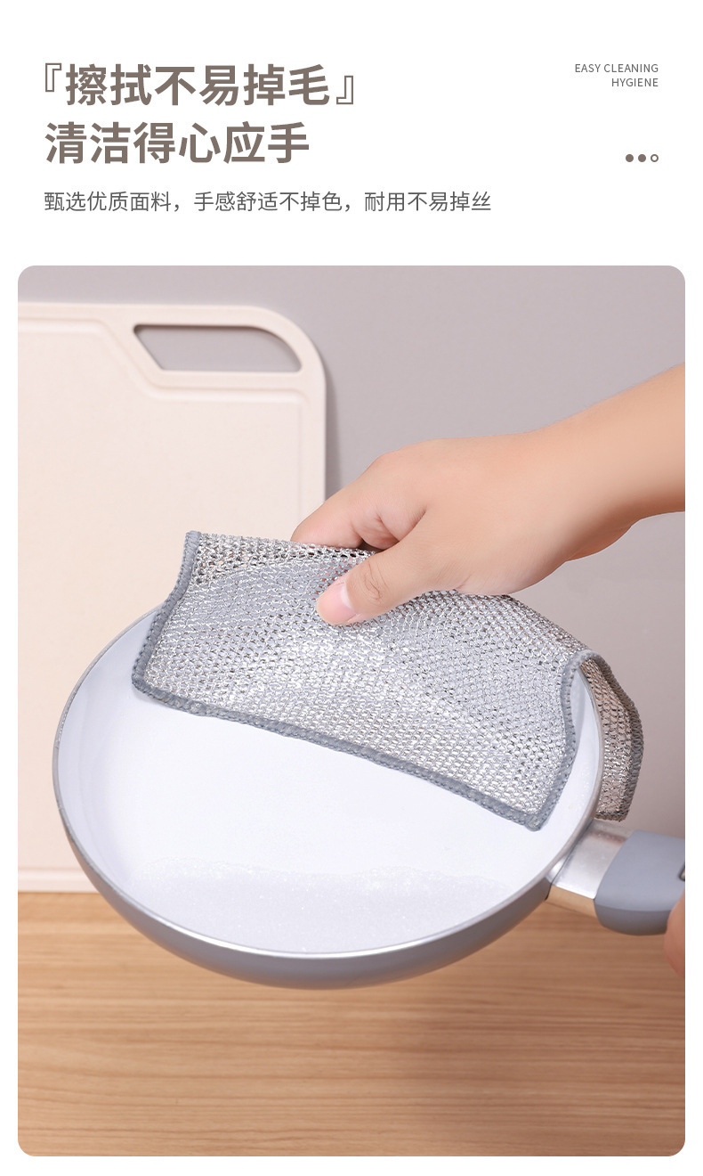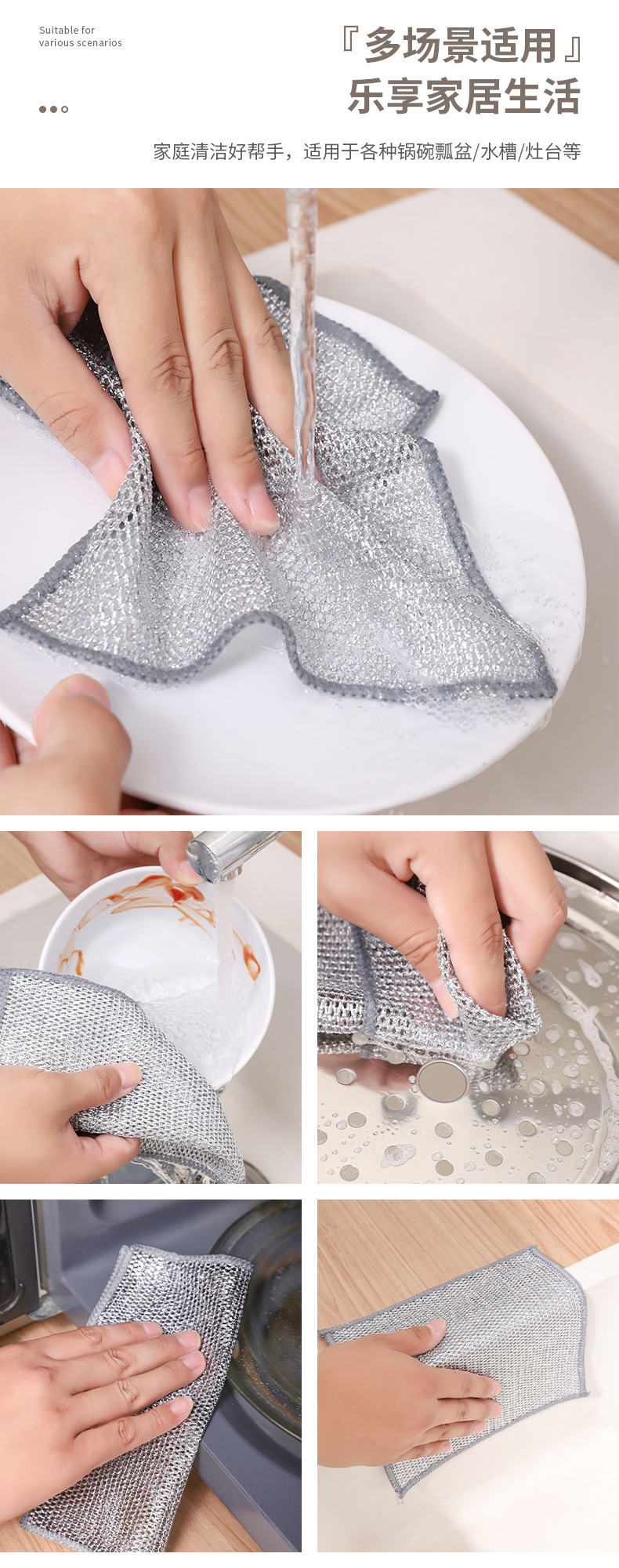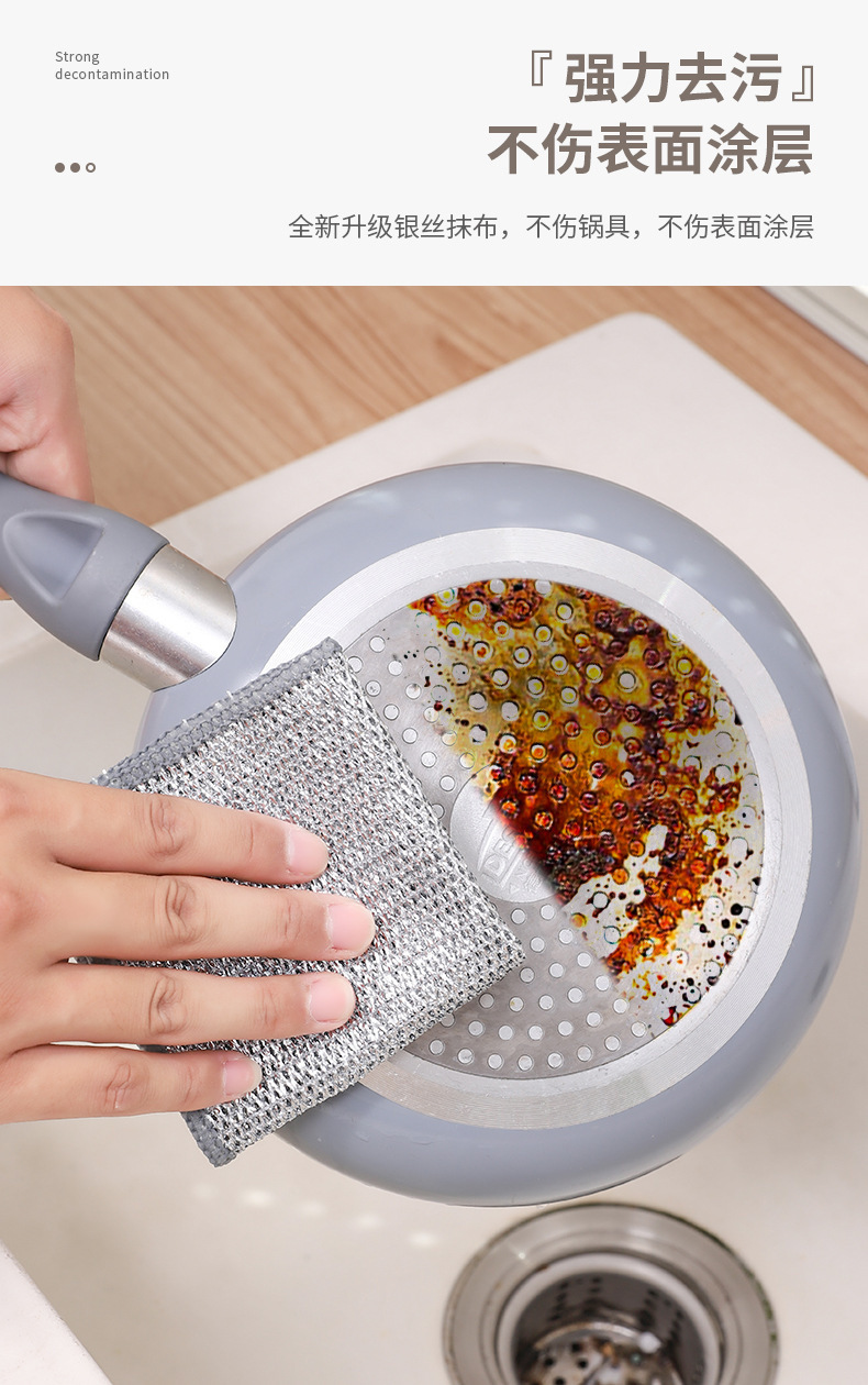 스틸 와이어 주방용 천은 가정용으로 반복 사용할 수 있으며, 스틸 볼을 대체할 수 있는 주방용 싱글 및 더블 레이어 실버 와이어 걸레입니다.스토어 가기