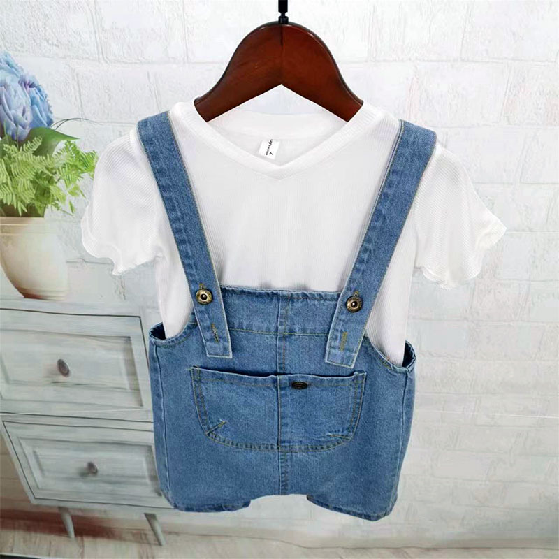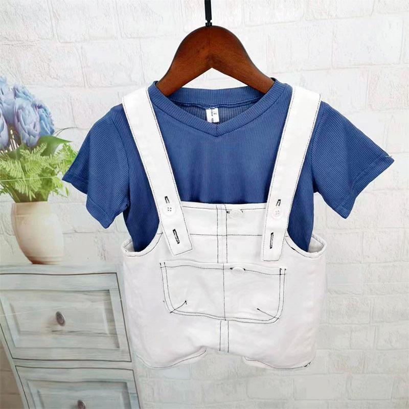 소년 데님 작업복 정장 2025 여름 새로운 어린이 반팔 투피스 세트 유치원 여름 교복 유행