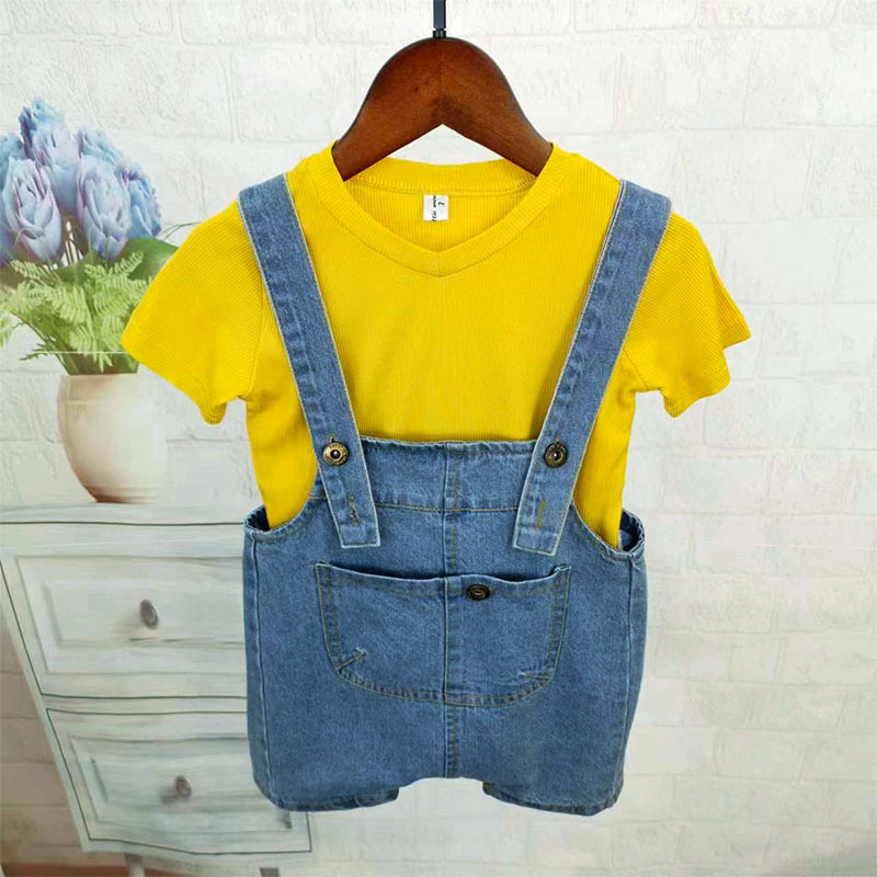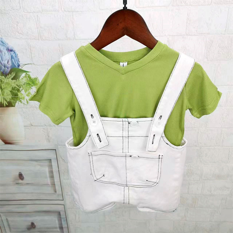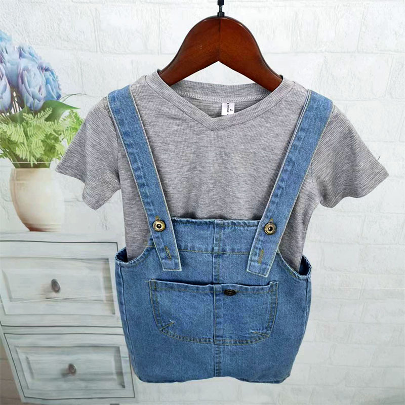 소년 데님 작업복 정장 2025 여름 새로운 어린이 반팔 투피스 세트 유치원 여름 교복 유행스토어 가기