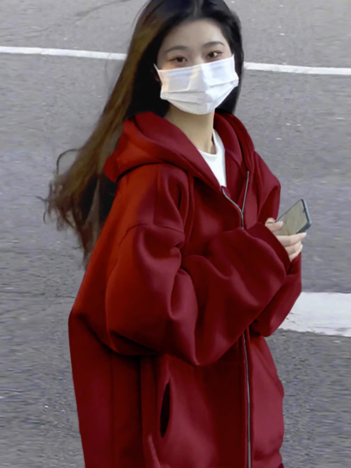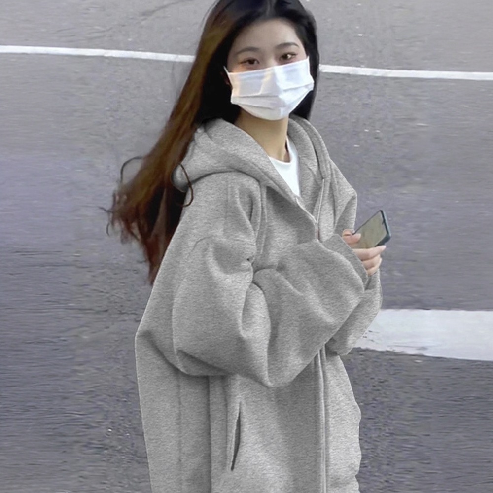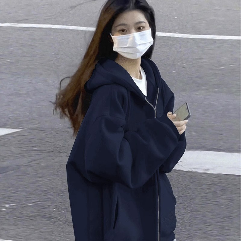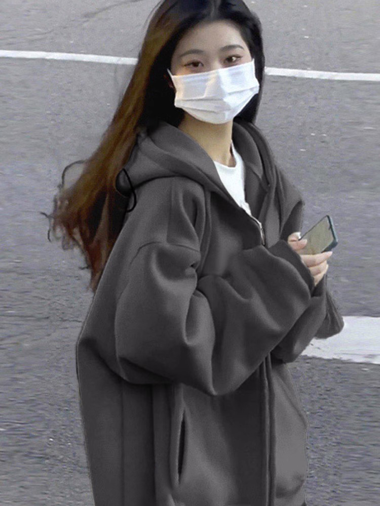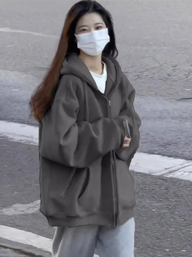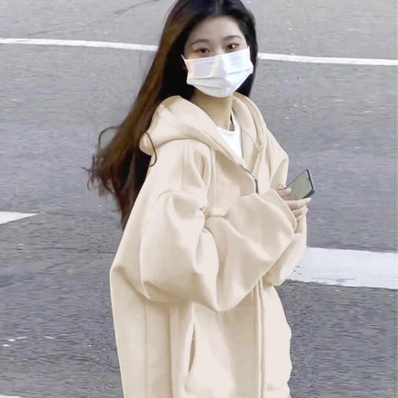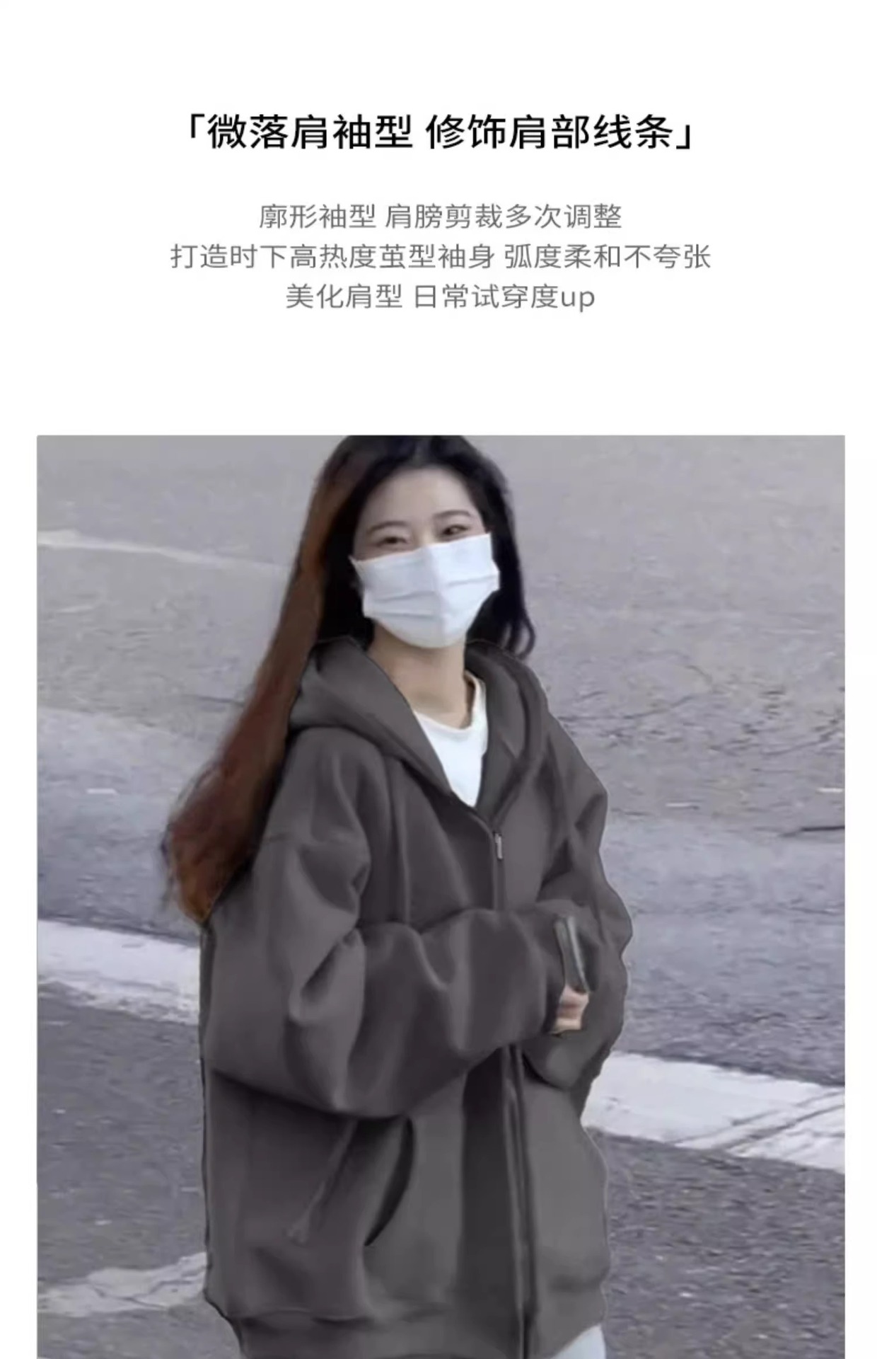 가을과 겨울 기모 두꺼운 단색 재킷 새로운 디자인 센스 카디건 지퍼 후드 올매치 캐주얼 스웨터 여성 트렌디