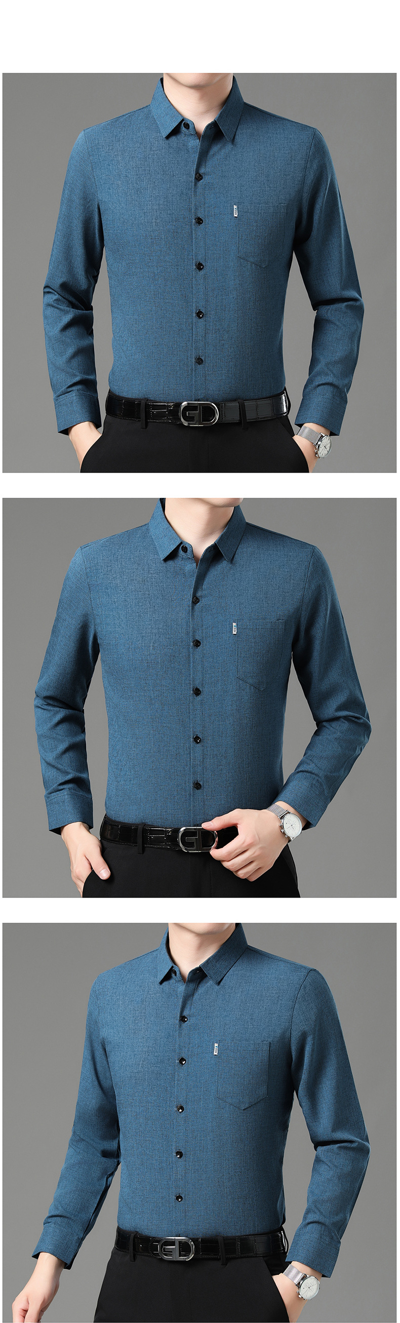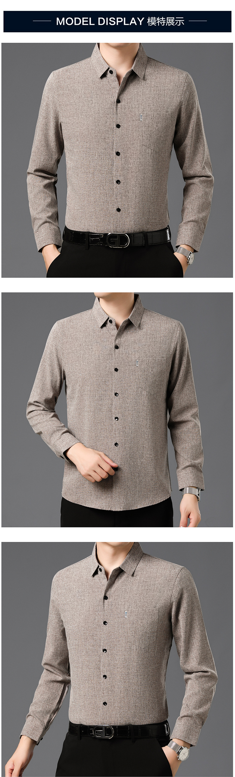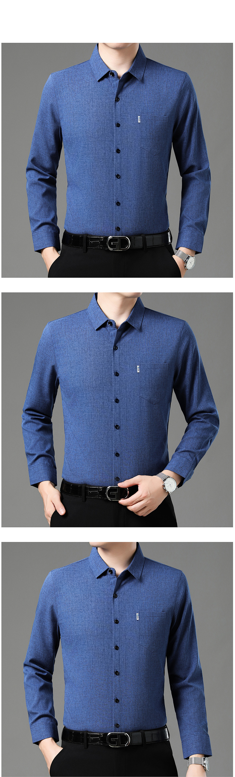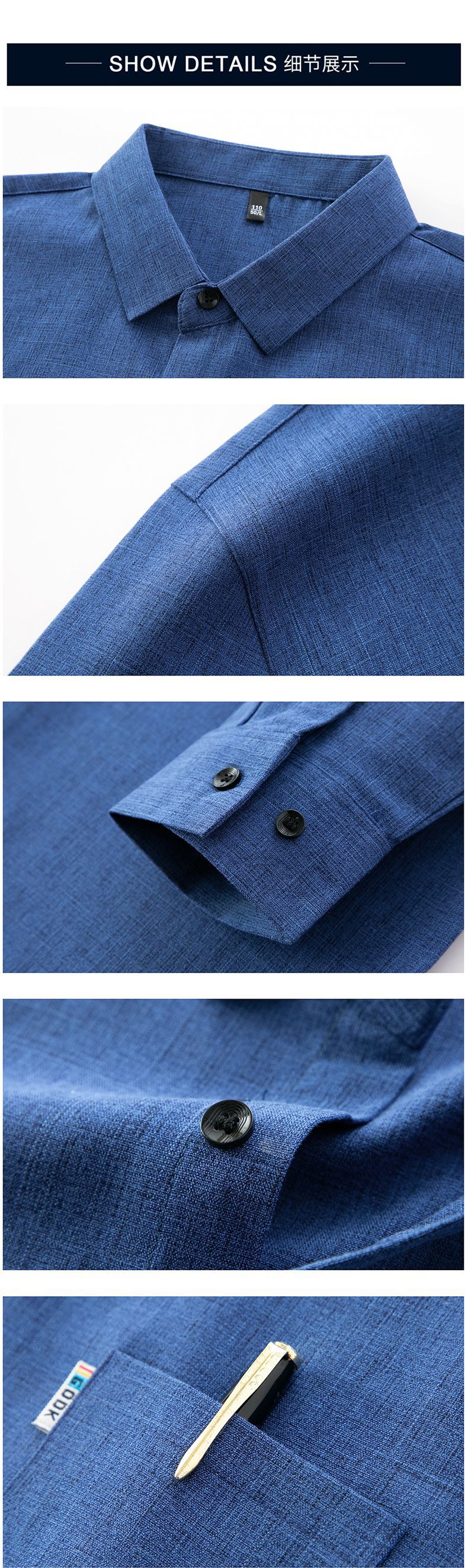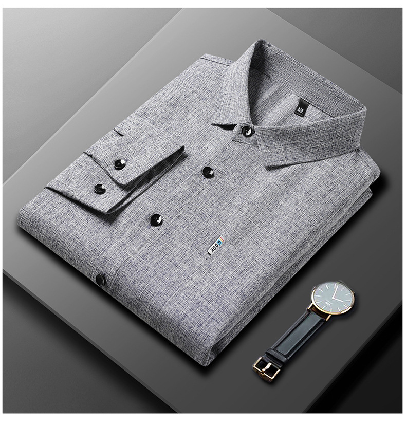 공장 직접 봄과 가을 긴 소매 셔츠 남성 중년 비즈니스 캐주얼 실제 포켓 코튼 및 린넨 아빠 남성 셔츠스토어 가기