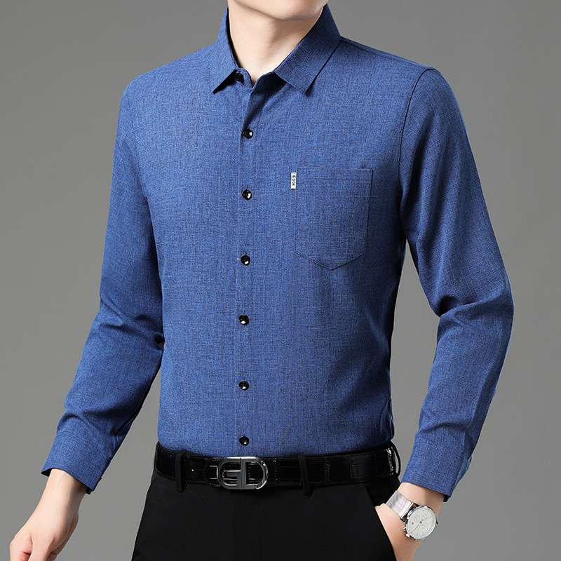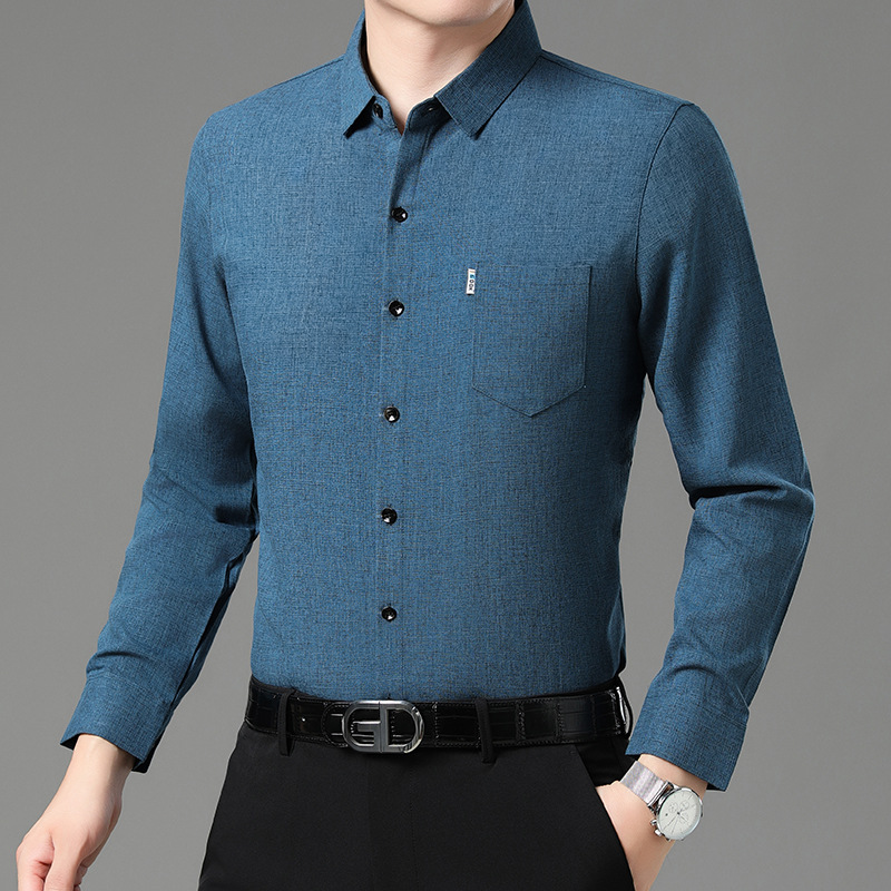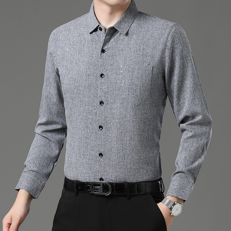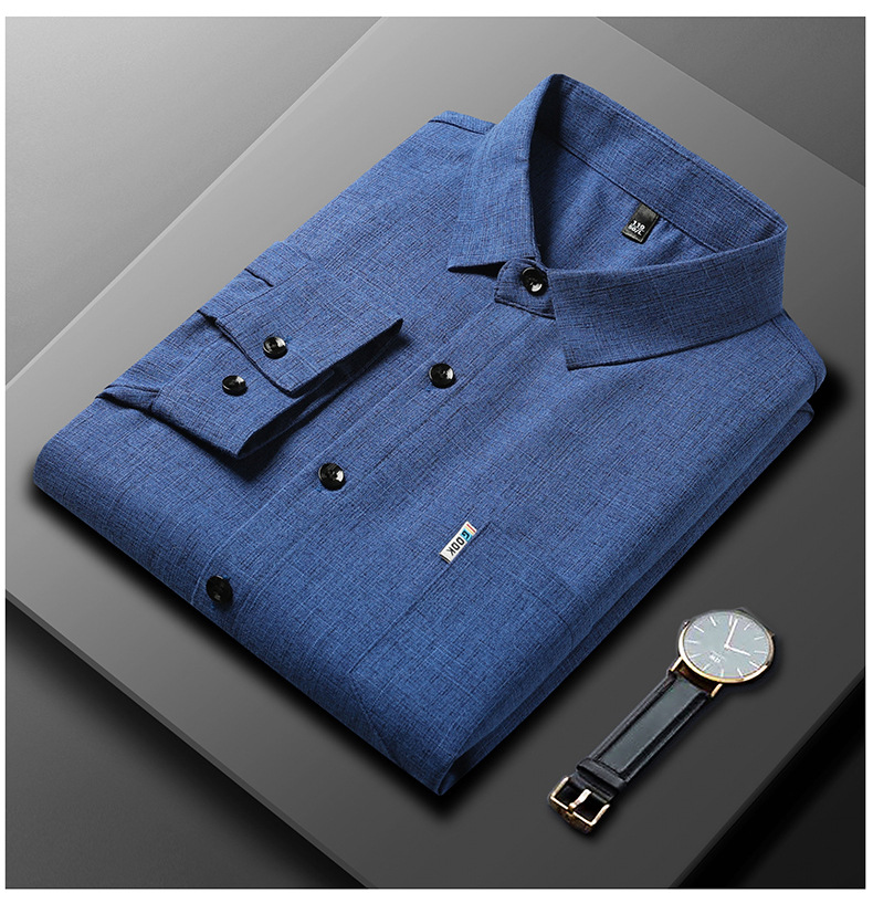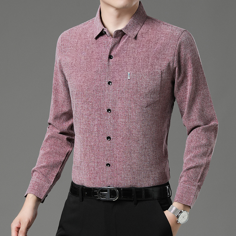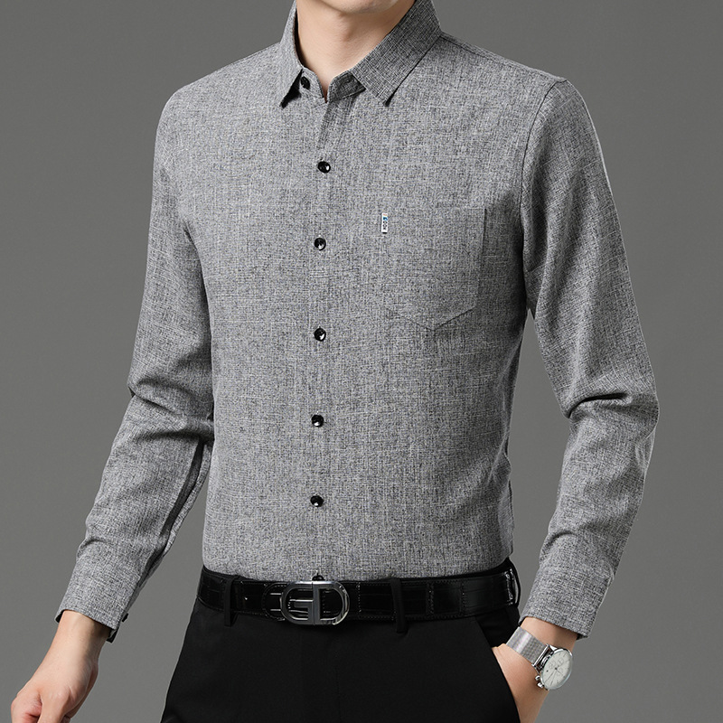 공장 직접 봄과 가을 긴 소매 셔츠 남성 중년 비즈니스 캐주얼 실제 포켓 코튼 및 린넨 아빠 남성 셔츠