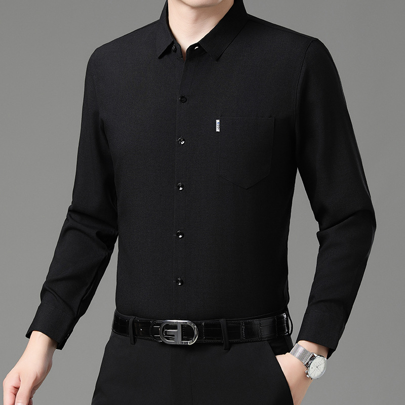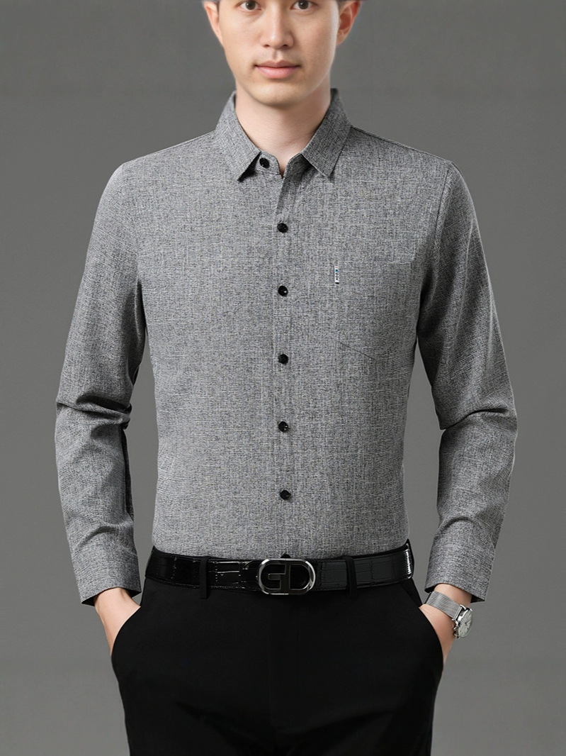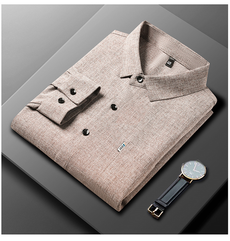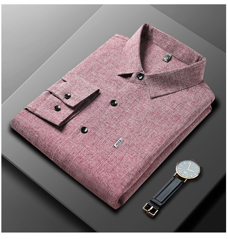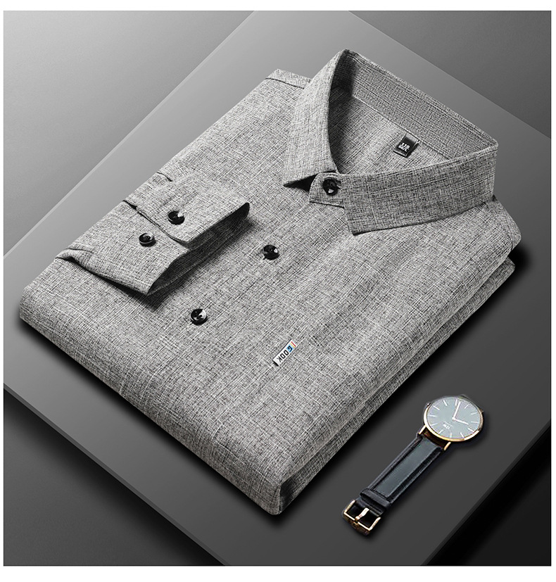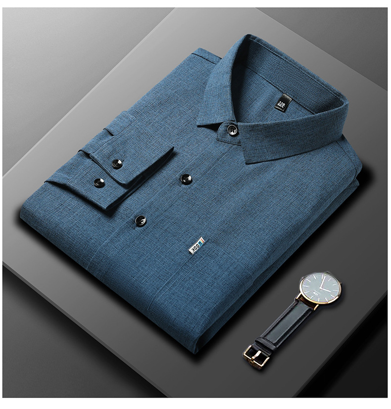 공장 직접 봄과 가을 긴 소매 셔츠 남성 중년 비즈니스 캐주얼 실제 포켓 코튼 및 린넨 아빠 남성 셔츠