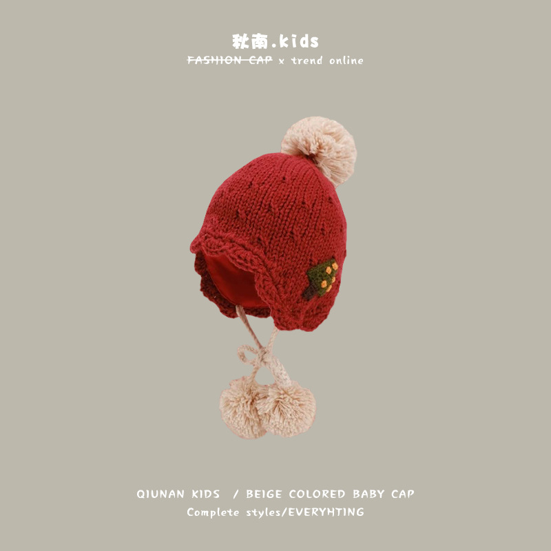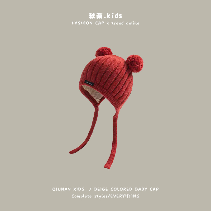 가을/겨울 한국 아기 모자 2025 가을/겨울 두꺼운 아기 신년 겨울 빨간색 어린이 귀 보호 모자 도매스토어 가기
