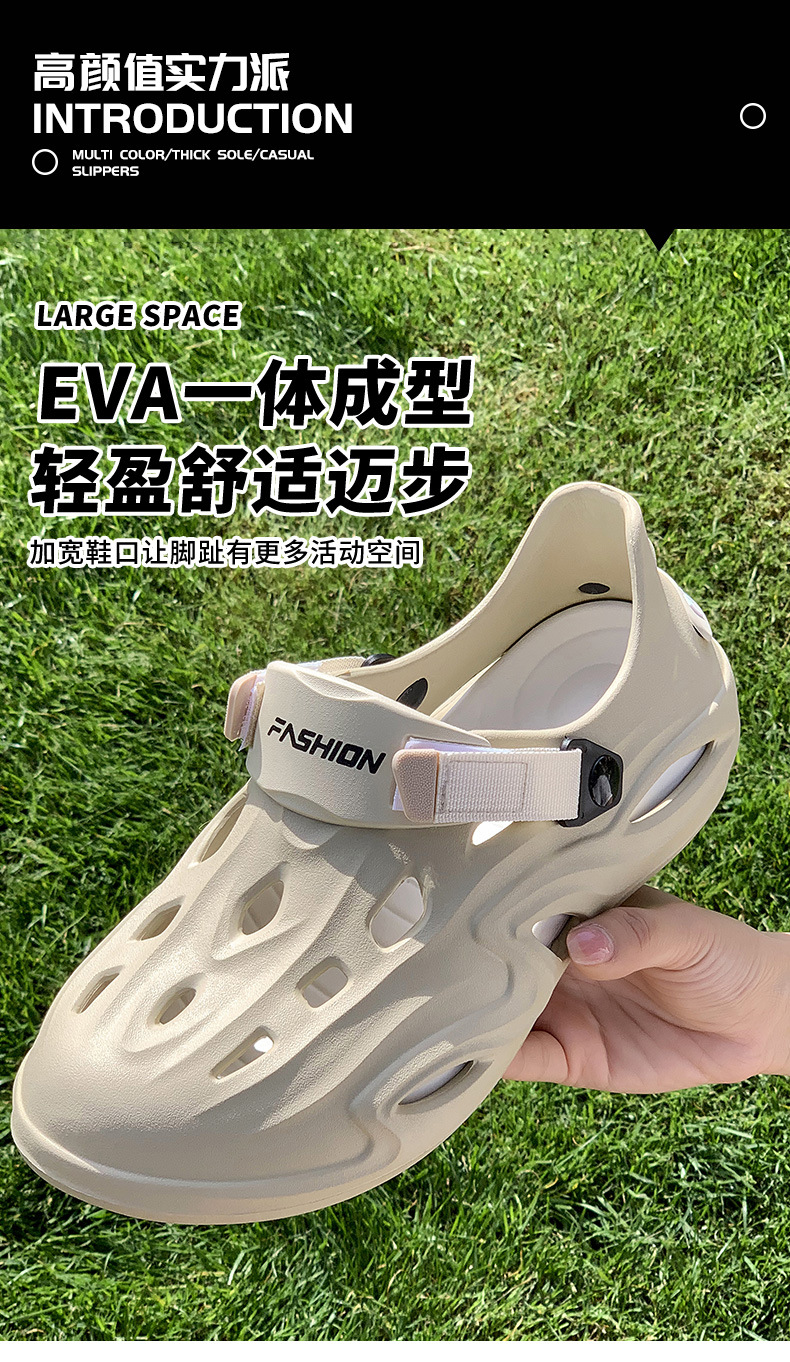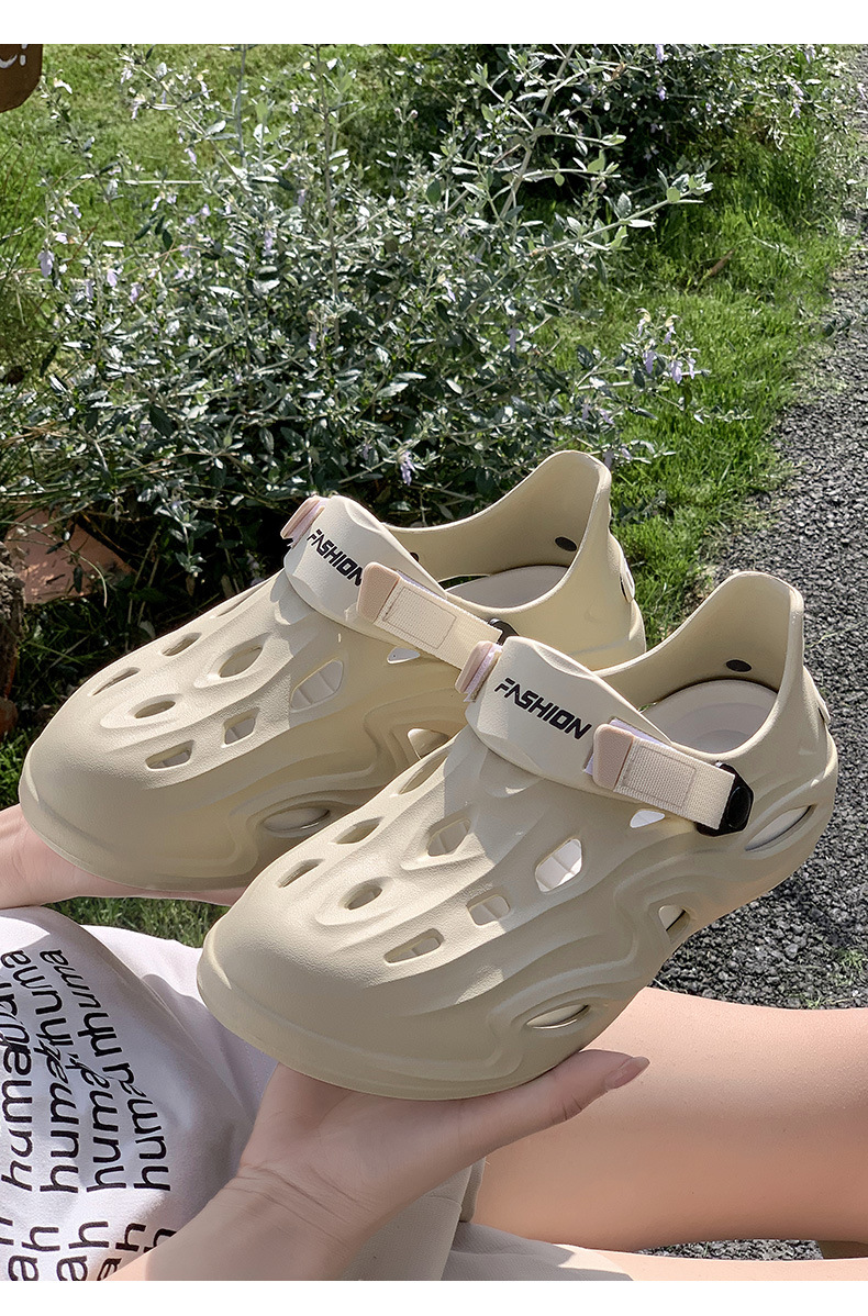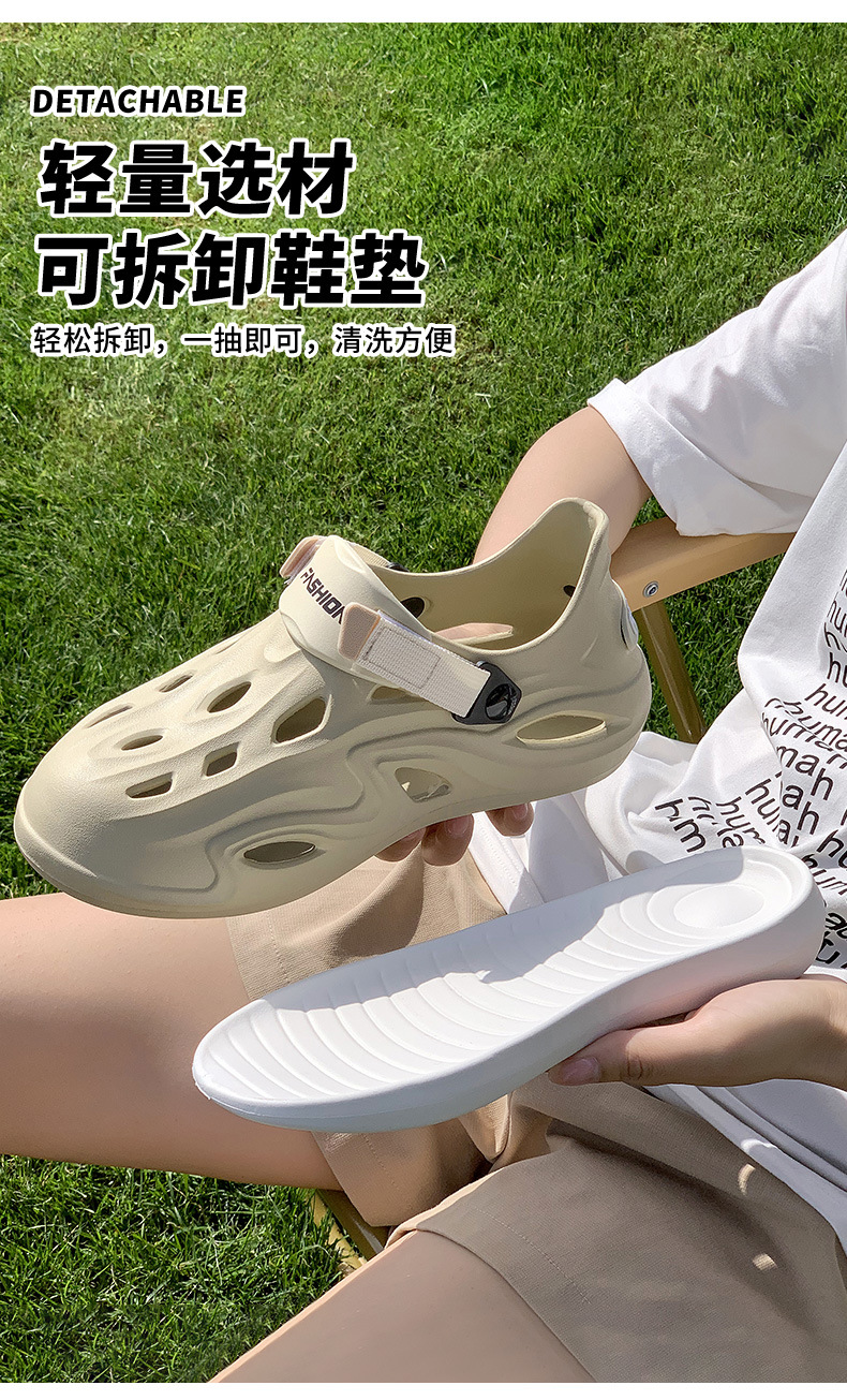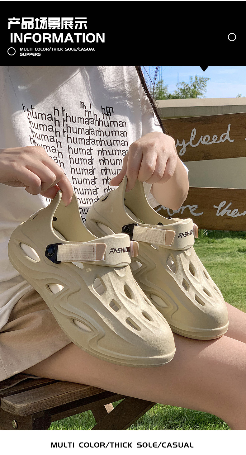 홀 신발 남자 여름 2024 새로운 스타일 똥 느낌 바오터 슬리퍼 외부 미끄럼 방지 비치 스포츠 코코넛 샌들