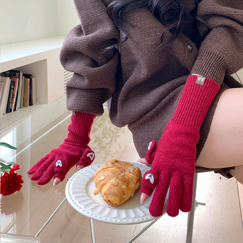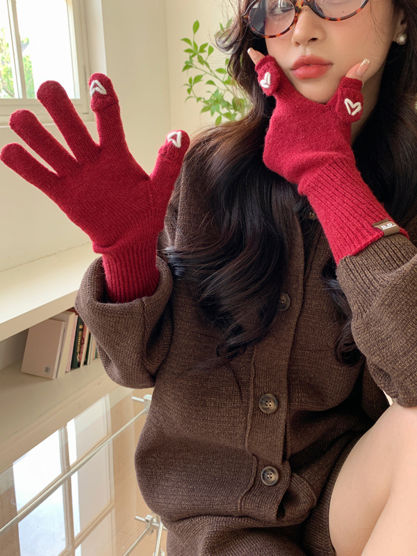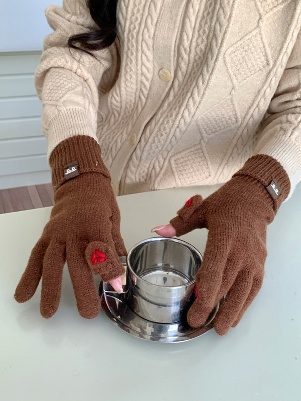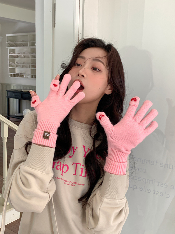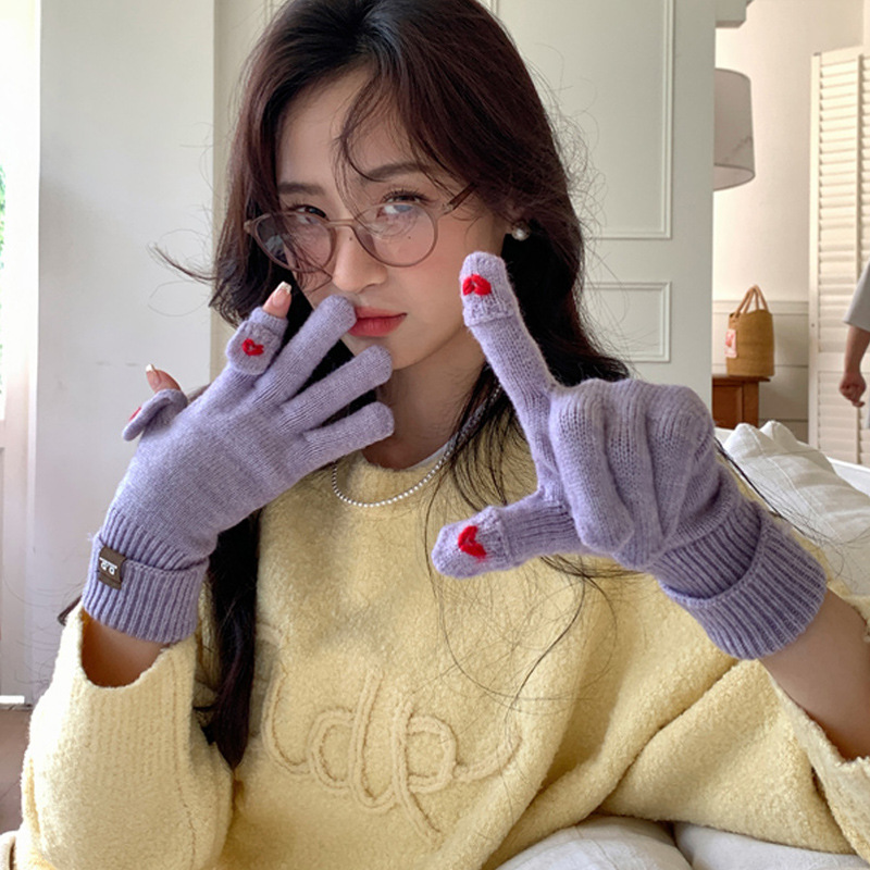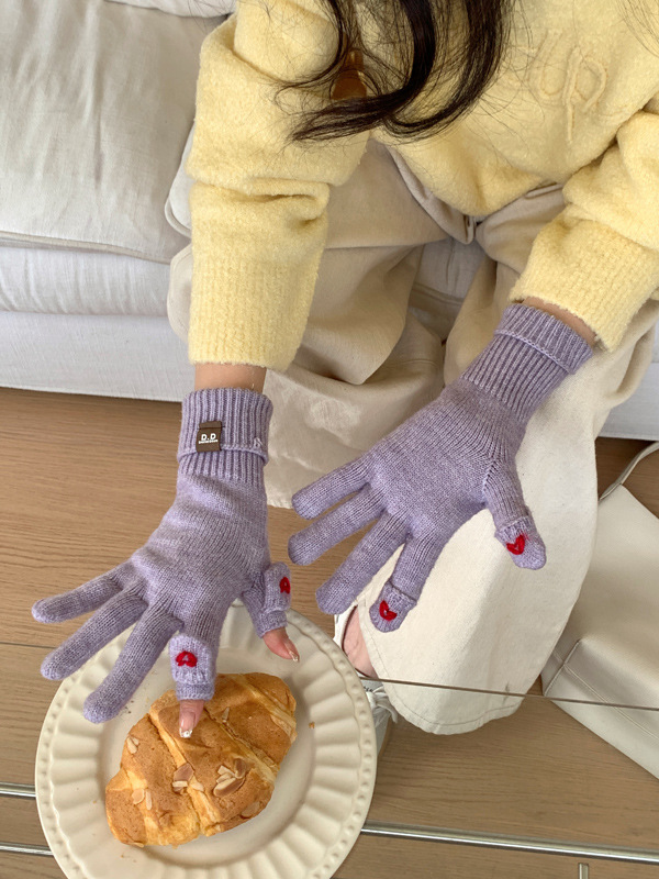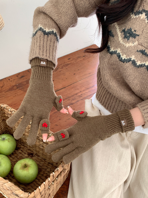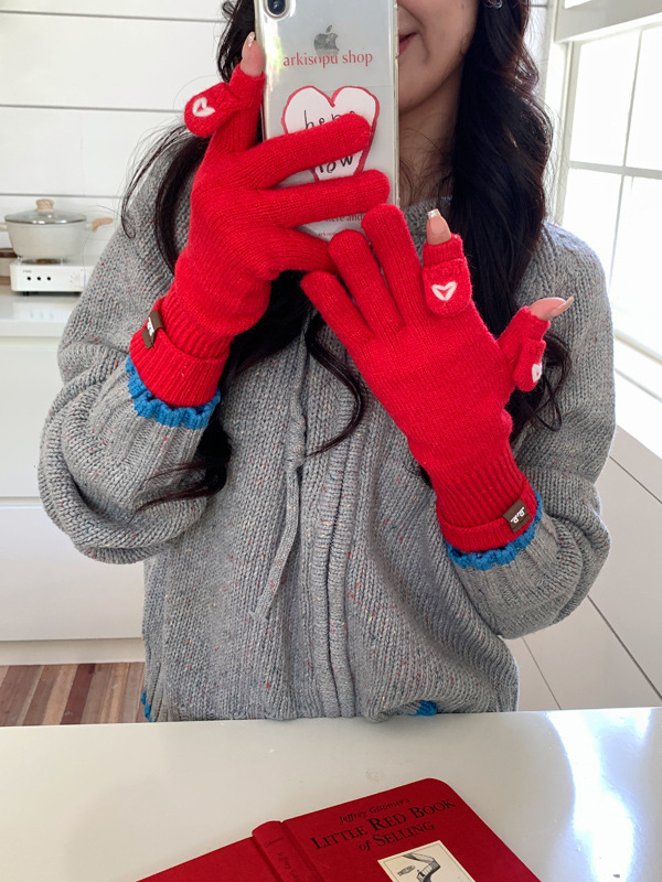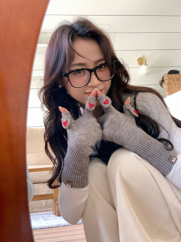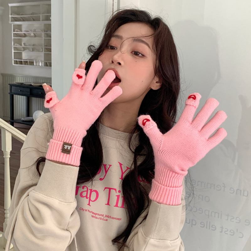 2024 가을과 겨울 양모 니트 사랑 자수 장갑 여성 양모 오픈 손가락 터치 스크린 따뜻한 승마 학생 감기 보호