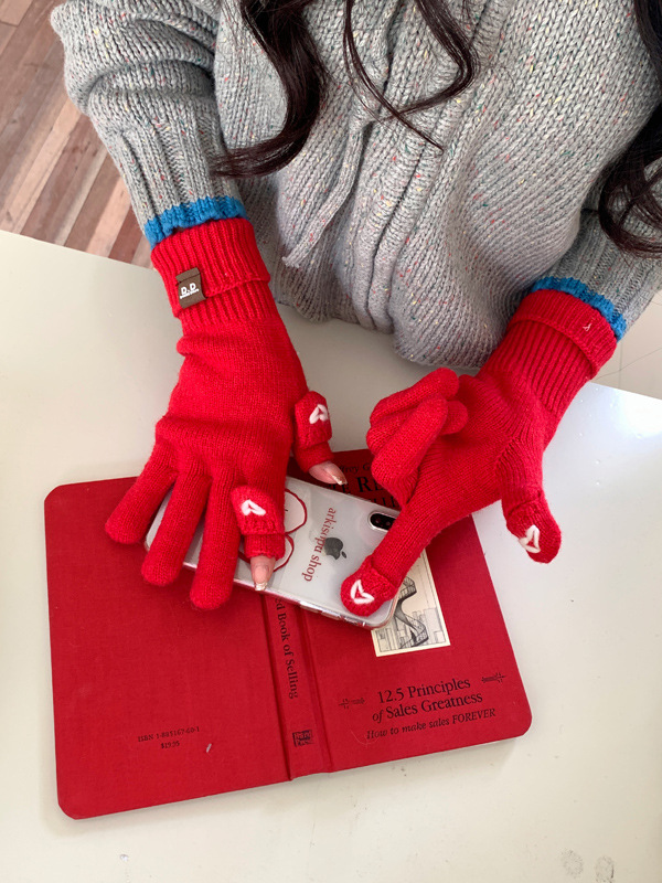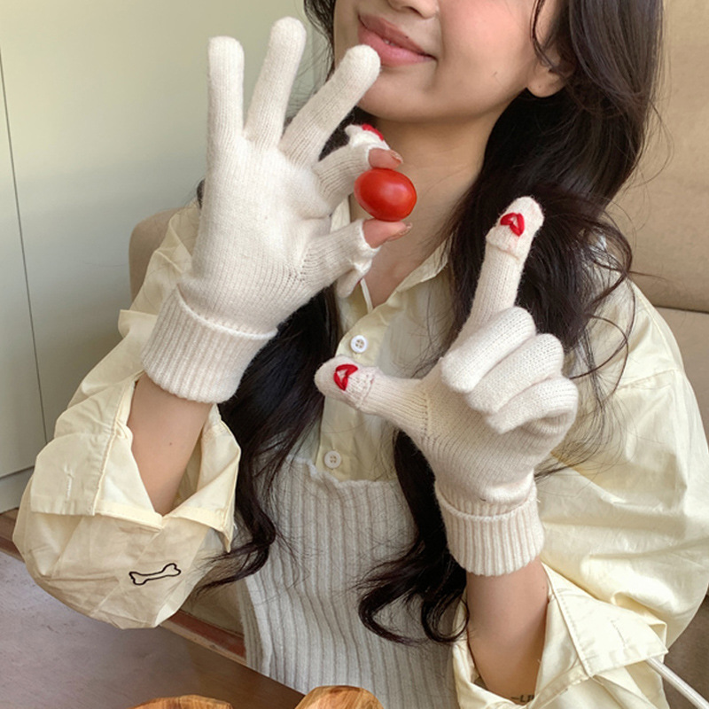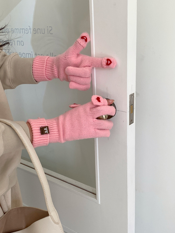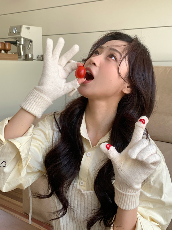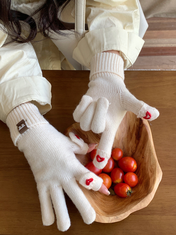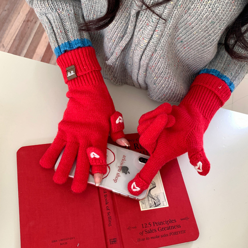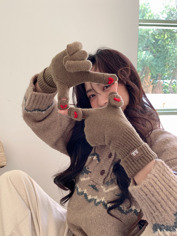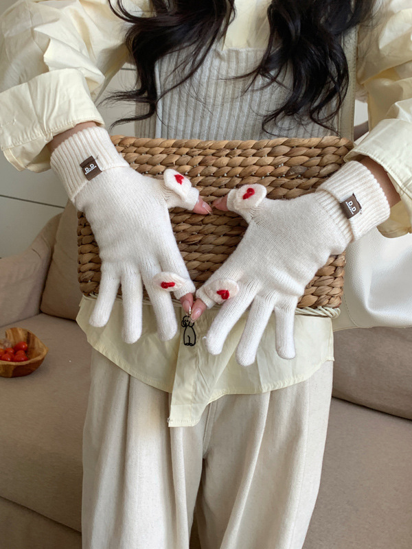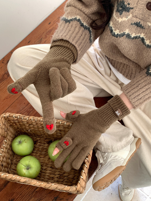 2024 가을과 겨울 양모 니트 사랑 자수 장갑 여성 양모 오픈 손가락 터치 스크린 따뜻한 승마 학생 감기 보호