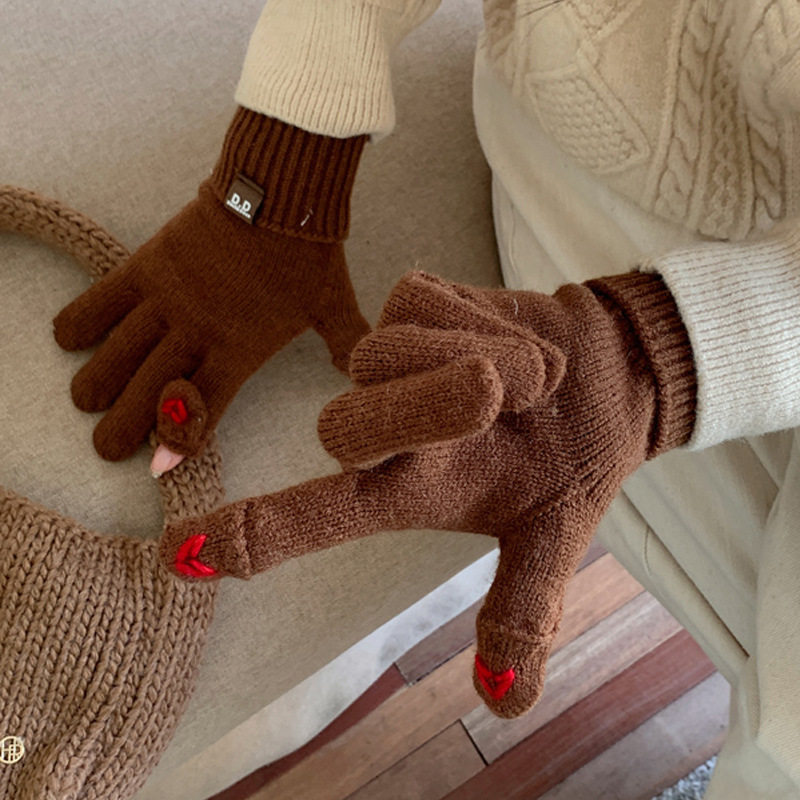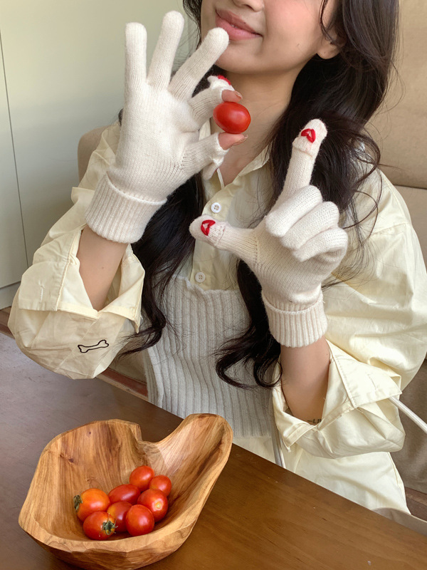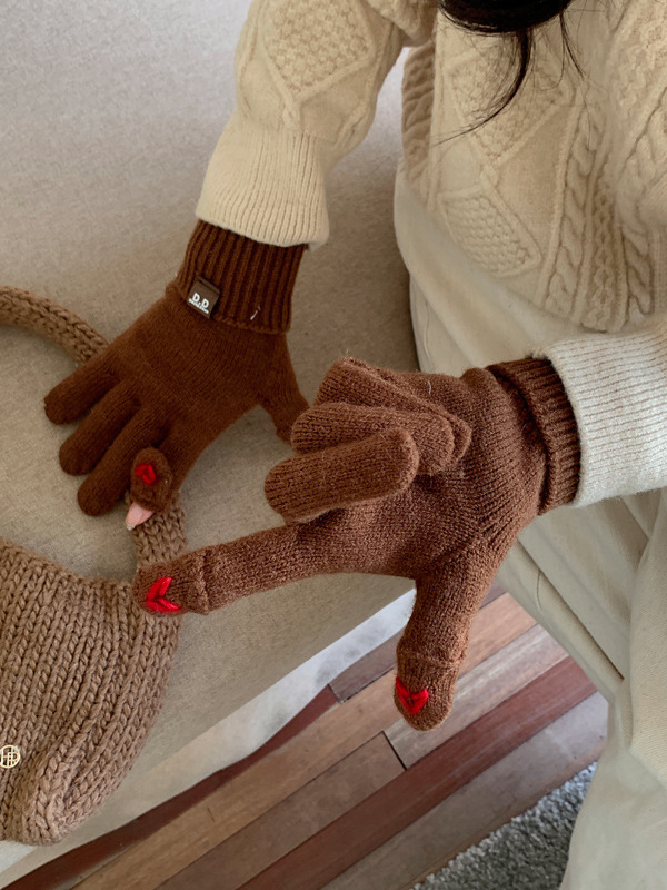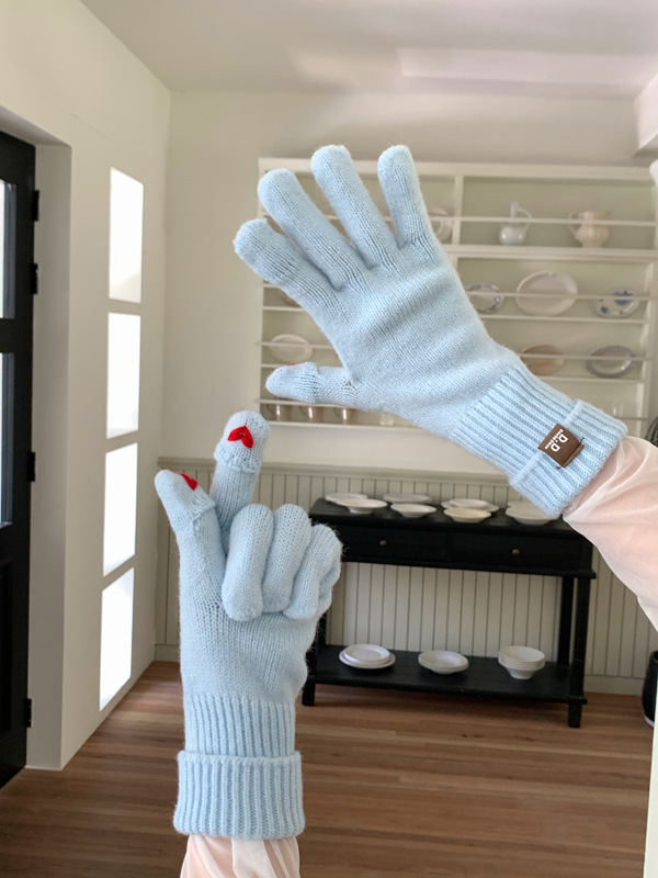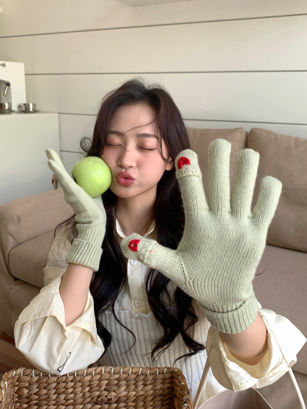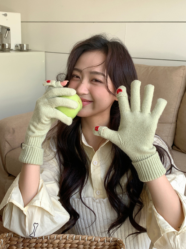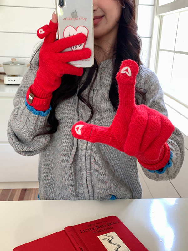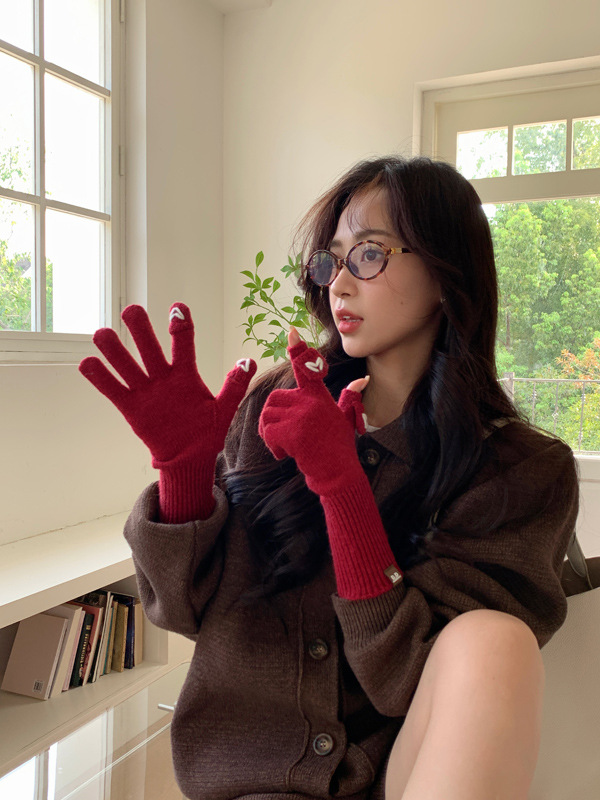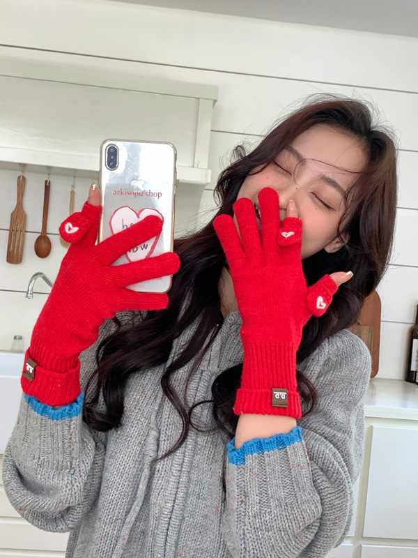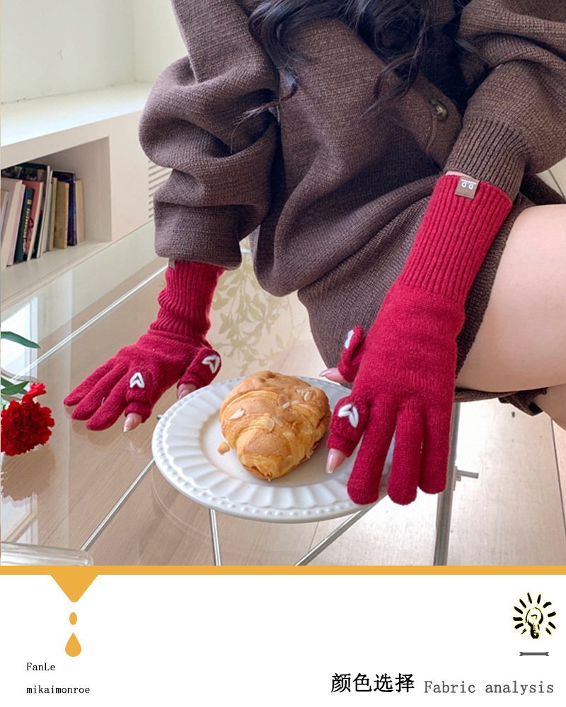 2024 가을과 겨울 양모 니트 사랑 자수 장갑 여성 양모 오픈 손가락 터치 스크린 따뜻한 승마 학생 감기 보호