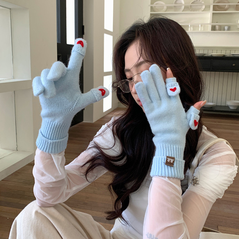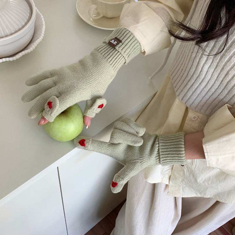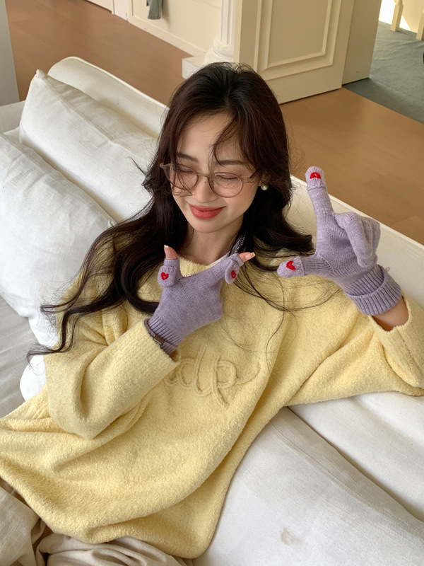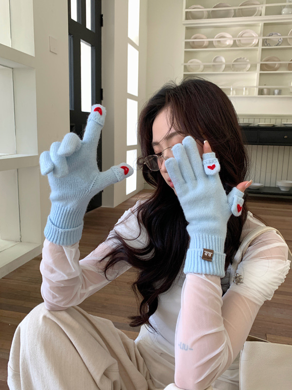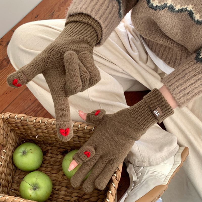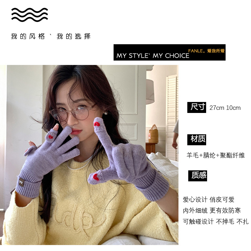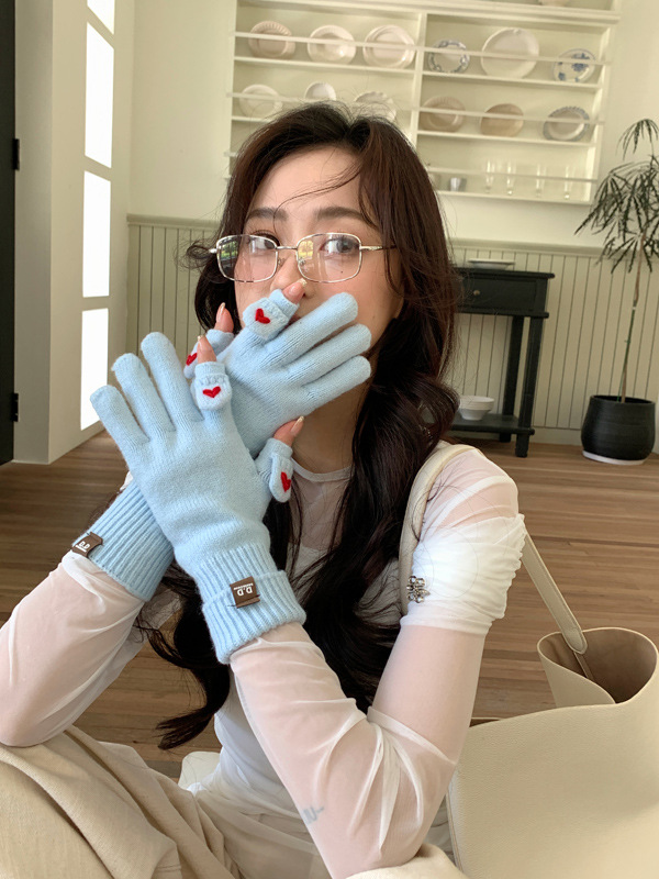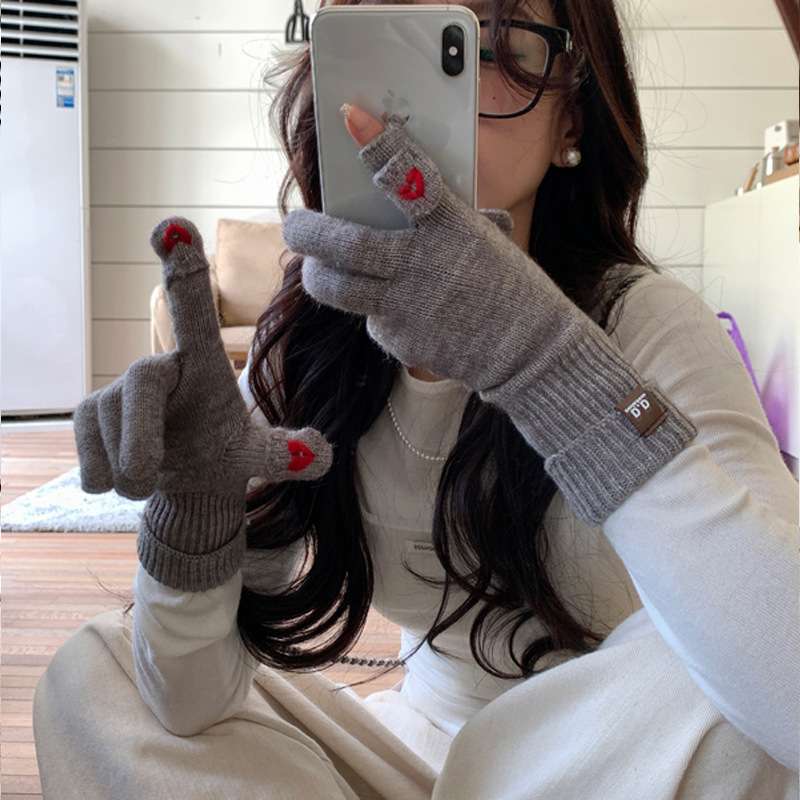 2024 가을과 겨울 양모 니트 사랑 자수 장갑 여성 양모 오픈 손가락 터치 스크린 따뜻한 승마 학생 감기 보호스토어 가기