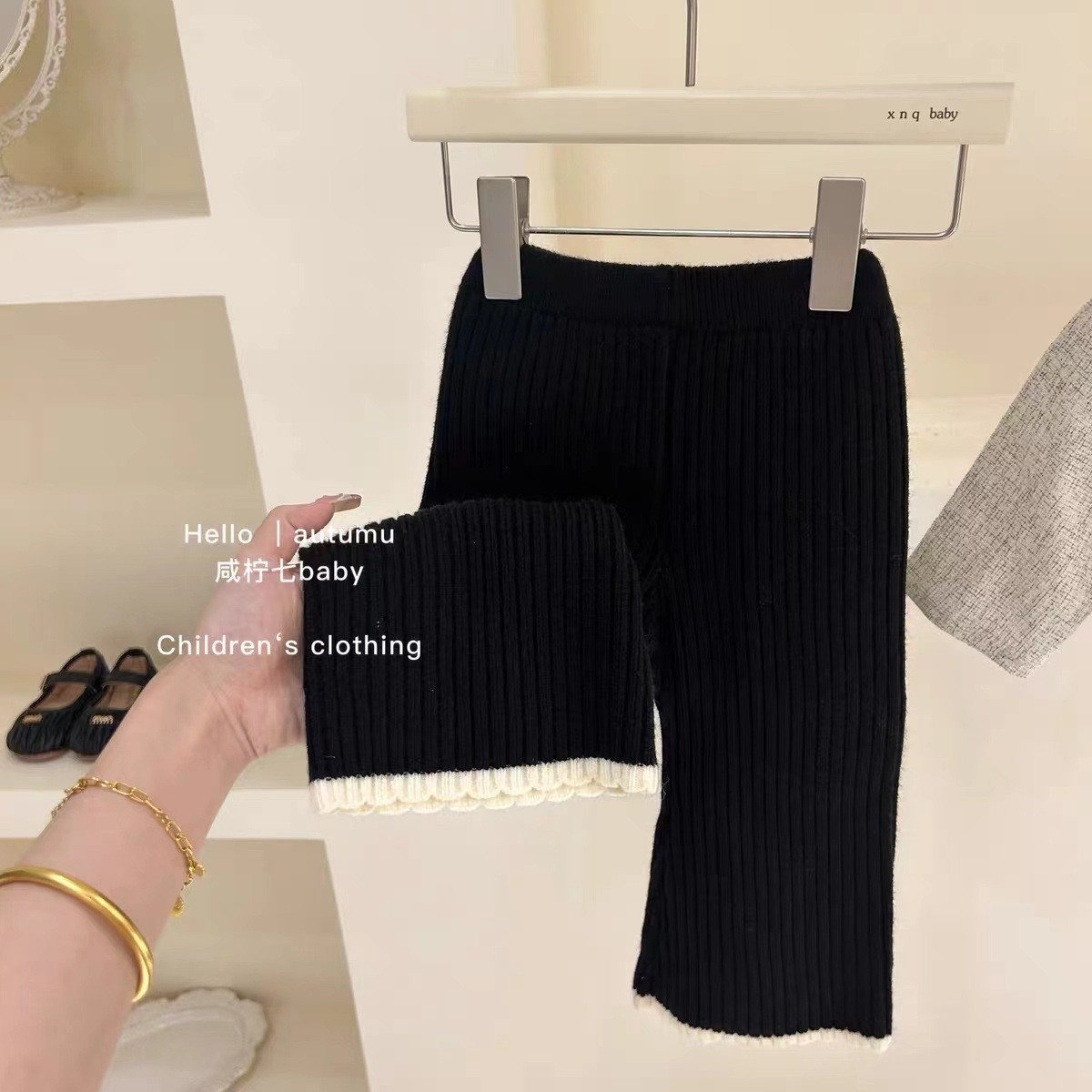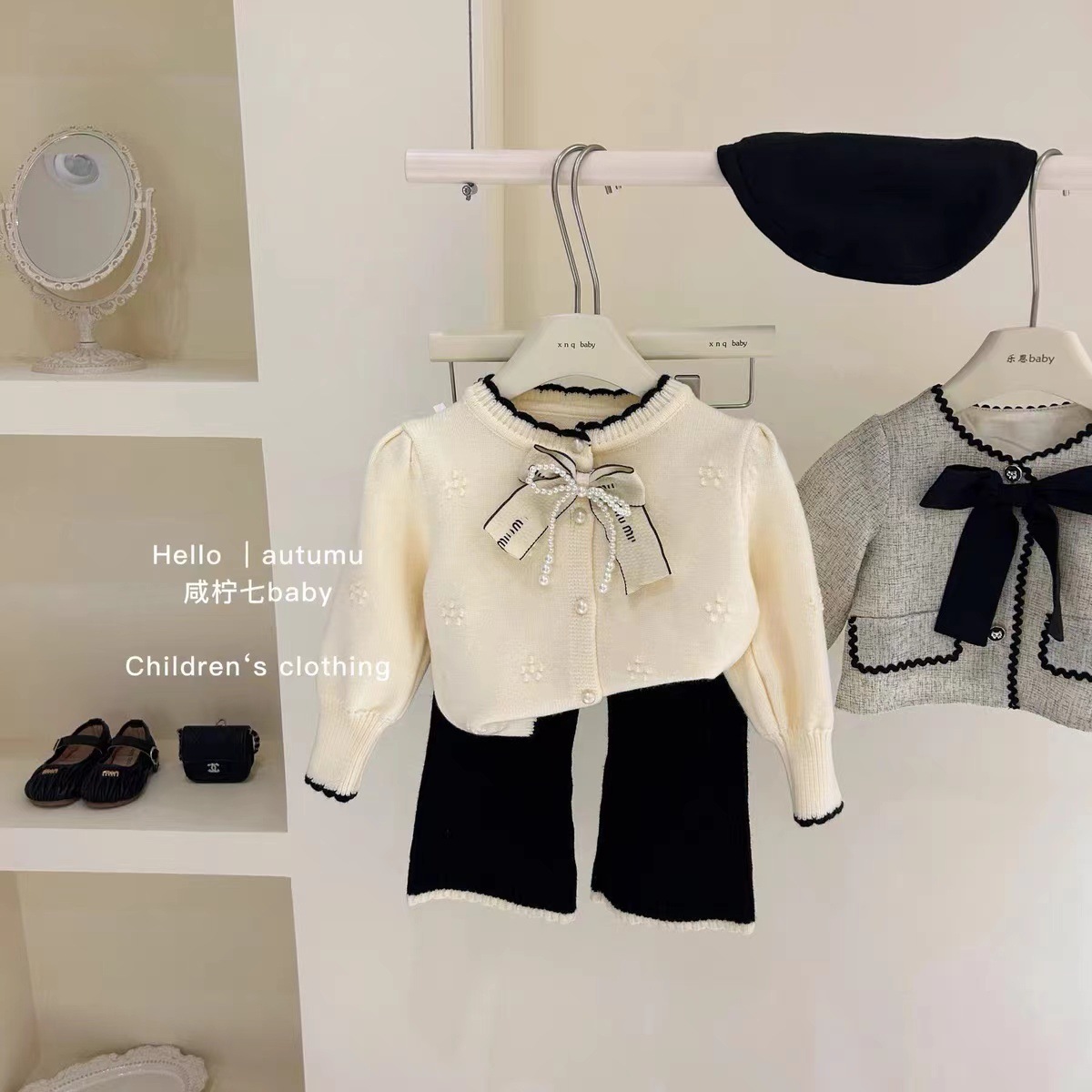 2024 새로운 소녀 샤넬 스타일 스웨터 코트 베이비 걸스 2 피스 트렌디 걸스 니트 탑