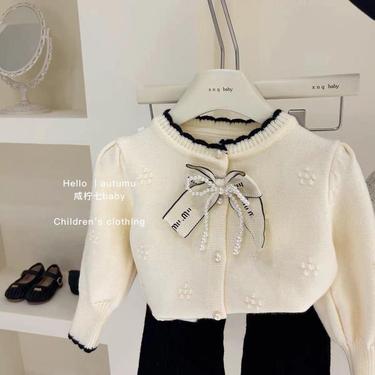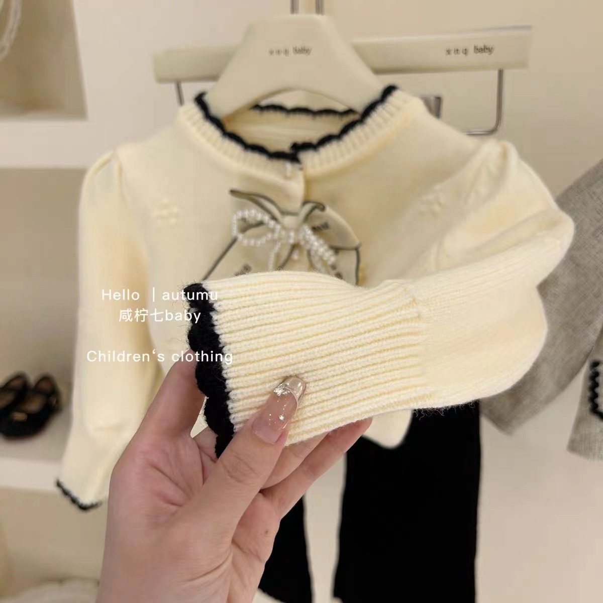 2024 새로운 소녀 샤넬 스타일 스웨터 코트 베이비 걸스 2 피스 트렌디 걸스 니트 탑스토어 가기