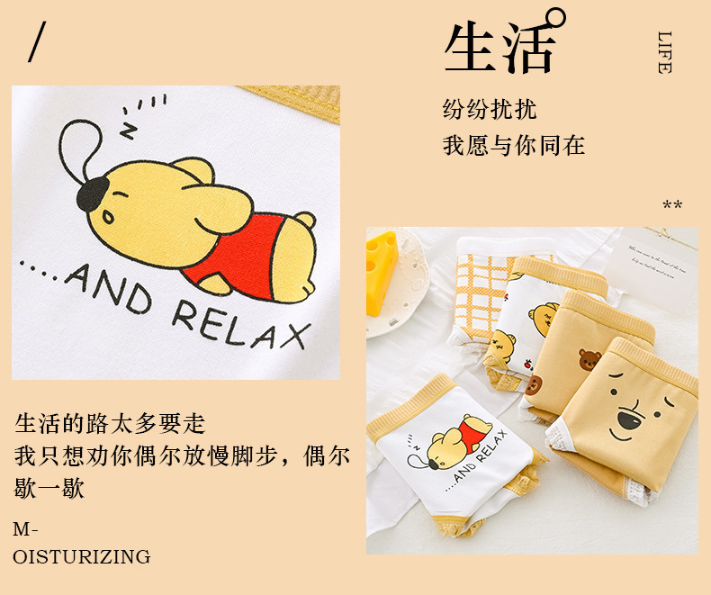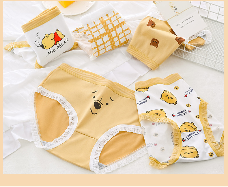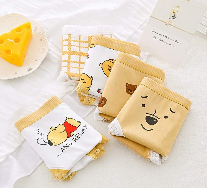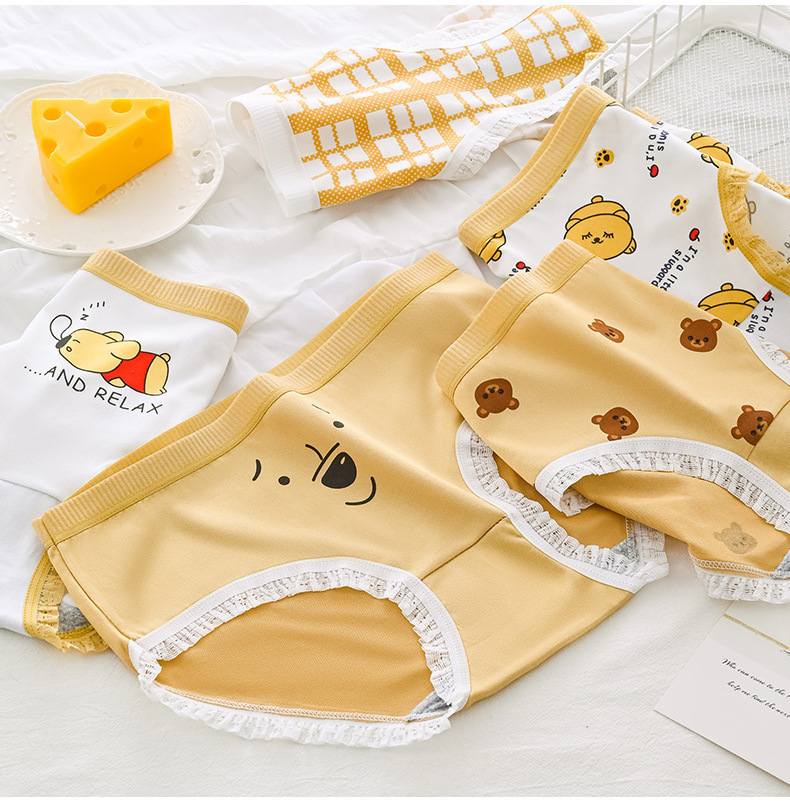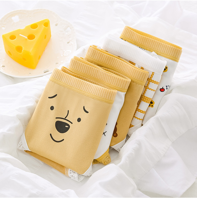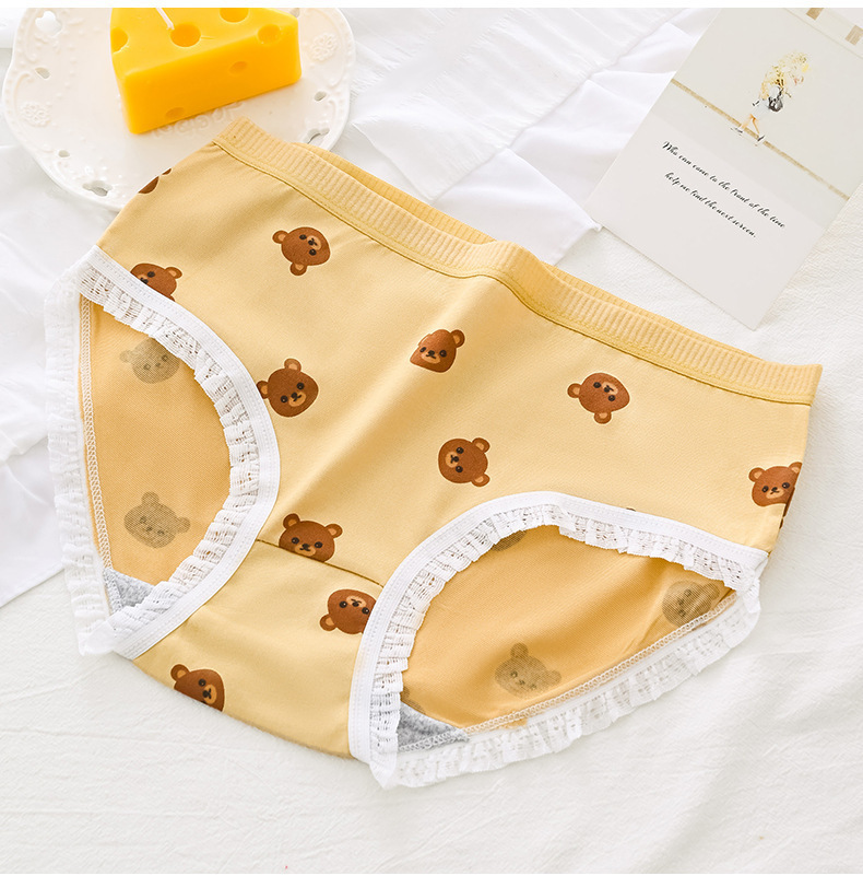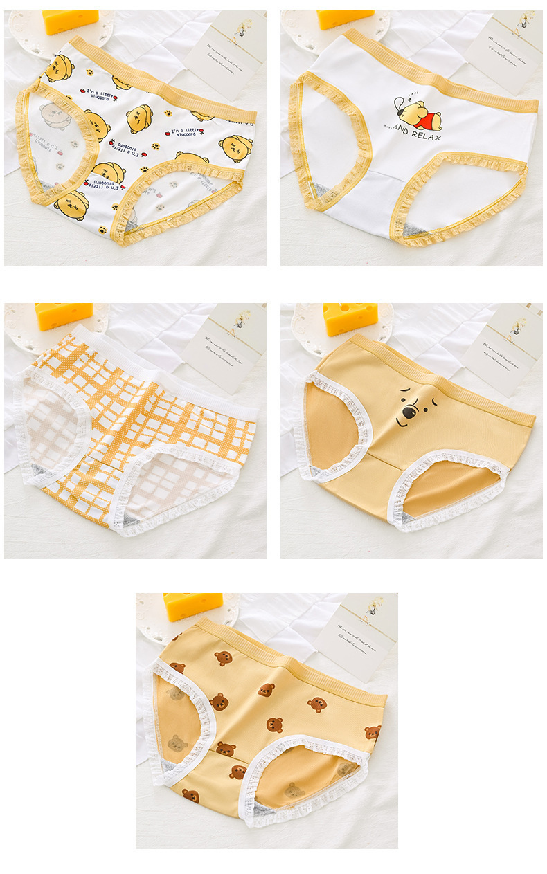 만화 곰 중간 허리 통기성 속옷 여성의 귀여운 달콤한 학생 브리프 얇은 통기성 반바지 섹시한 속옷스토어 가기
