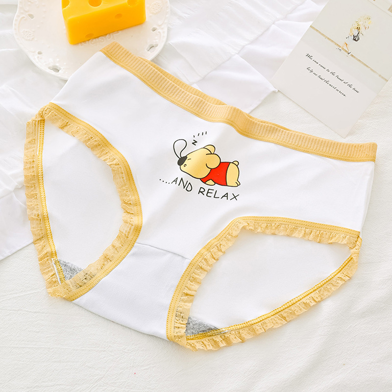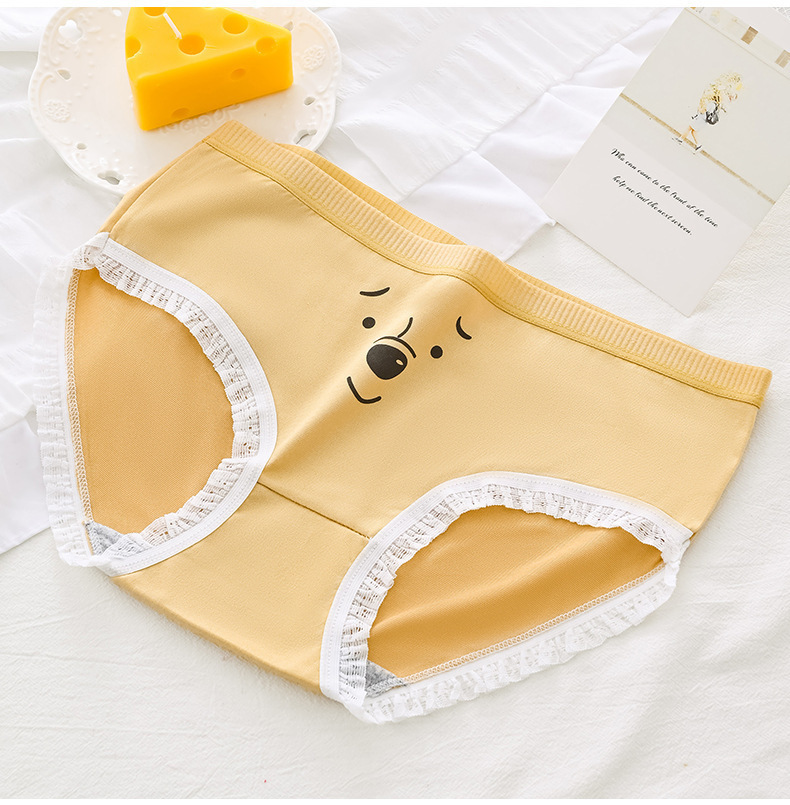 만화 곰 중간 허리 통기성 속옷 여성의 귀여운 달콤한 학생 브리프 얇은 통기성 반바지 섹시한 속옷
