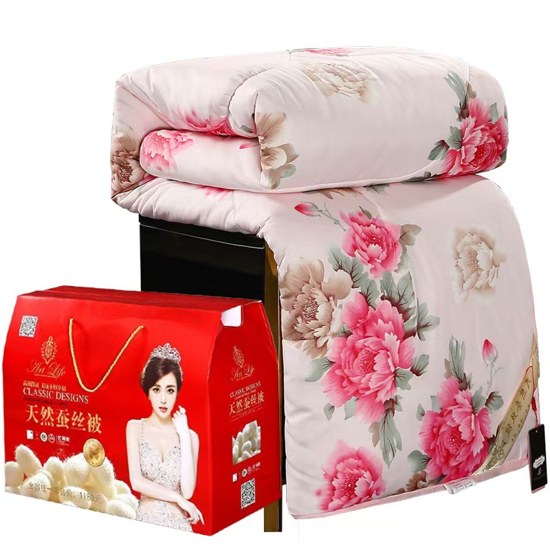 겨울 이불, 실크 면 이불, 기모 처리된 두꺼운 봄 가을 이불, 고급 행사용 고객 선물 이불, 선물 상자 포장