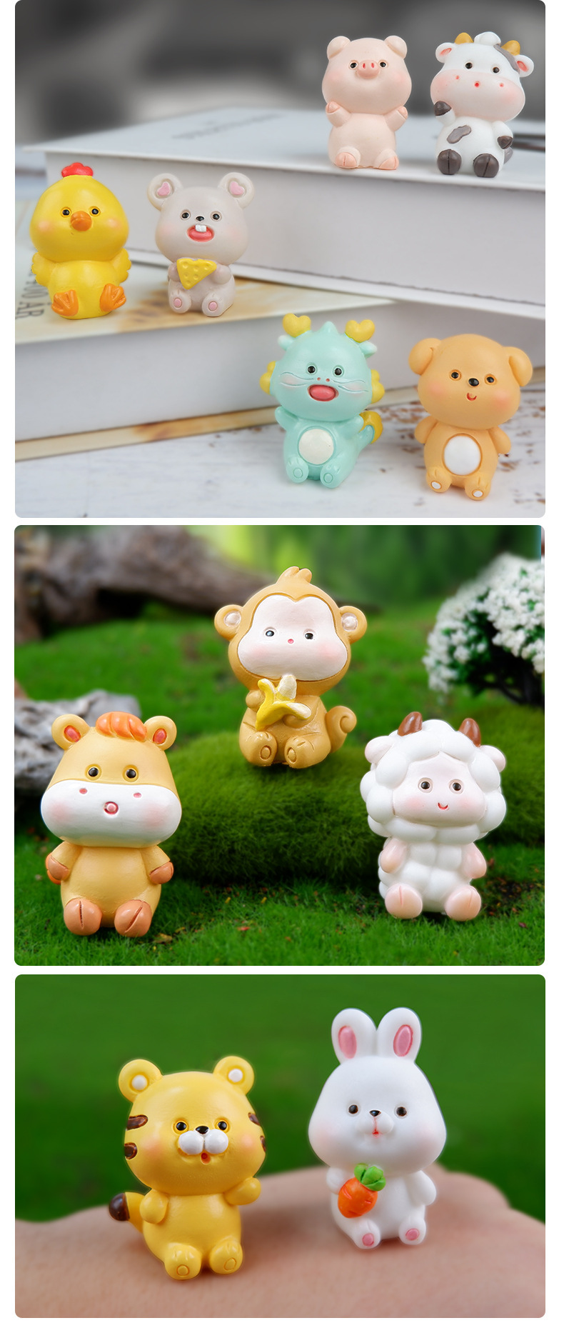 조디악 수지 작은 장식품 마이크로 풍경 창조적 인 데스크탑 장식품 동물 중국 공예 자동차 펜던트 색상