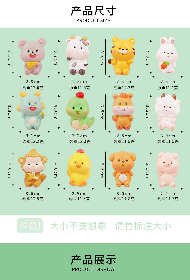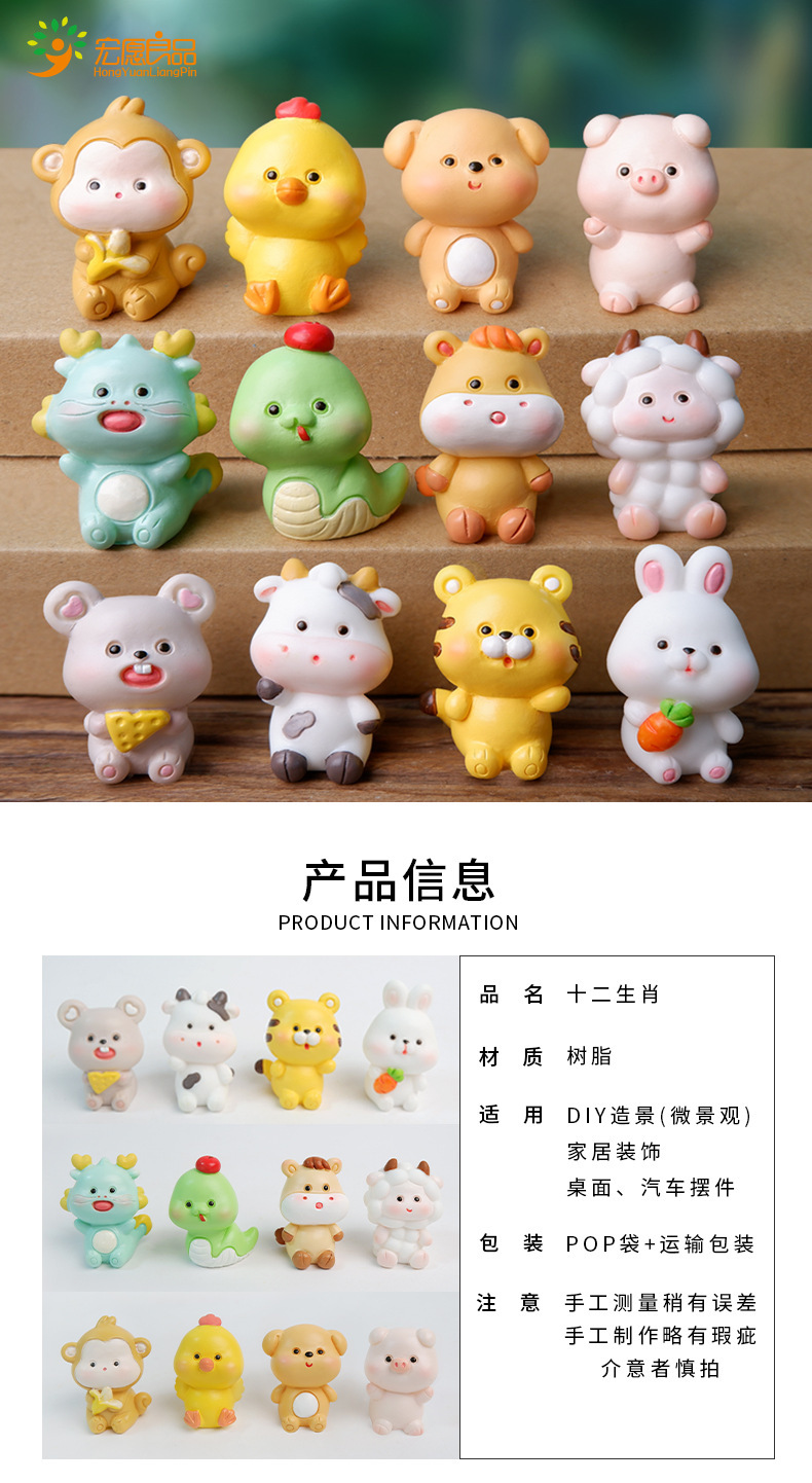 조디악 수지 작은 장식품 마이크로 풍경 창조적 인 데스크탑 장식품 동물 중국 공예 자동차 펜던트 색상스토어 가기