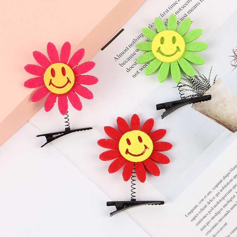 한국식 해바라기 봄 헤어핀 창조적 인 해바라기 스마일리 얼굴 헤드웨어 경치 스윕 코드 선물 어린이 헤어 액세서리