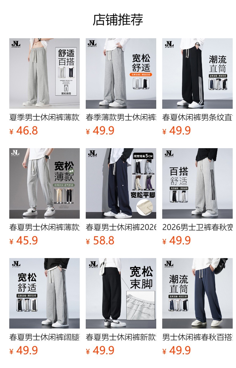 여름 남성 캐주얼 바지, 와이드 스트레이트 팬츠, 루즈핏 캐주얼 스웨트팬츠, 청소년 통기성 트렌디 학생 스포츠 바지스토어 가기