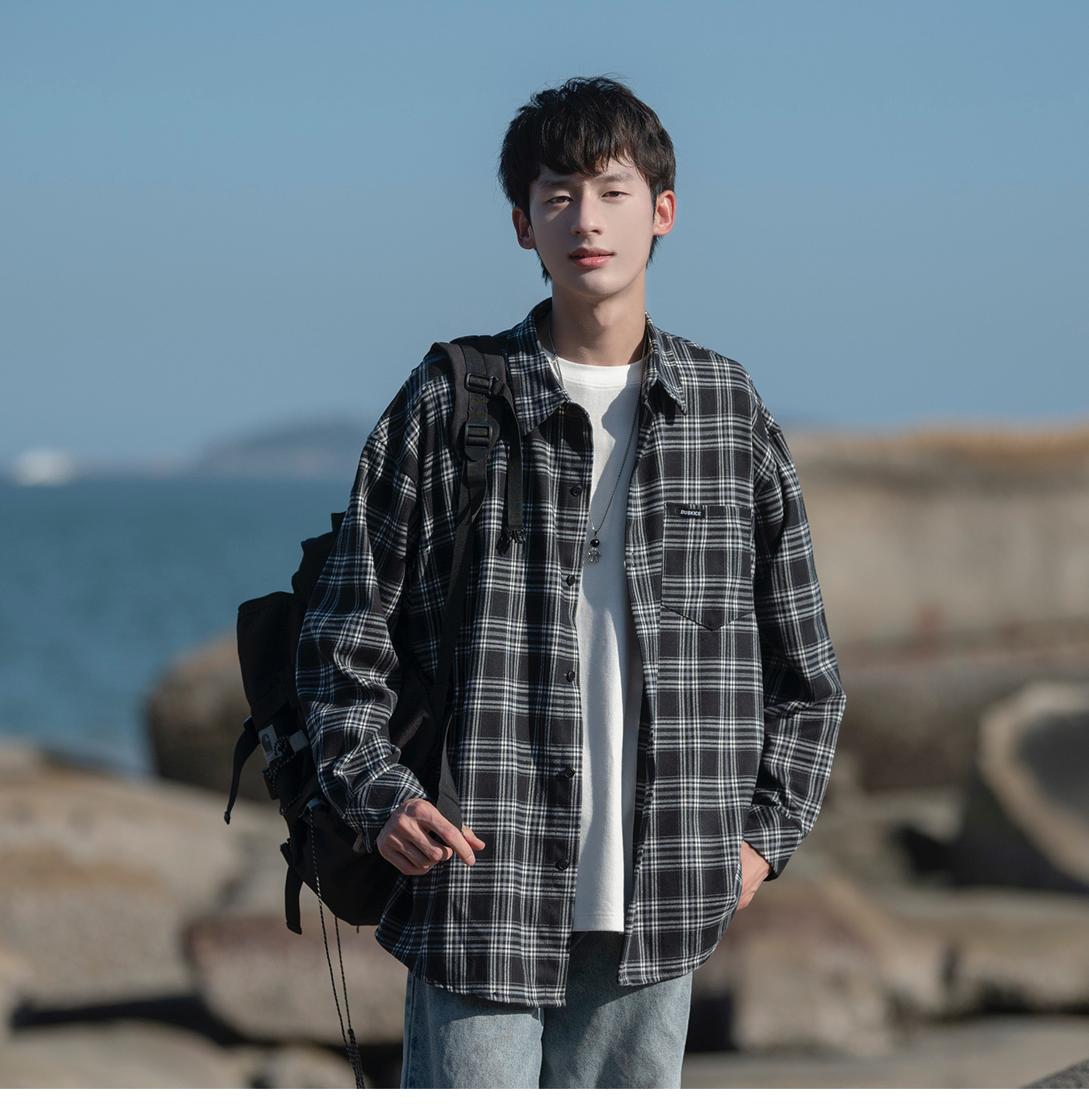 격자 무늬 셔츠 남자의 긴 소매 봄과 가을 소년 2024 새로운 남자의 가을 착용 가을 얇은 남자의 셔츠 재킷 남성 스타일스토어 가기