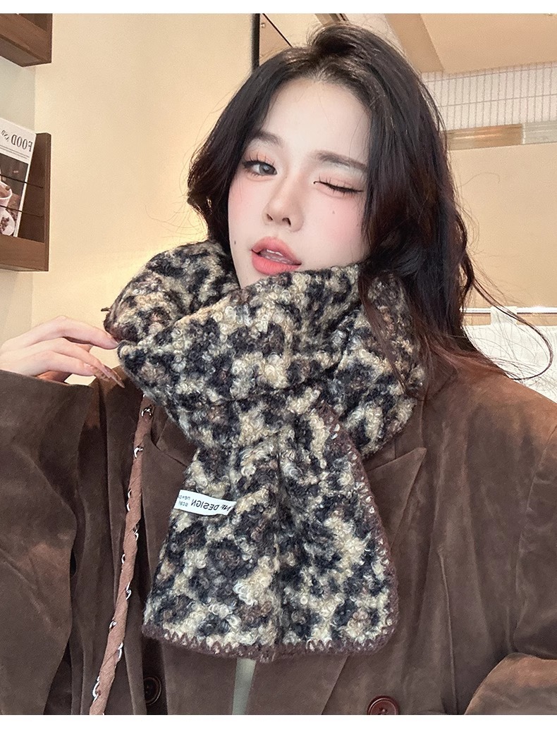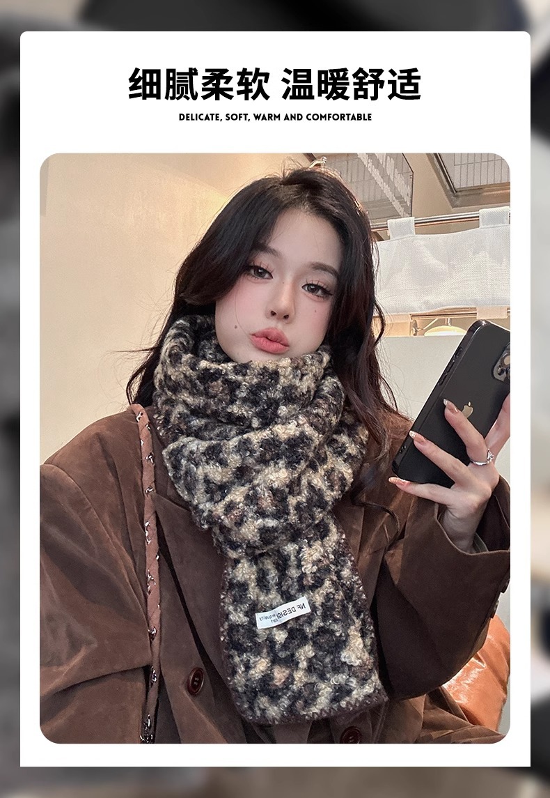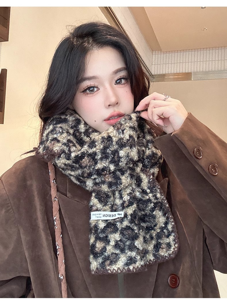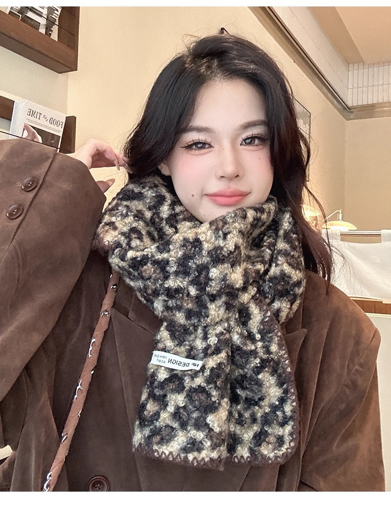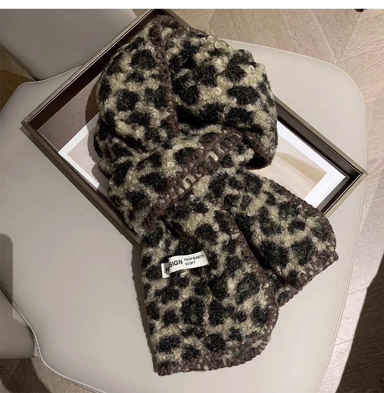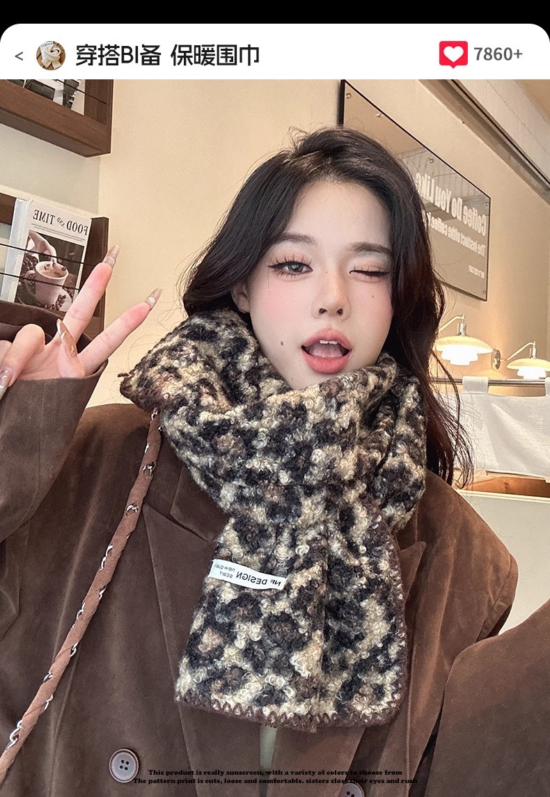 2024 새 스타일 스카프 여자 겨울 한국 스타일 올매치 레오파드 무늬 스카프 고급 모방 캐시미어 두꺼운 따뜻한 큰 목도리스토어 가기