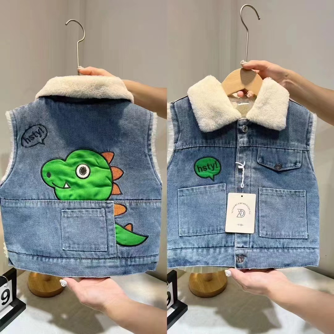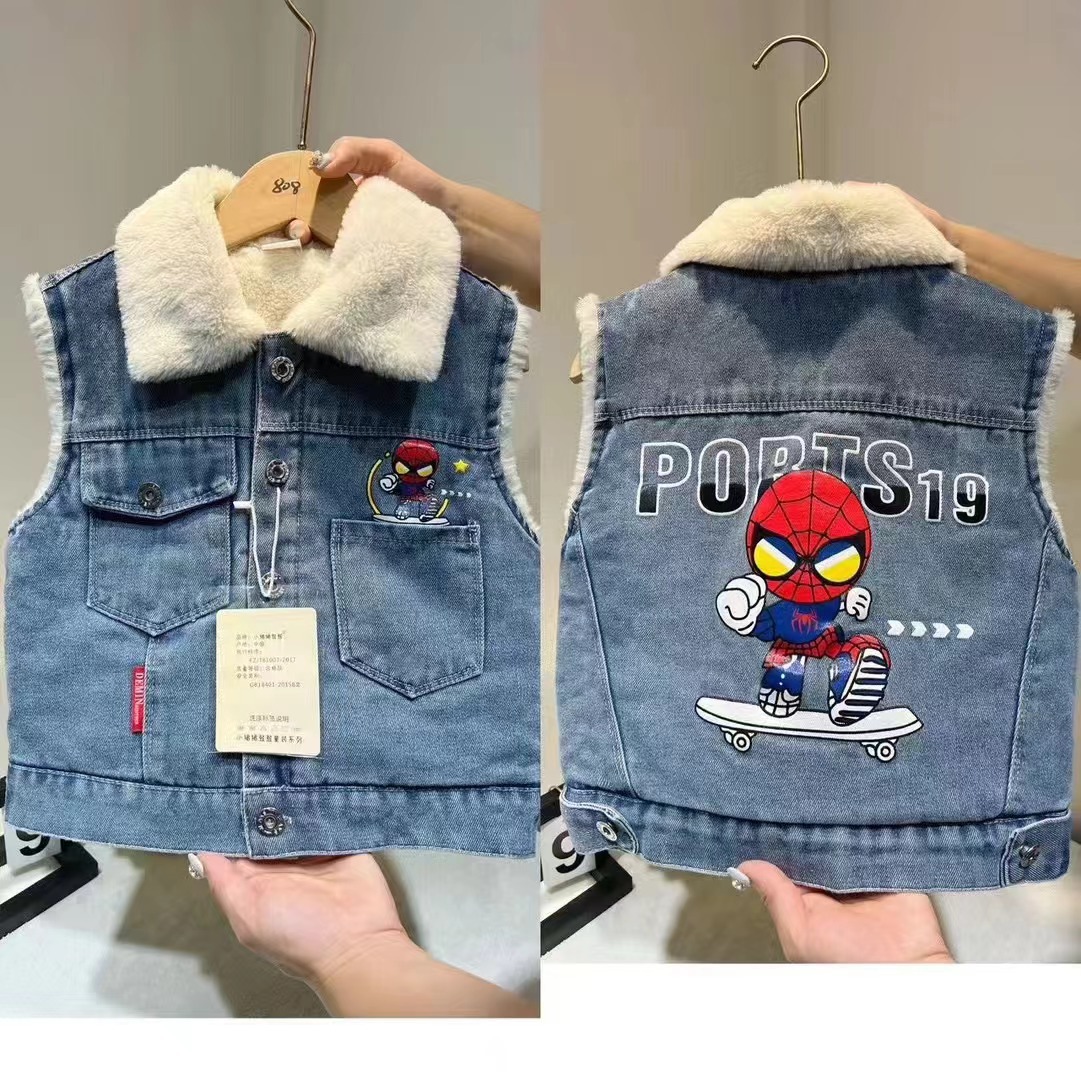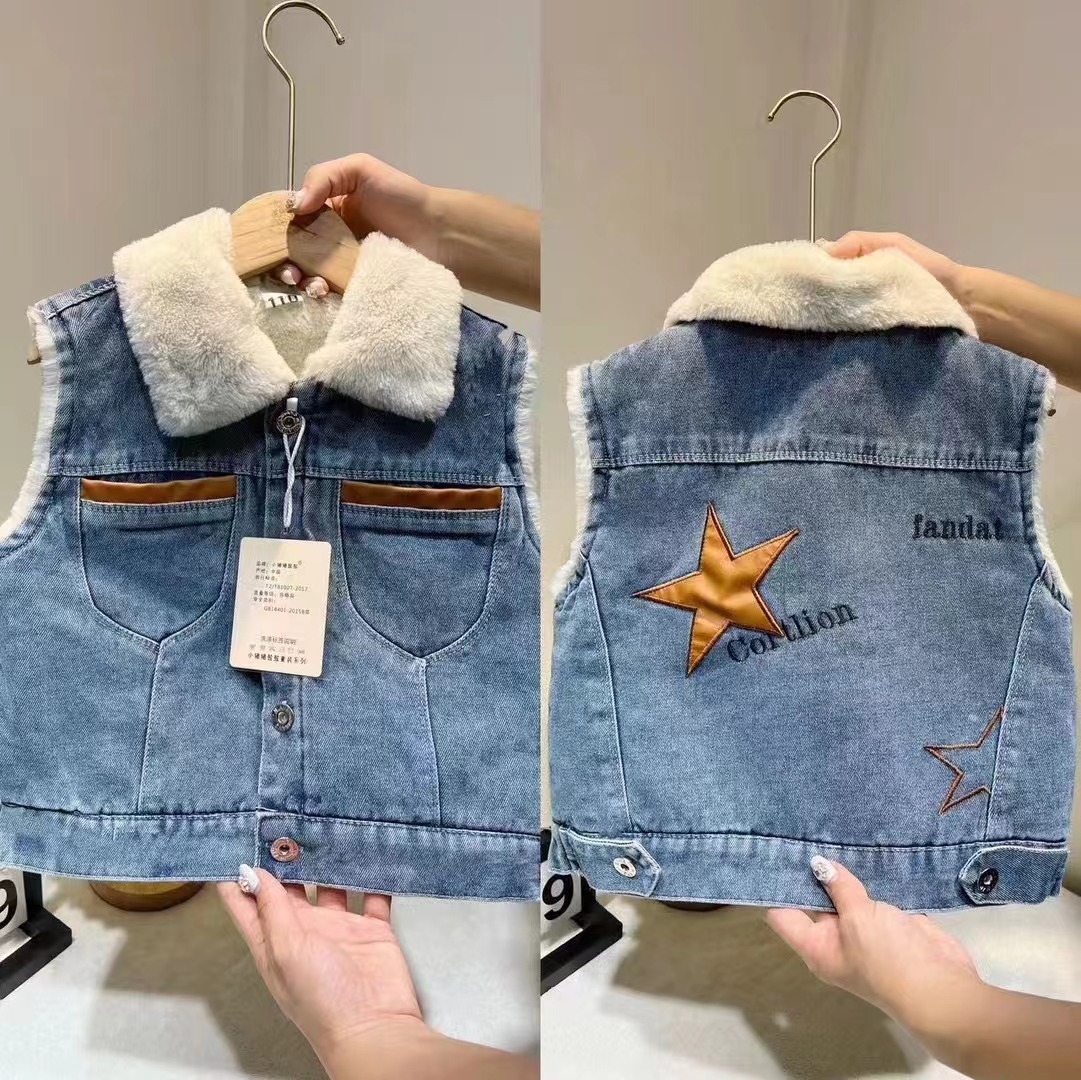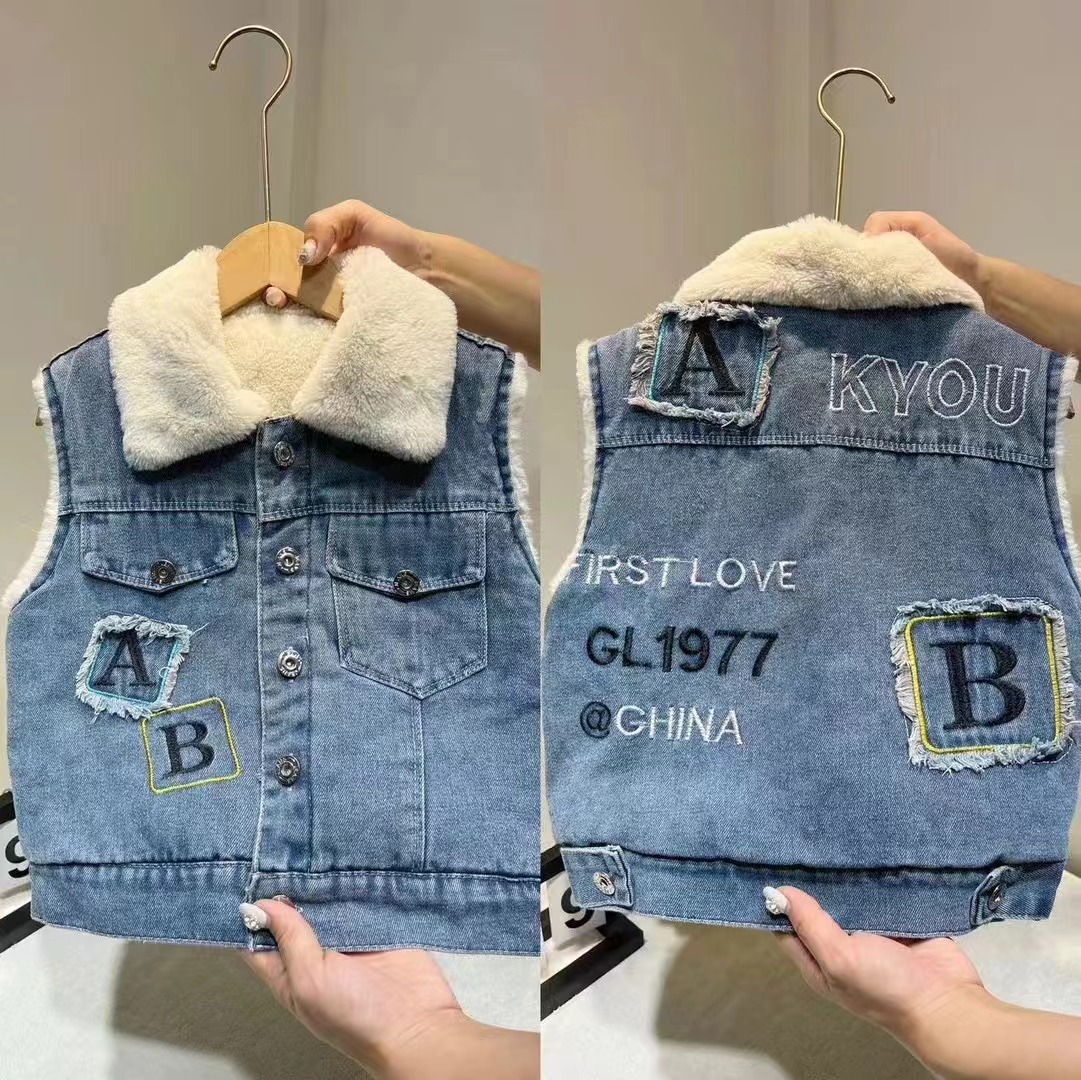 어린이 조끼 가을 겨울 따뜻한 조끼 소년 기모 데님 조끼 외부 양고기 벨벳 한국 유행 아기 조끼